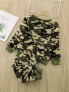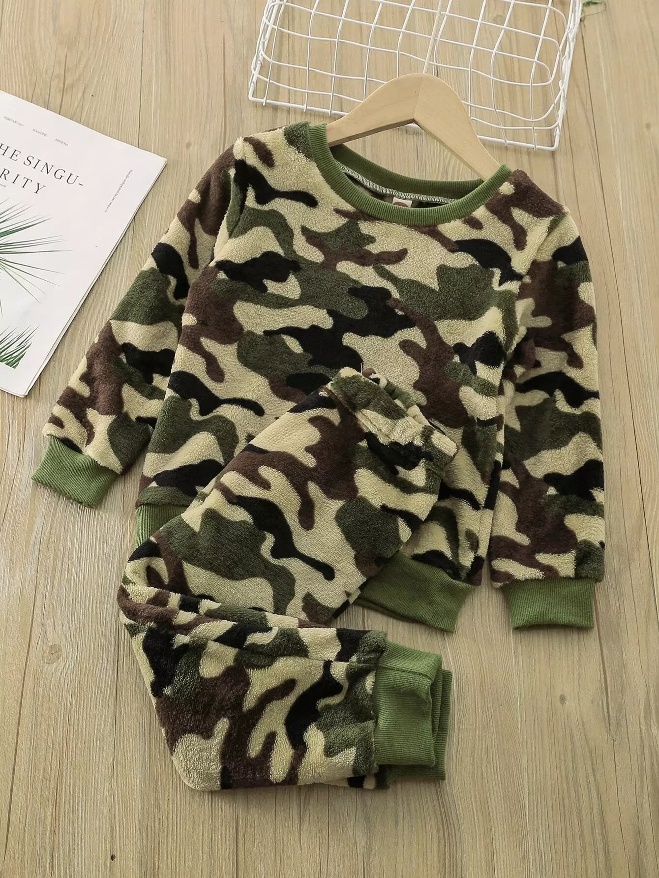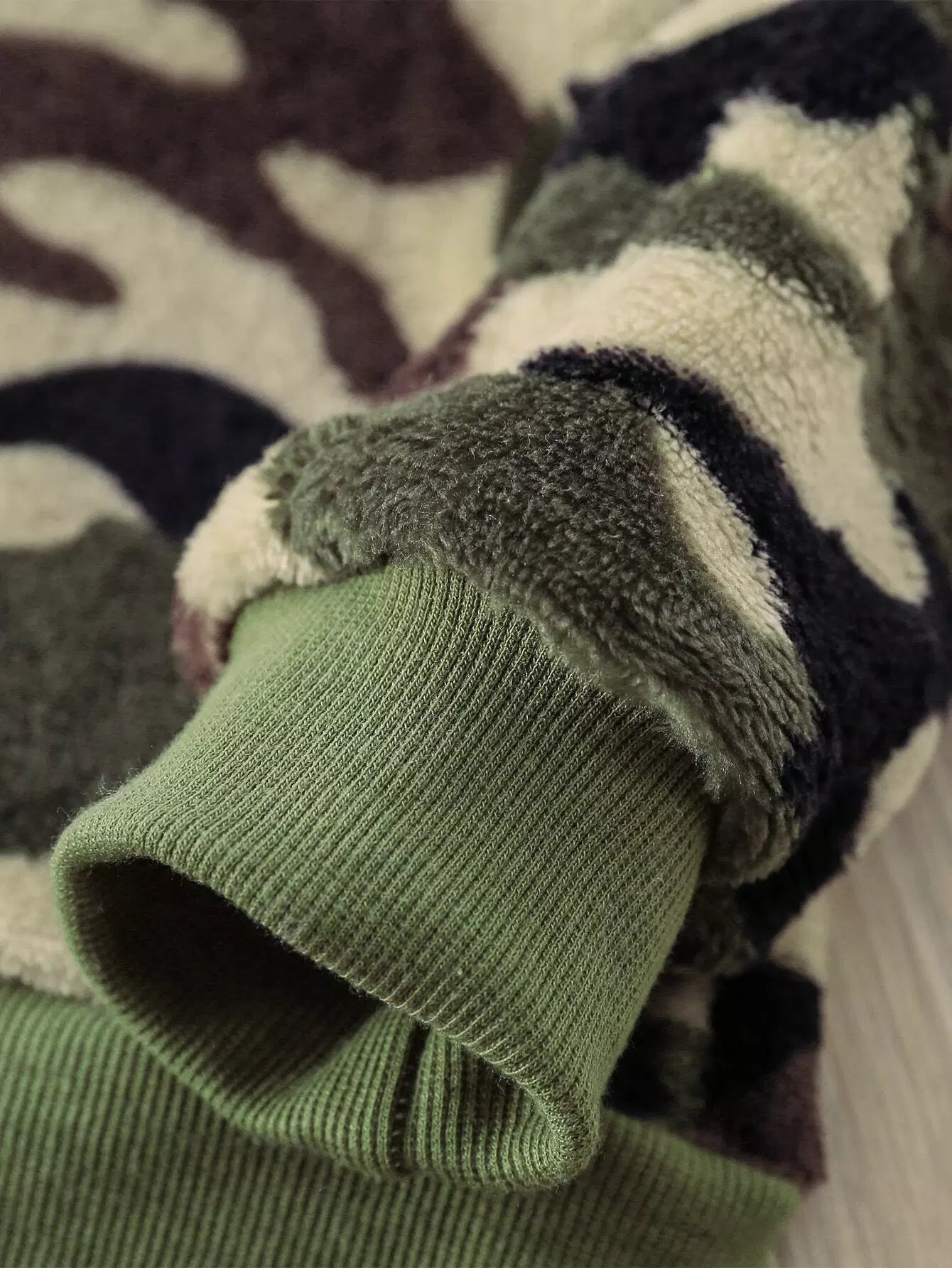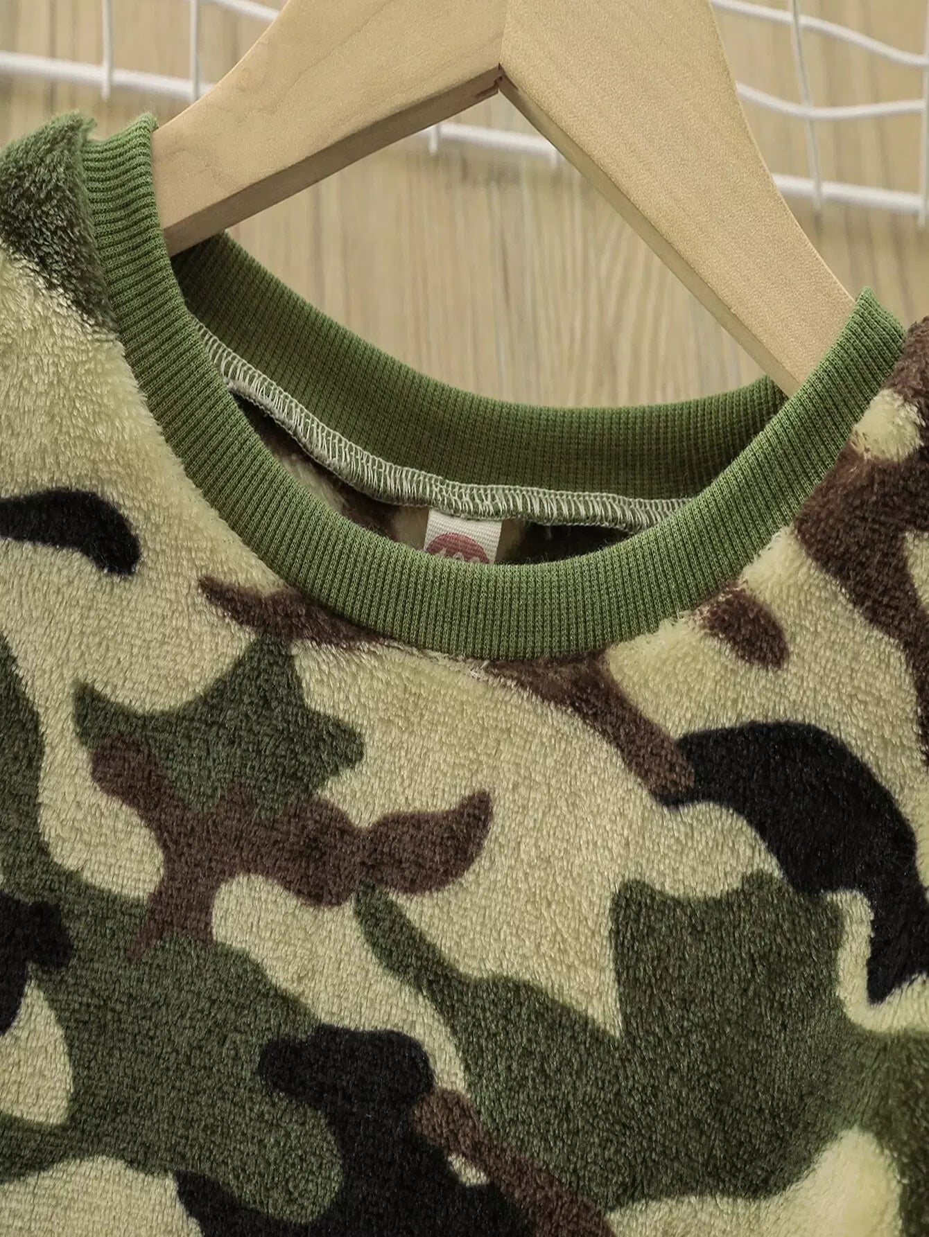 Toddler Boys Camo Pattern Flannel Pullover & Sweatpants