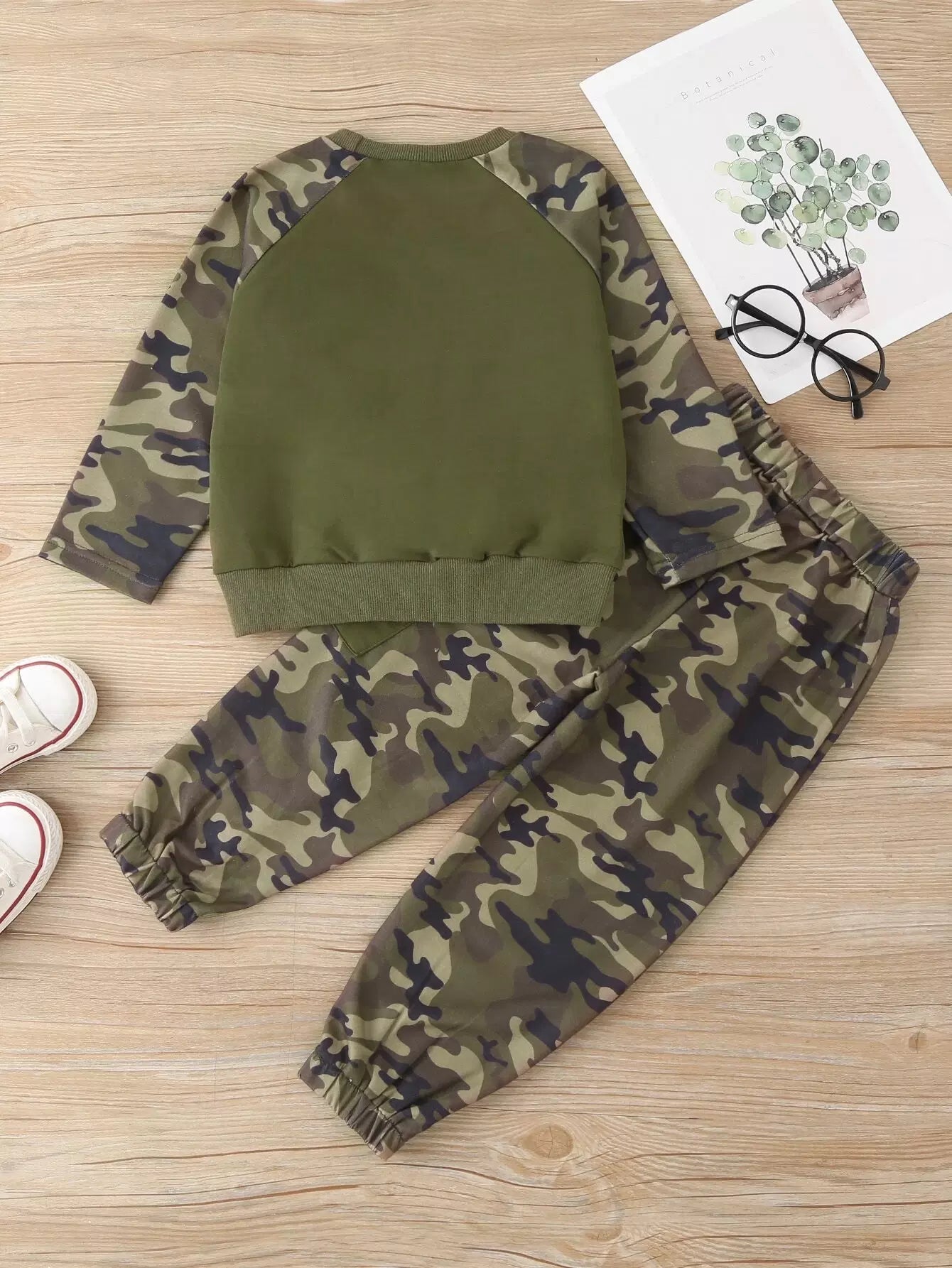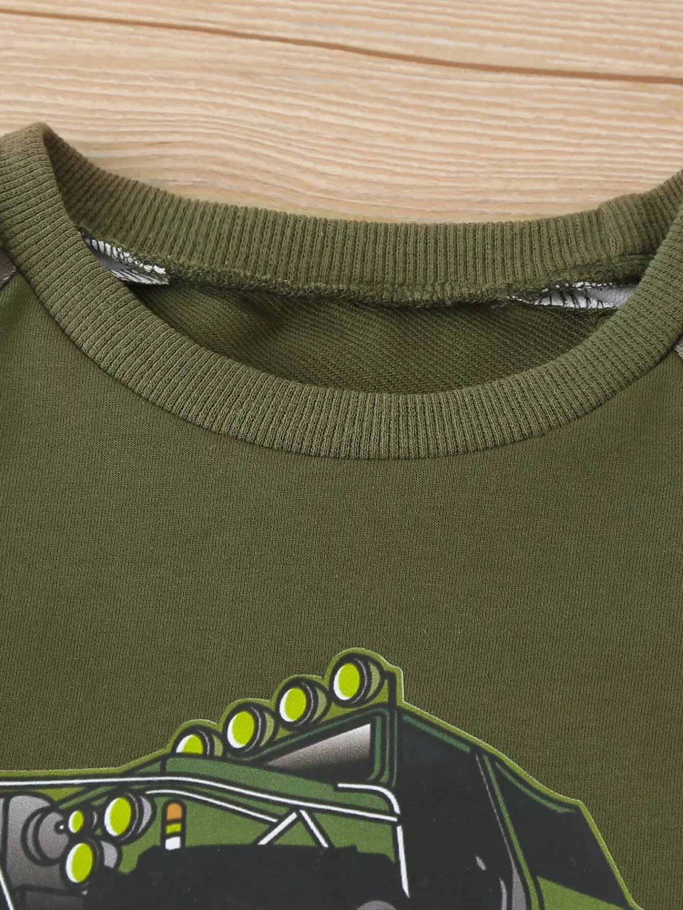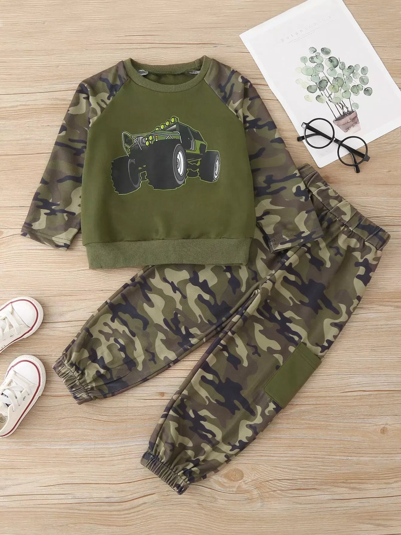 Toddler Boys Car And Camo Print Raglan Sleeve Sweatshirt & Sweatpants