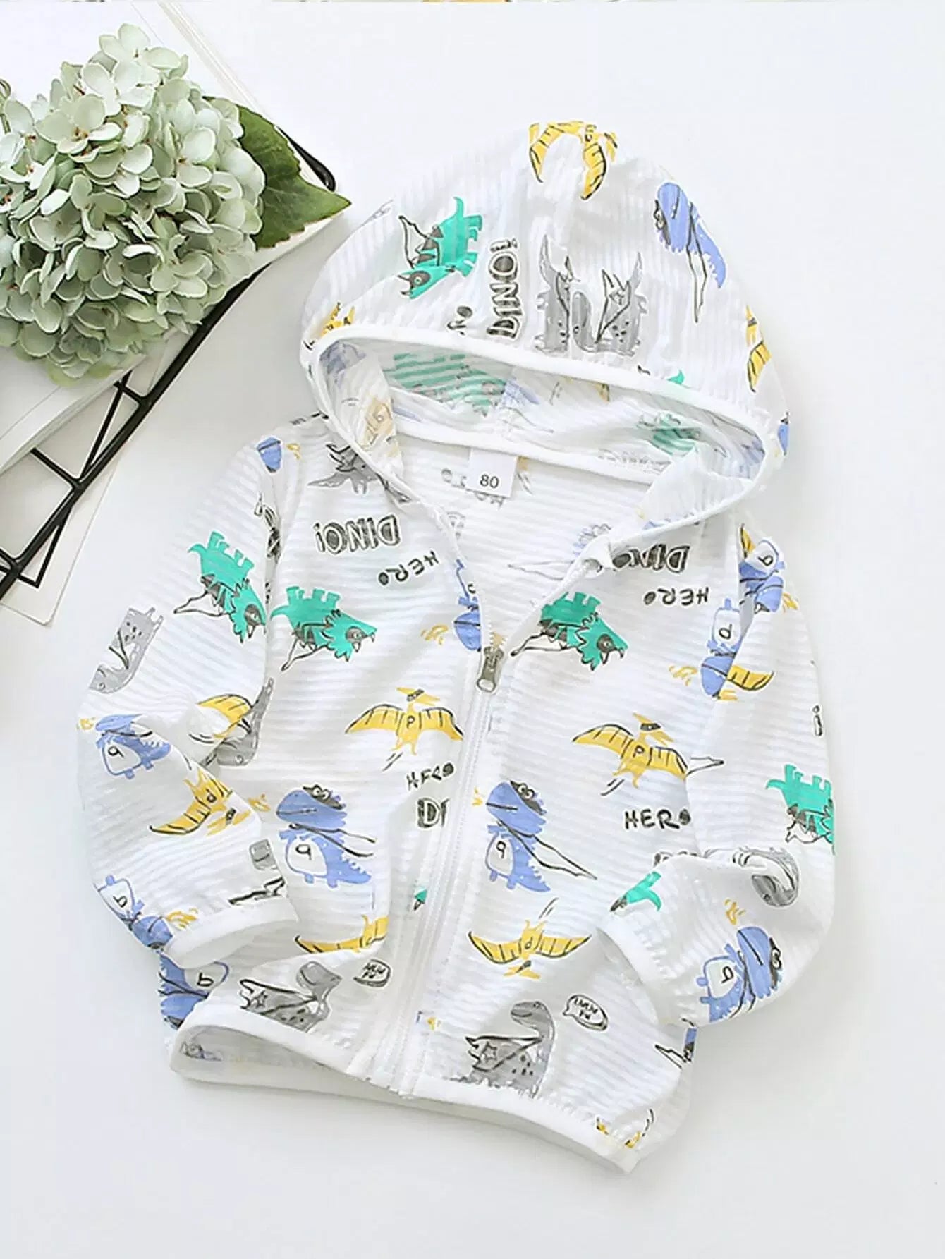 Toddler Boys Cartoon Dinosaur And Letter Graphic Hooded Jacket