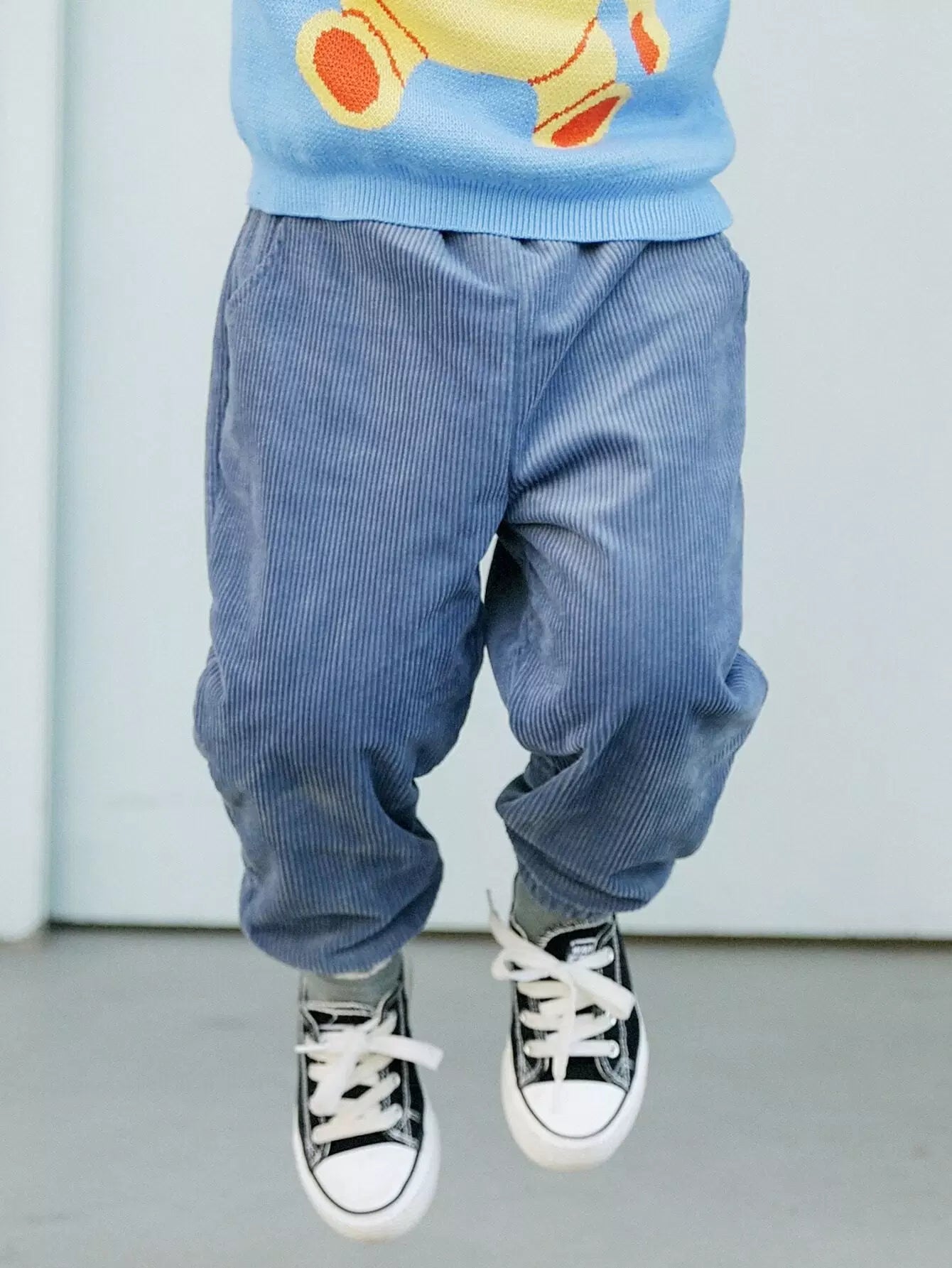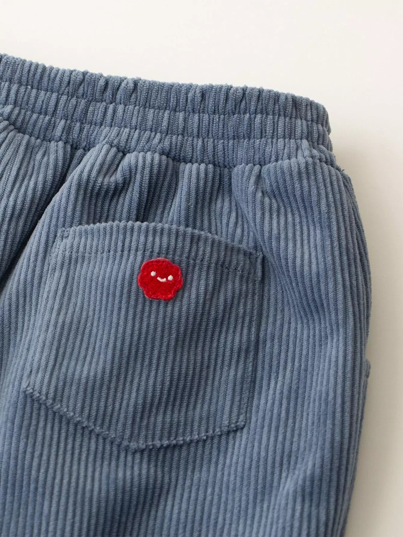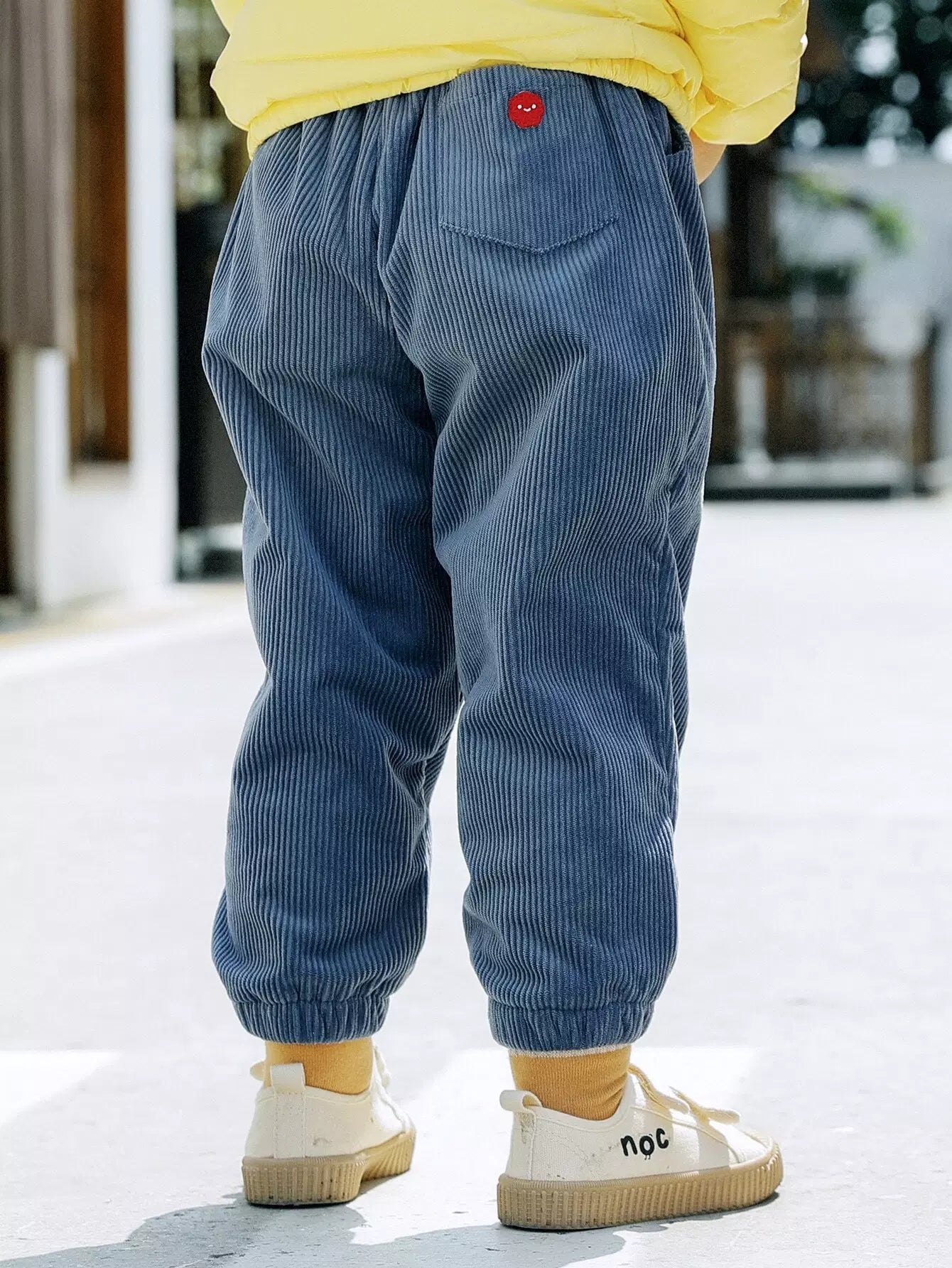 Toddler Boys Cartoon Embroidery Patched Thermal Corduroy Pants