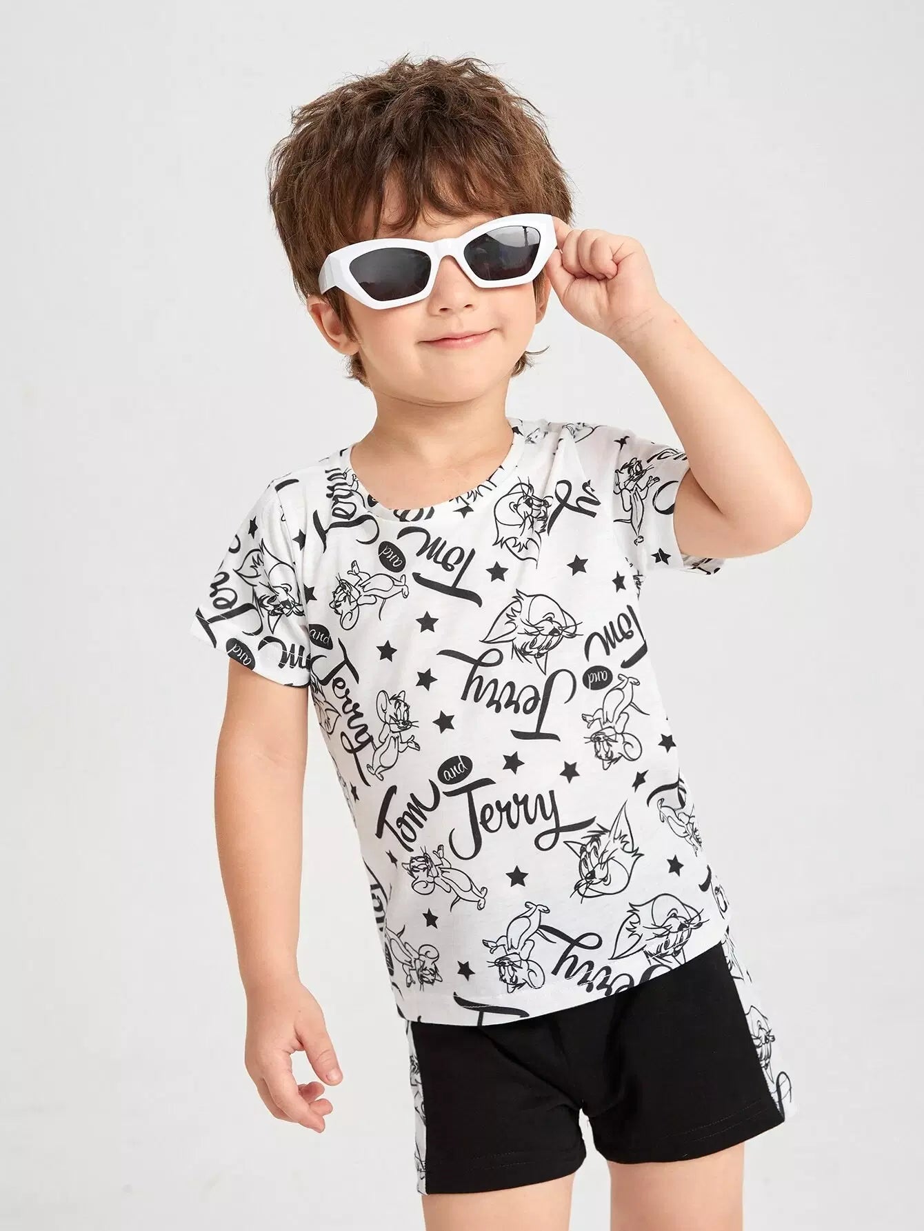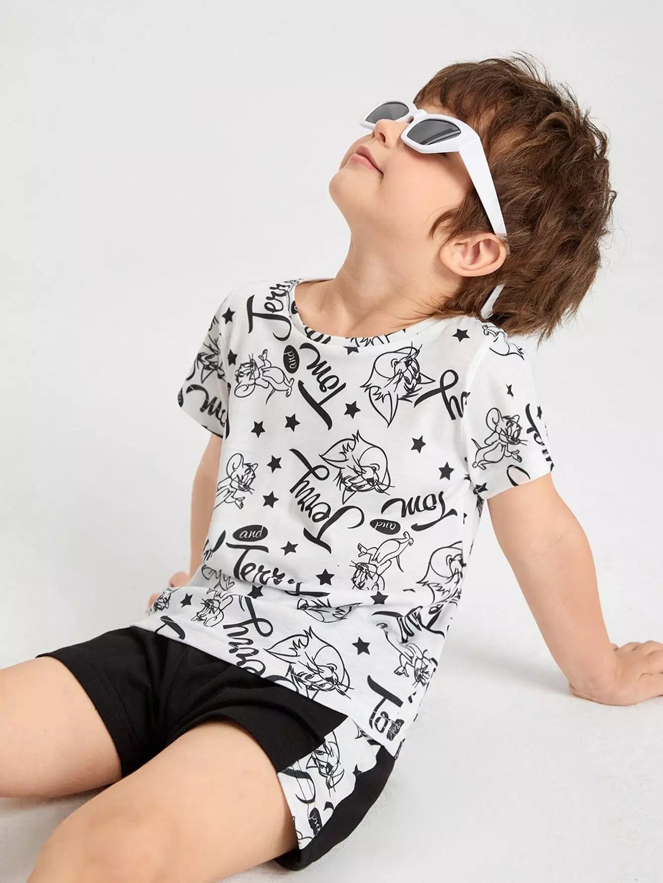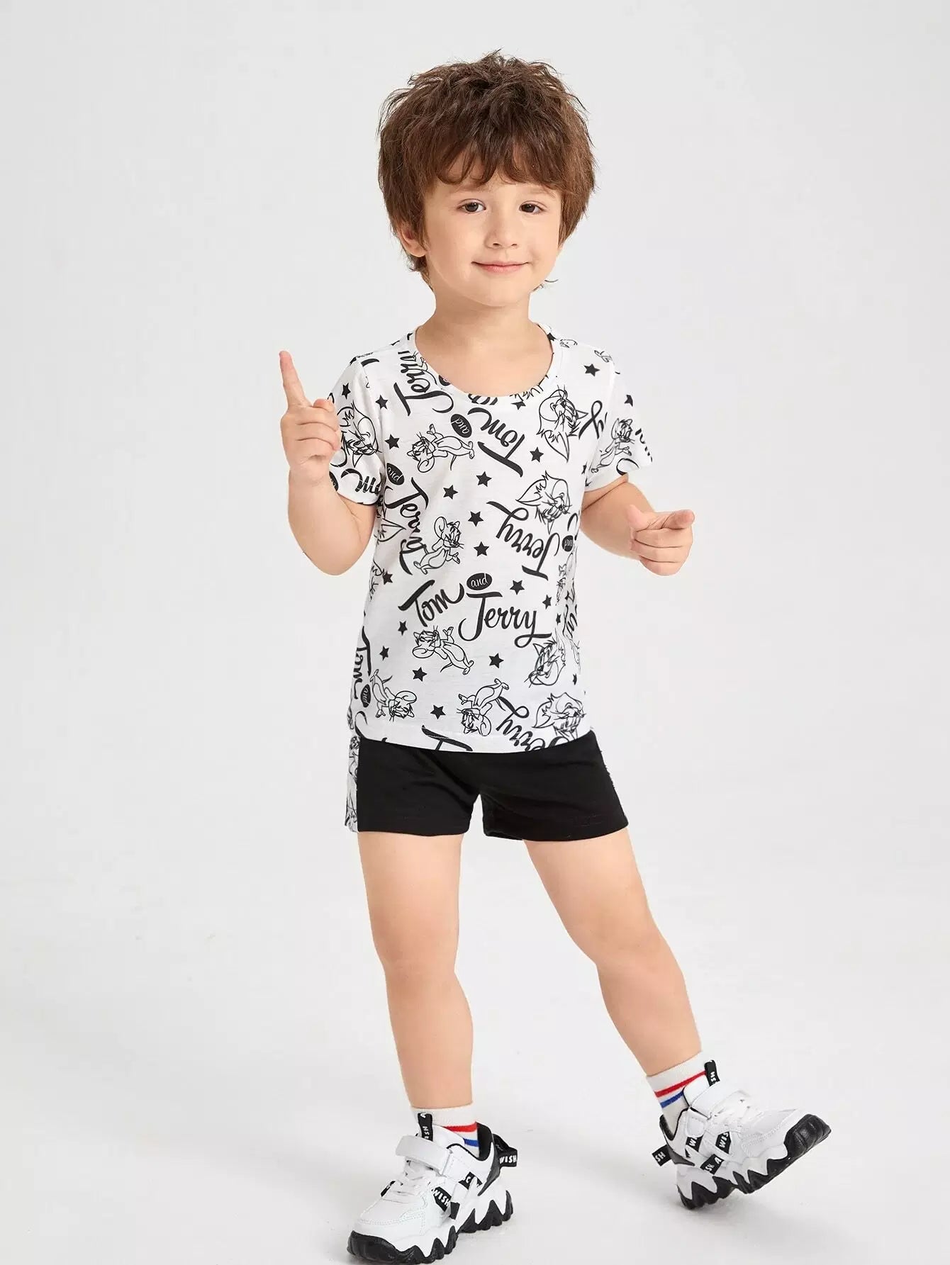 Toddler Boys Cartoon Graphic Tee With Track Shorts