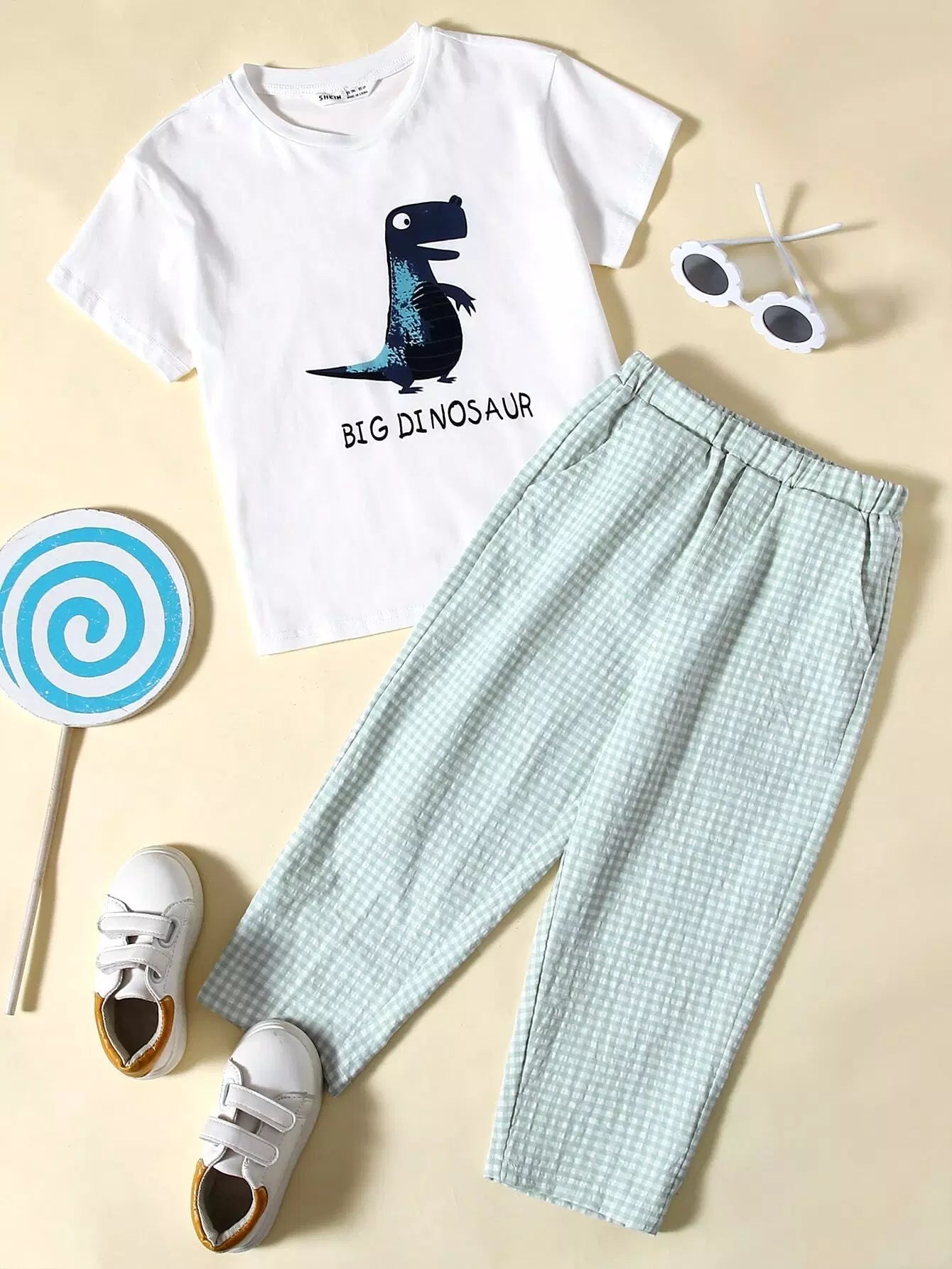 Kids - Toddler Boys Cartoon Graphic Top & Gingham Pants Set