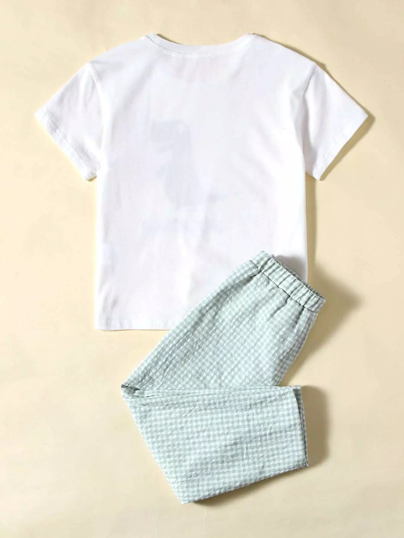 Toddler Boys Cartoon Graphic Top & Gingham Pants Set