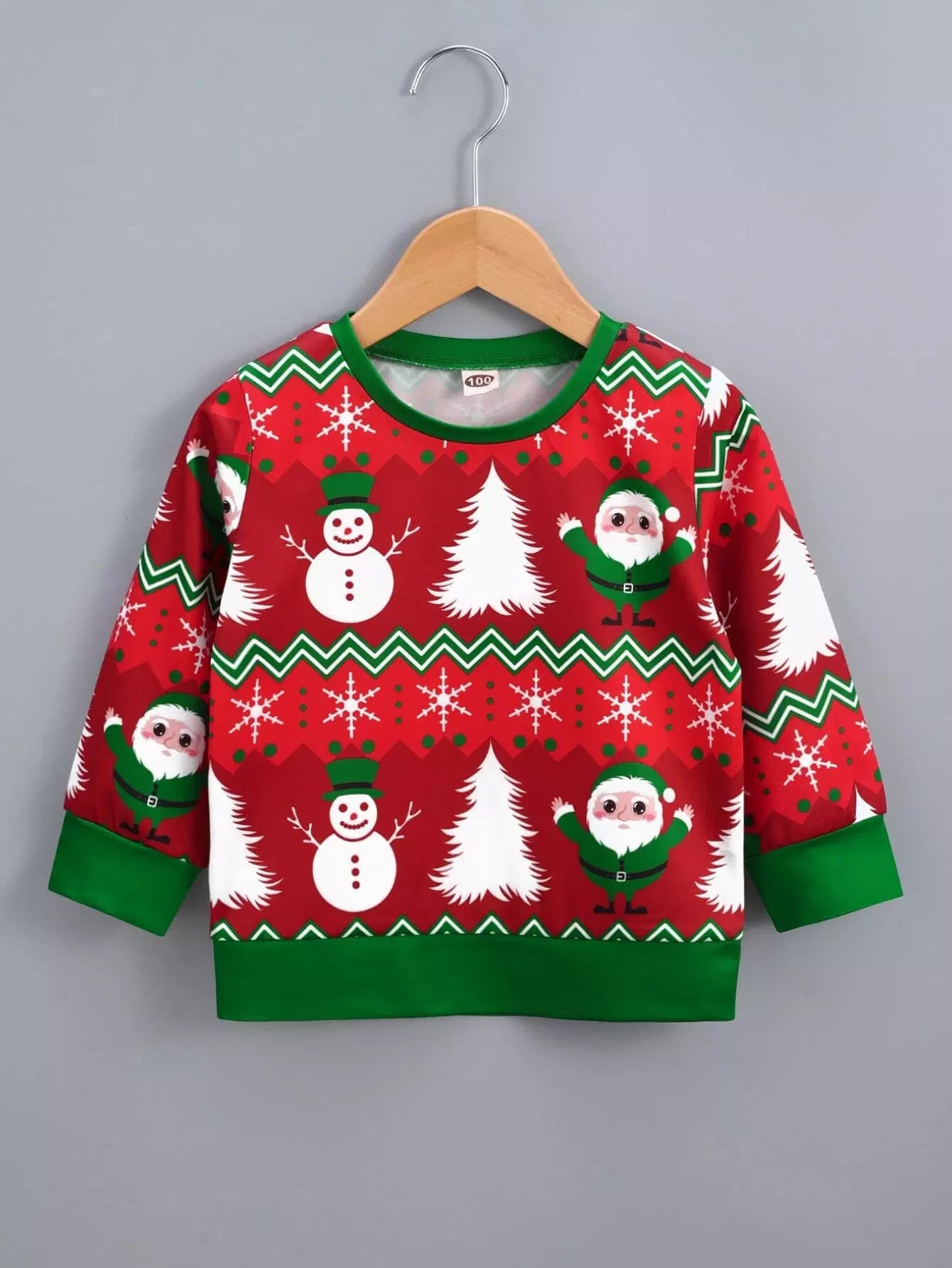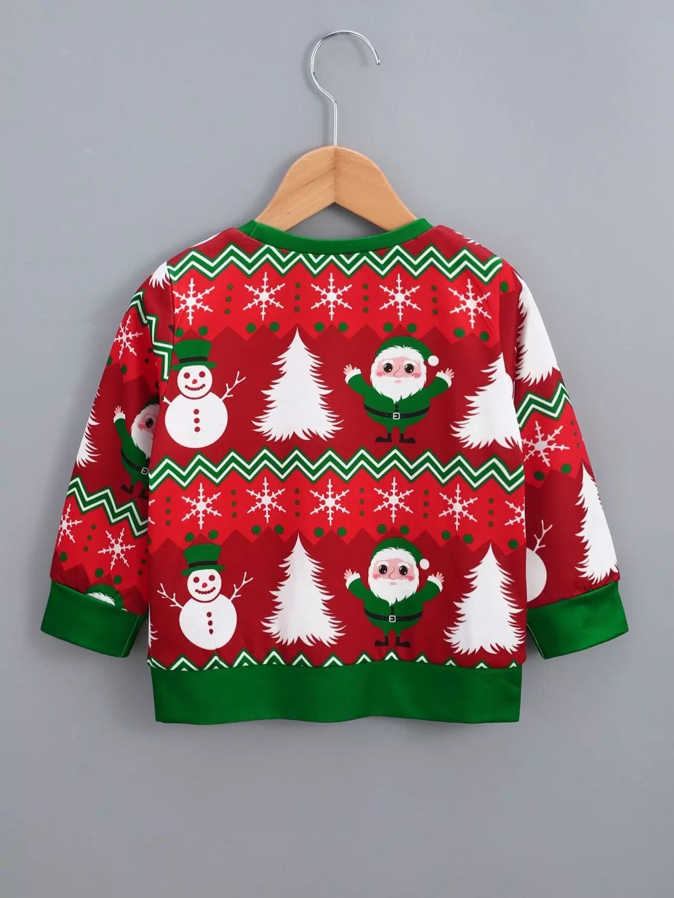 Toddler Boys Christmas Print Contrast Trim Sweatshirt