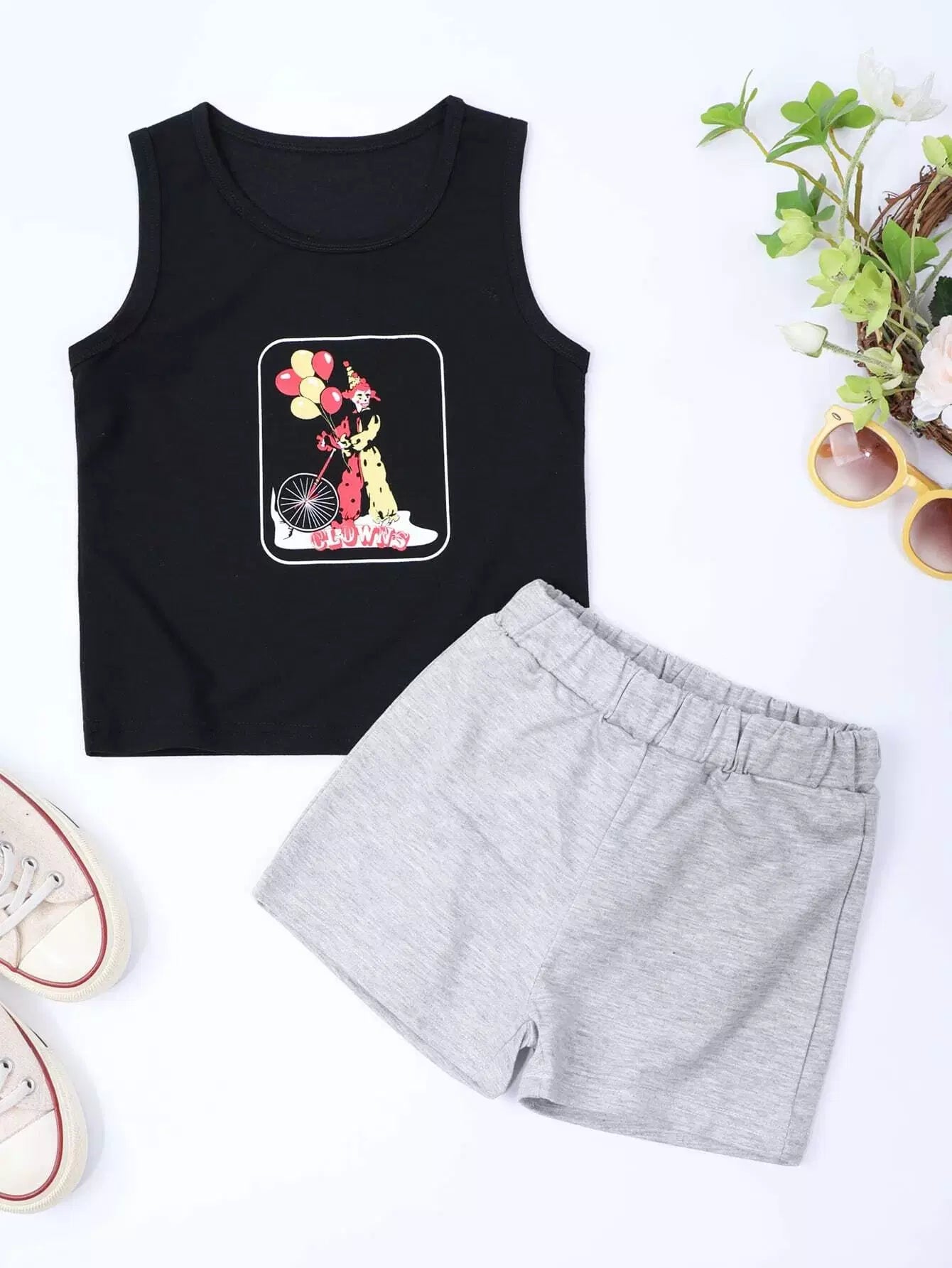 Toddler Boys Clown & Letter Graphic Tank Top & Track Shorts