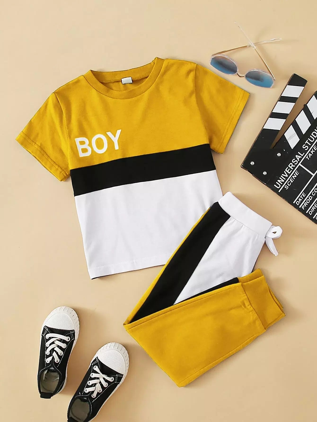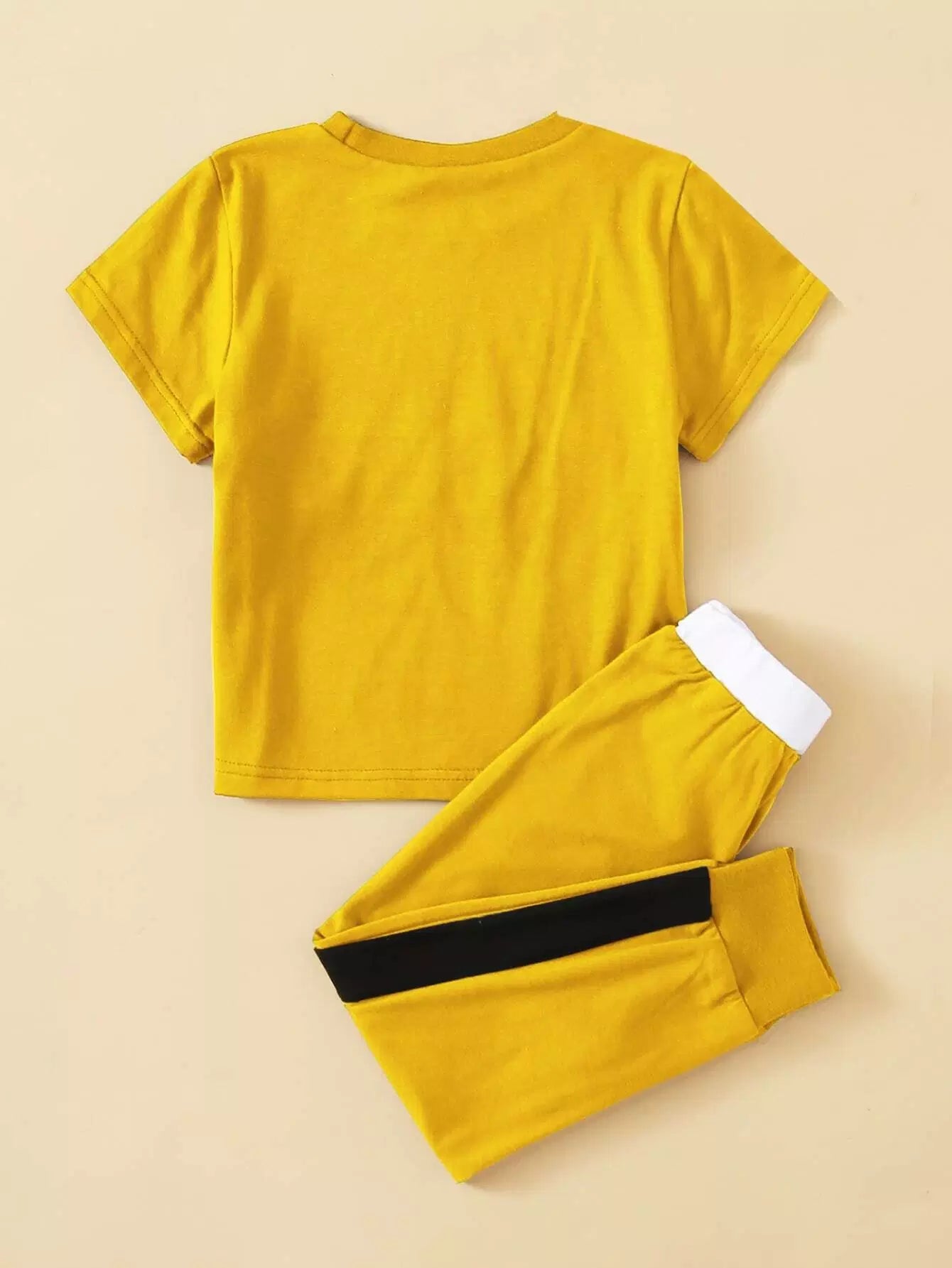 Toddler Boys Cut And Sew Letter Graphic Tee With Sweatpants