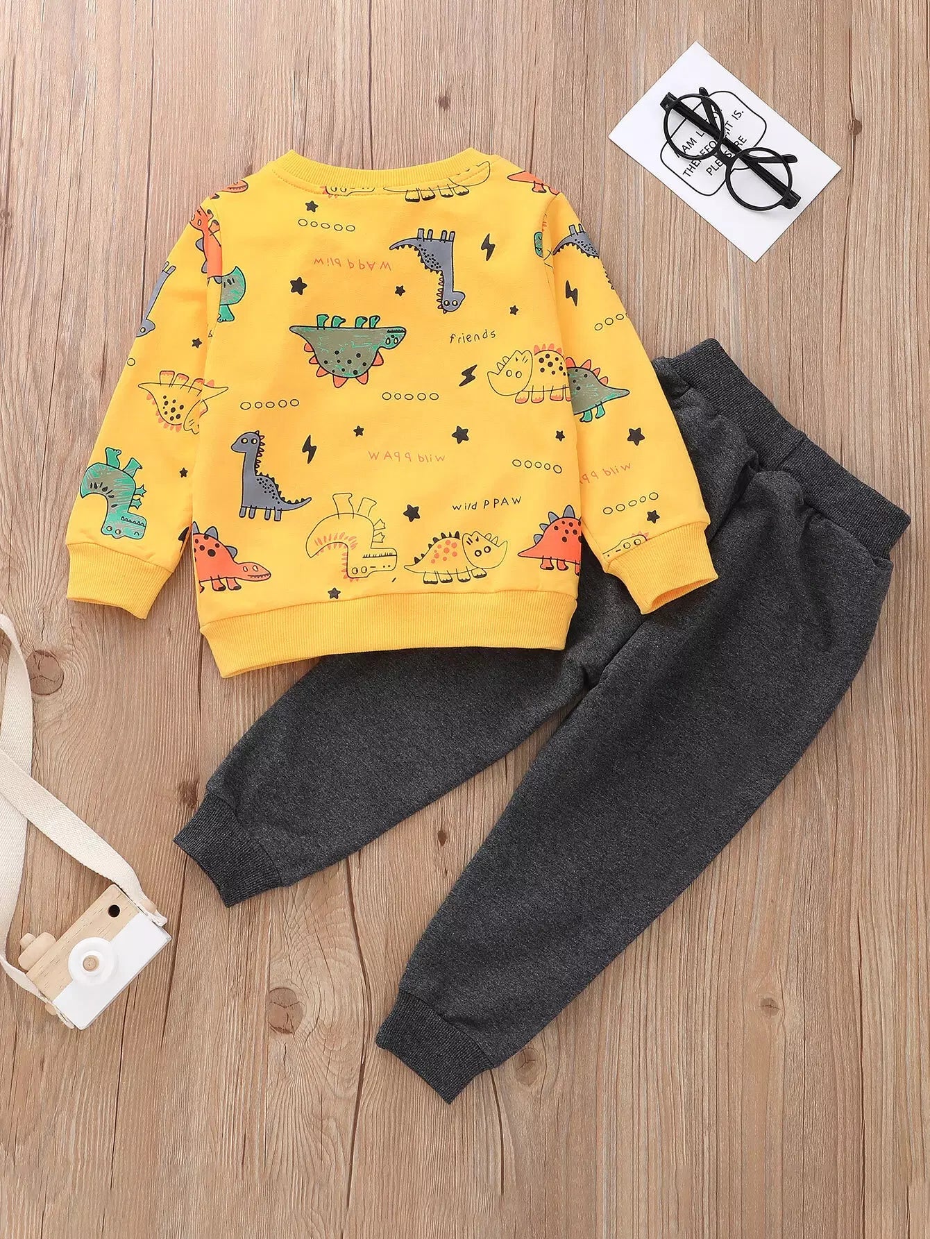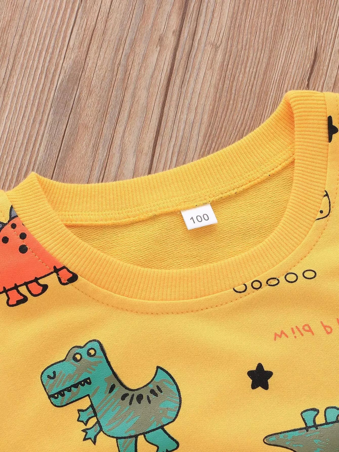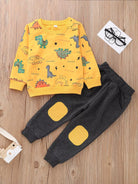 Toddler Boys Dinosaur Print Sweatshirt With Knee Patched Sweatpants