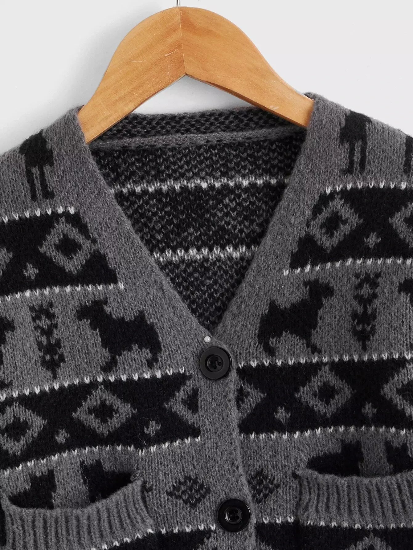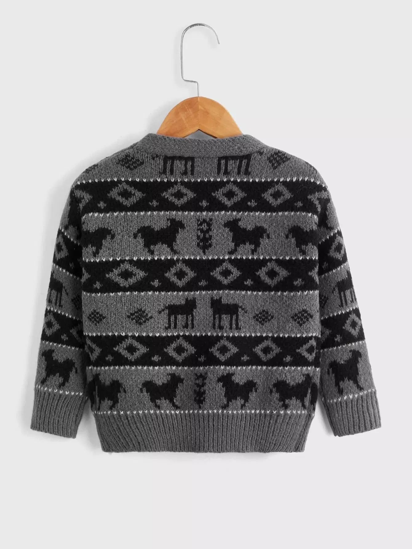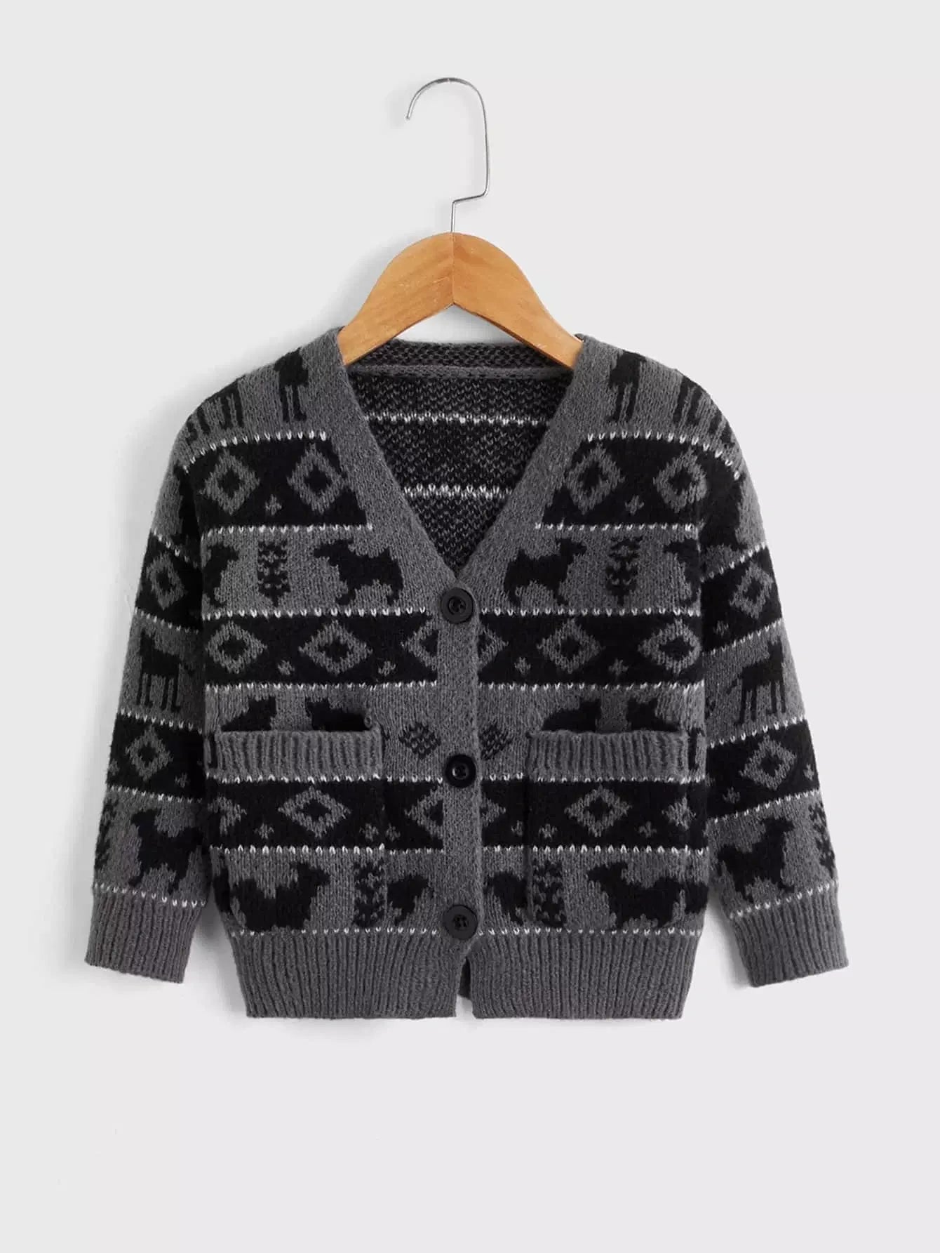Toddler Boys Geo & Animal Pattern Button Front Cardigan