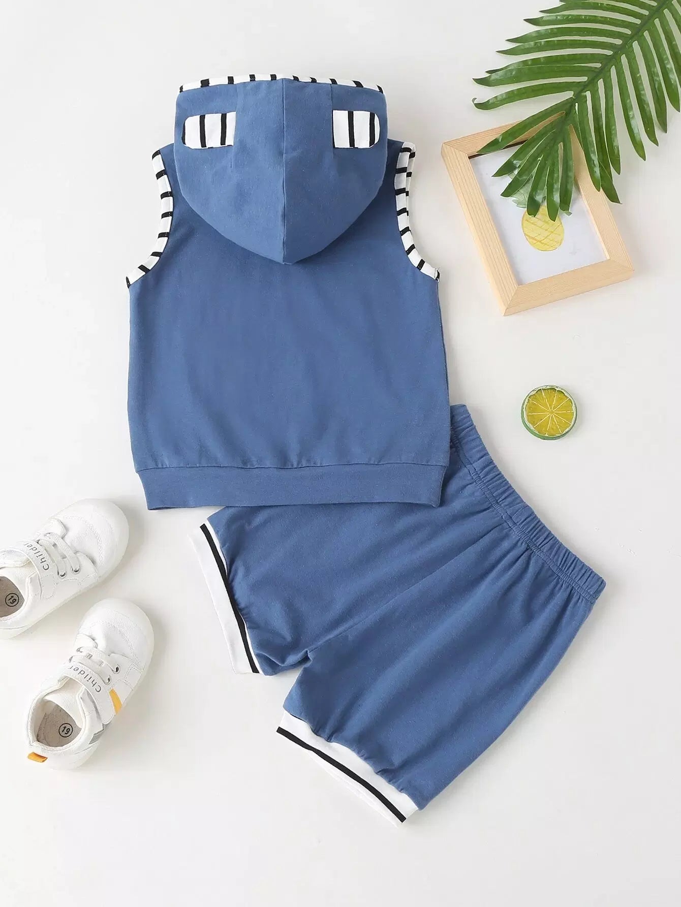 Toddler Boys Kangaroo Pocket Stripe Hoodie & Shorts