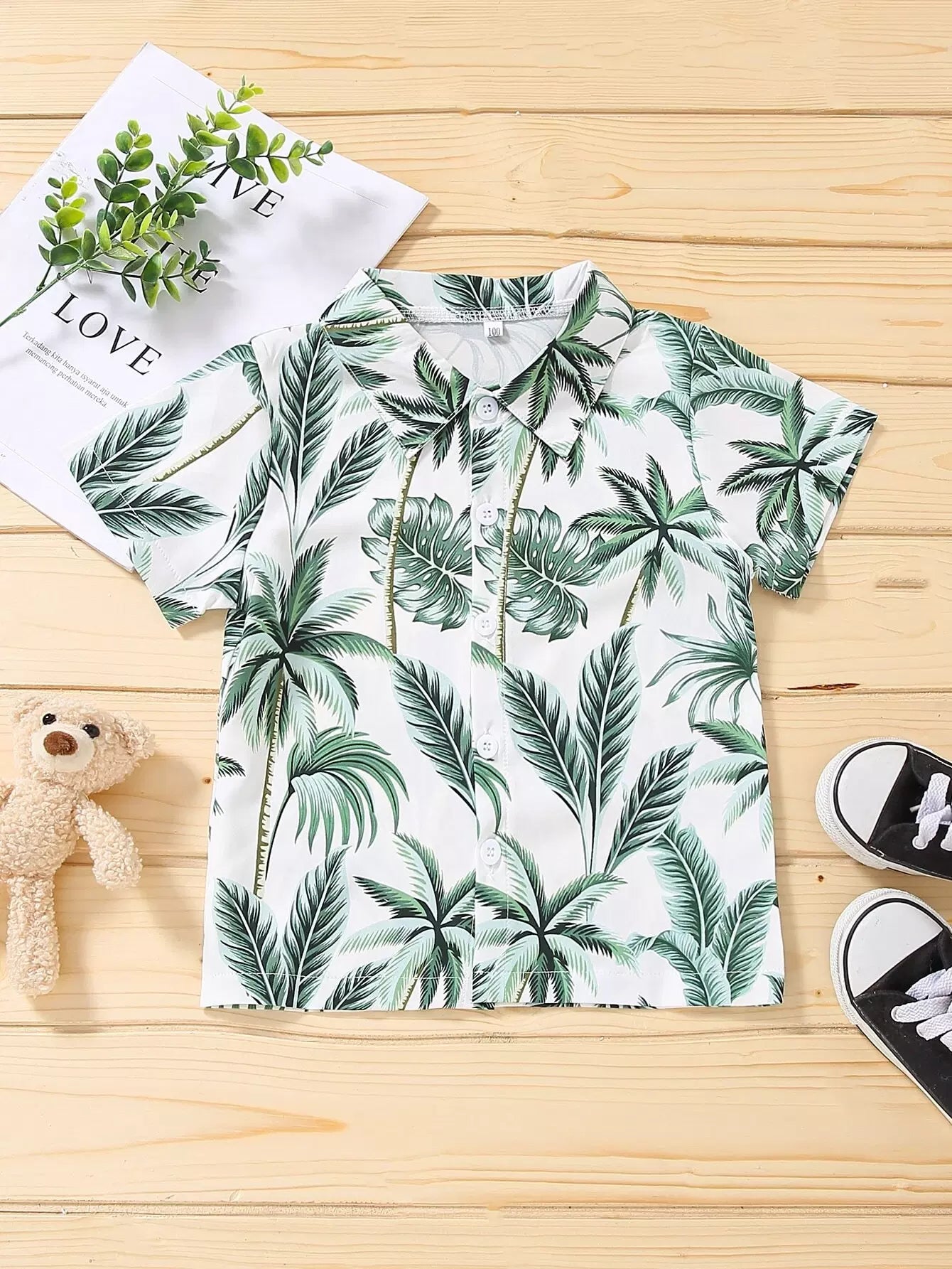 Toddler Boys Leaf & Tree Print Button Up Shirt