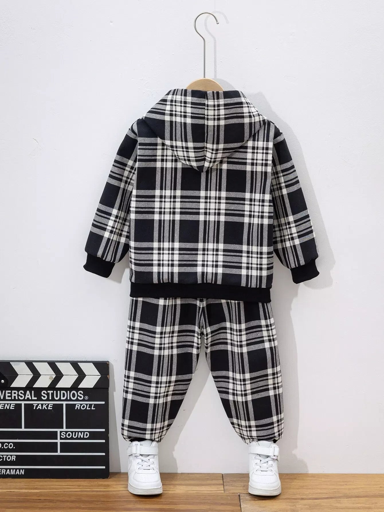 Toddler Boys Plaid Flap Pocket Hoodie & Sweatpants