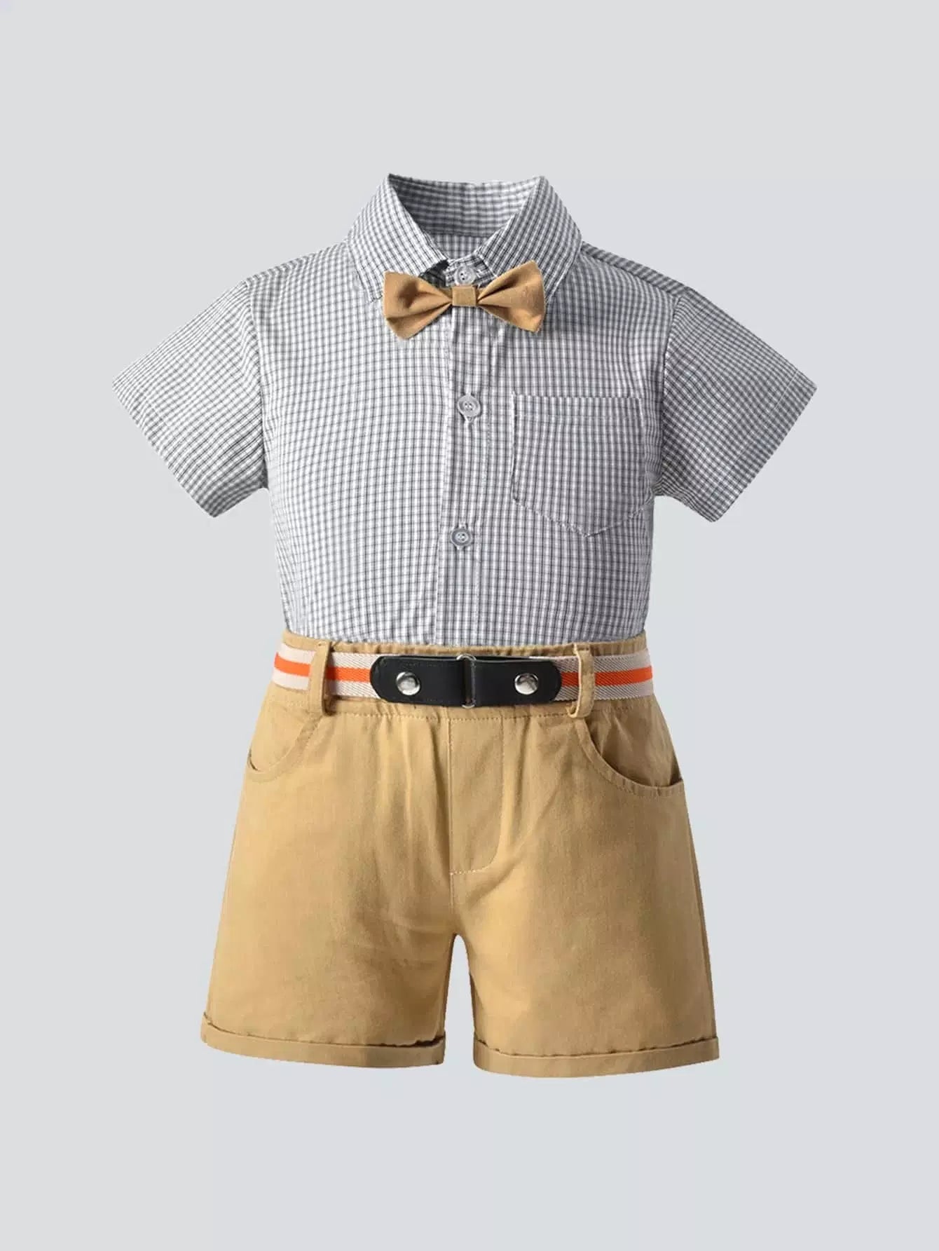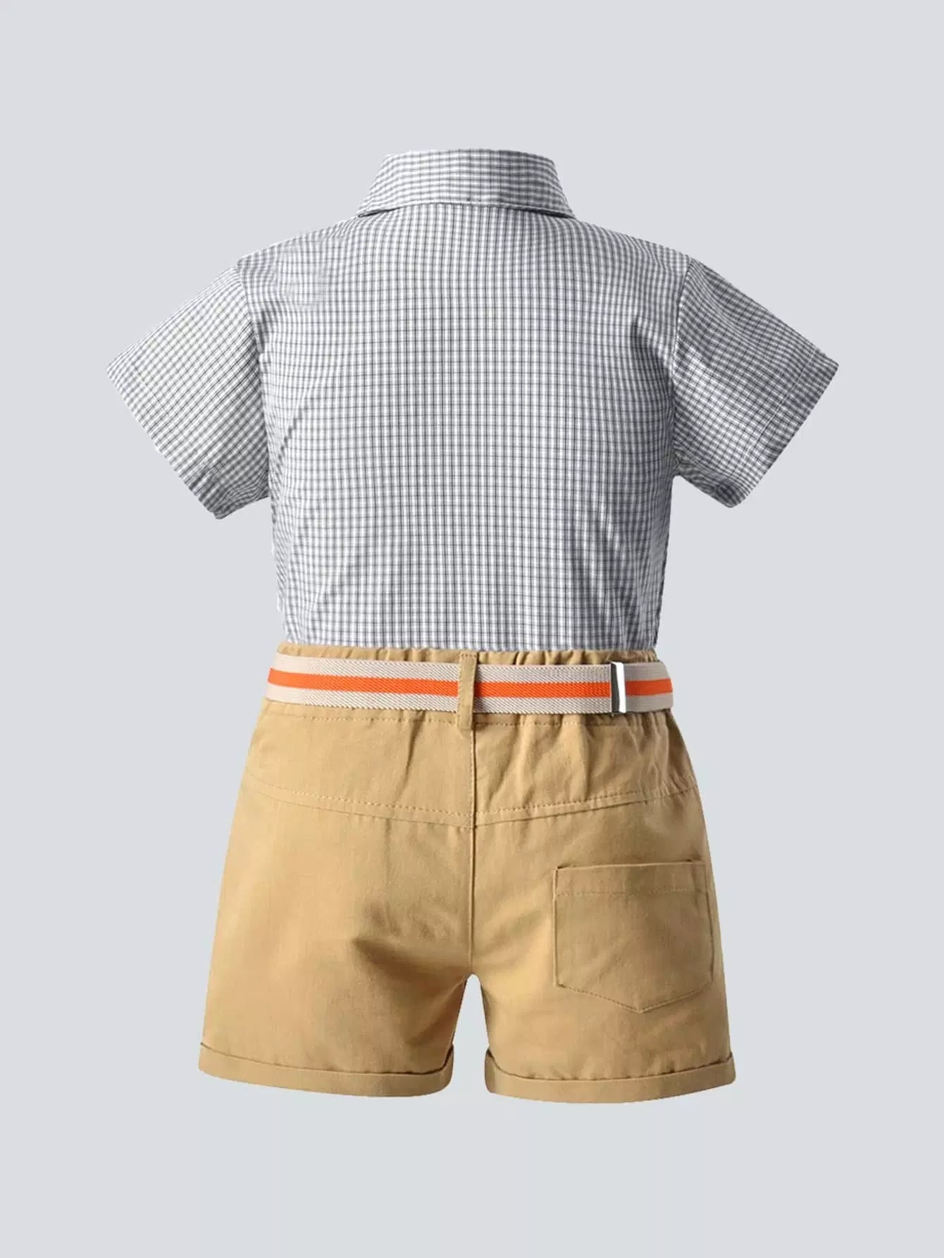 Toddler Boys Plaid Print Button Front Shirt Shorts Without Belt