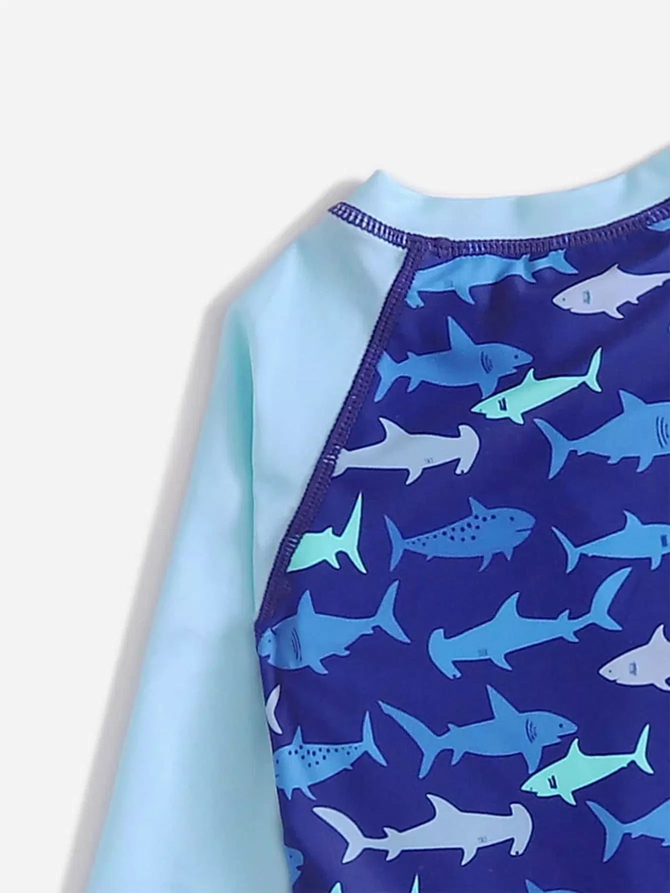 Toddler Boys Shark Print Zip Front One Piece Swimsuit