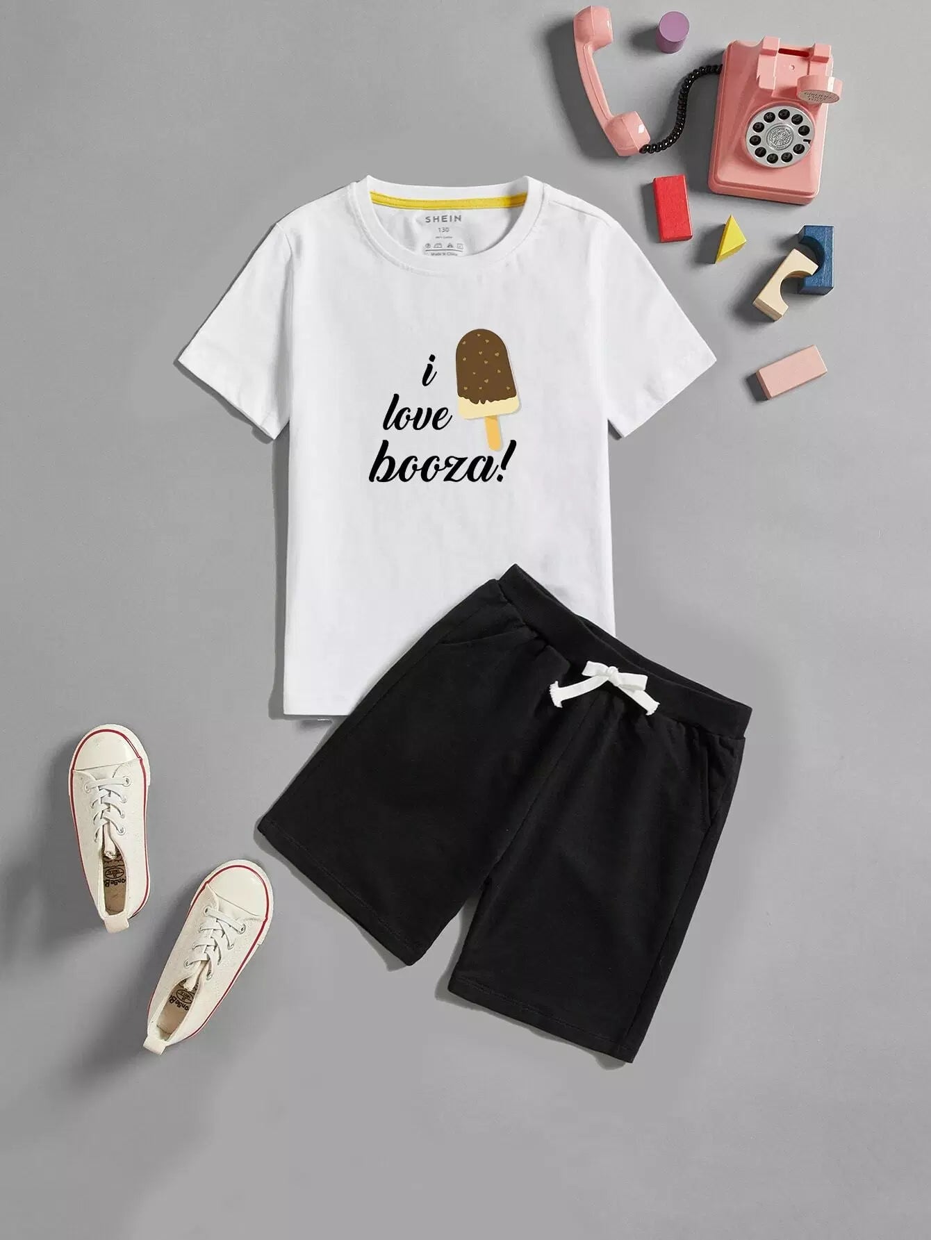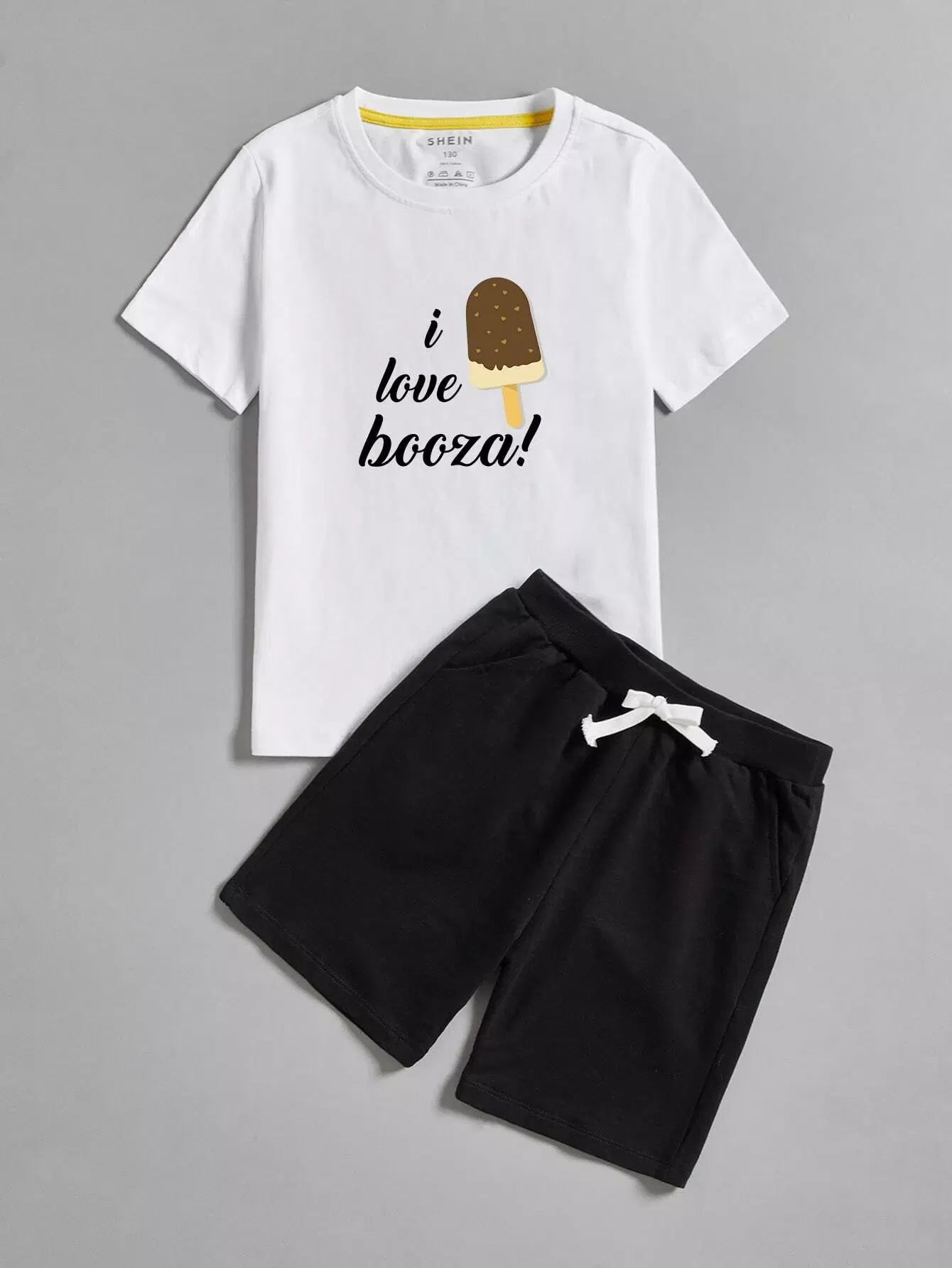 Toddler Boys Slogan and Cartoon Graphic Top & Shorts Set