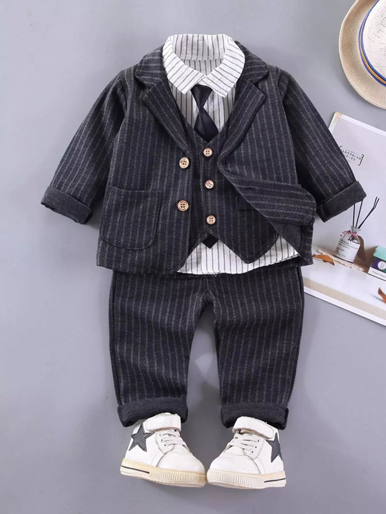 Toddler Boys Stripe Necktie Shirt & Pants & Waistcoat & Blazer