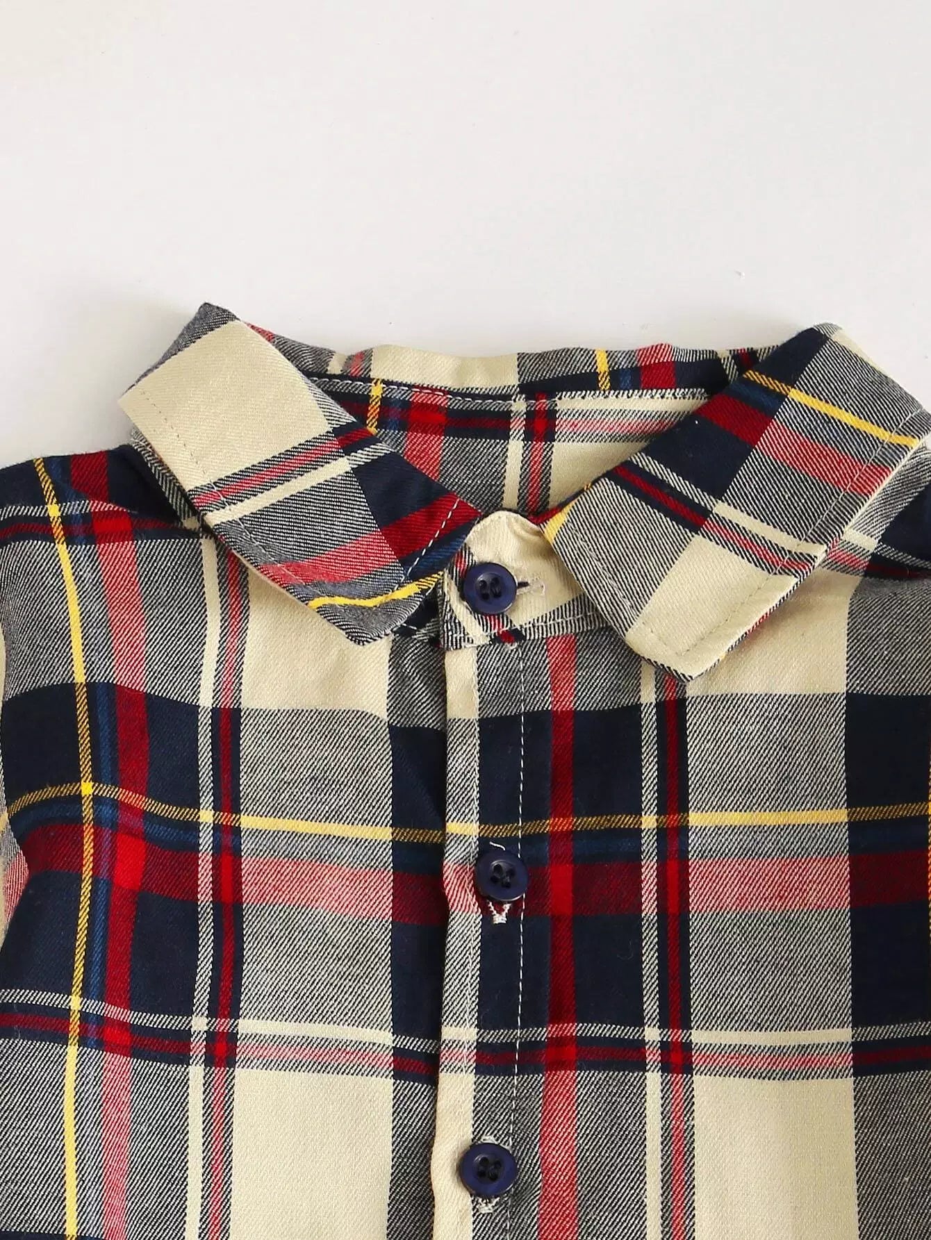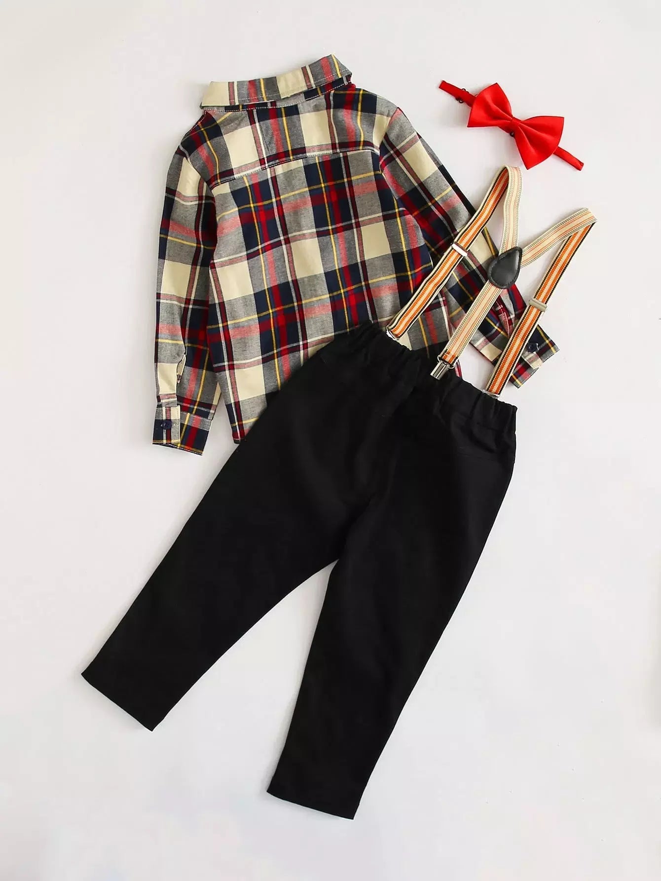 Toddler Boys Tartan Shirt & Pocket Suspender Pants