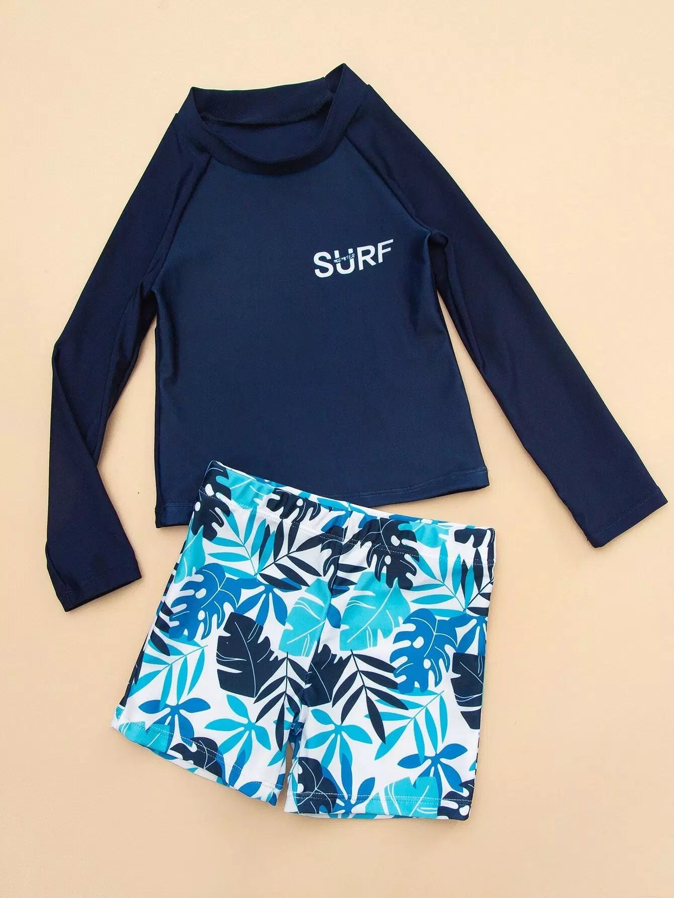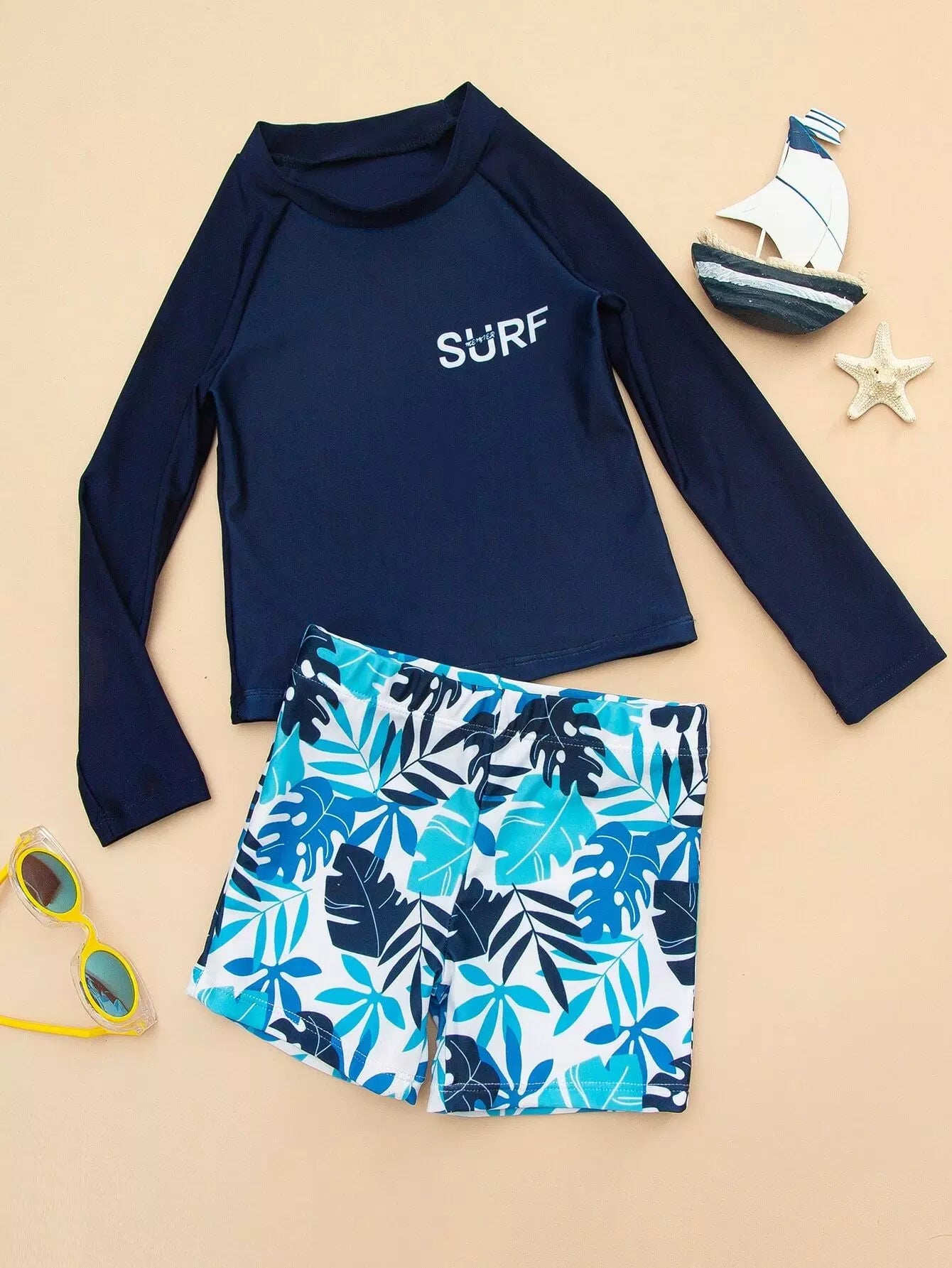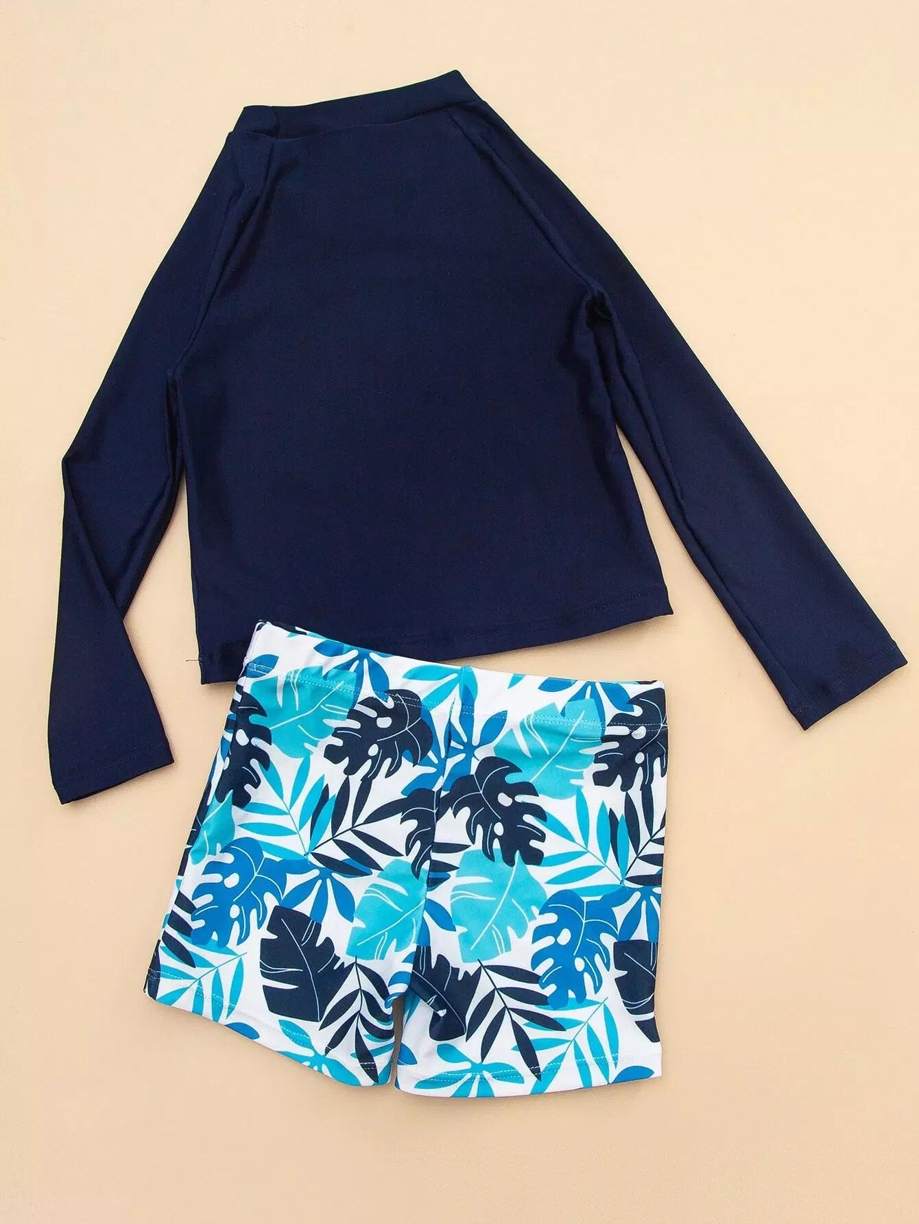 Toddler Boys Tropical Print Two Piece Swimsuit