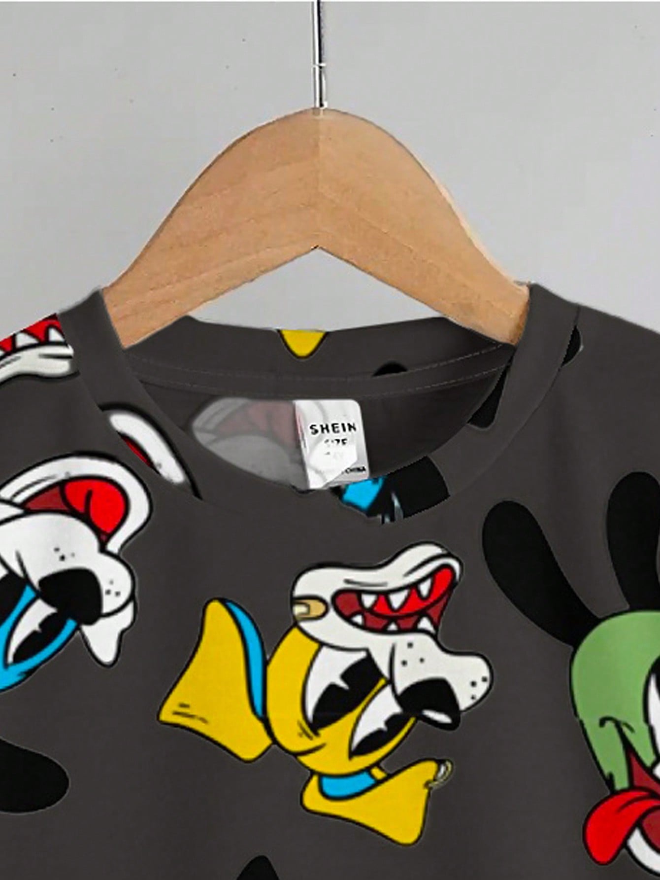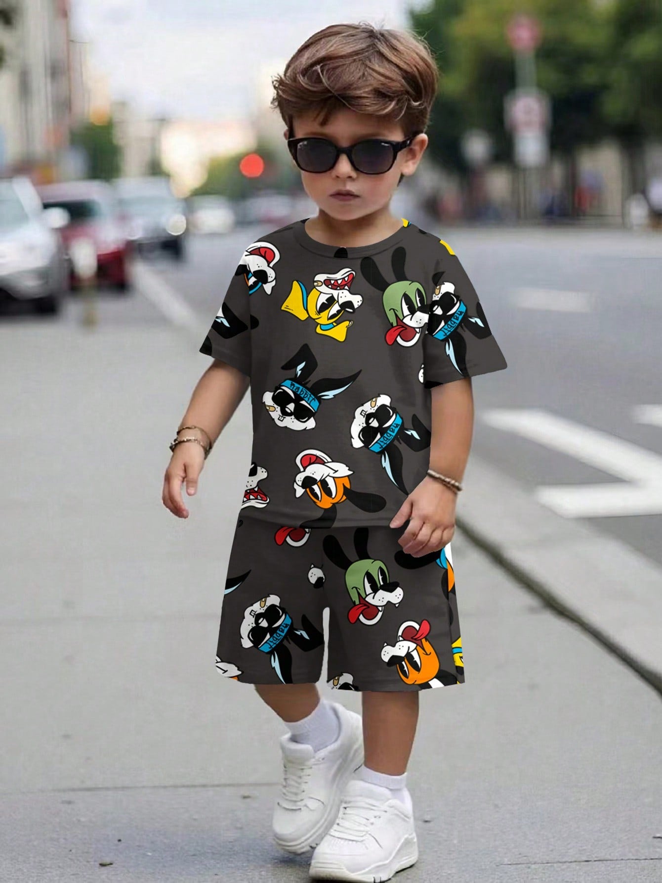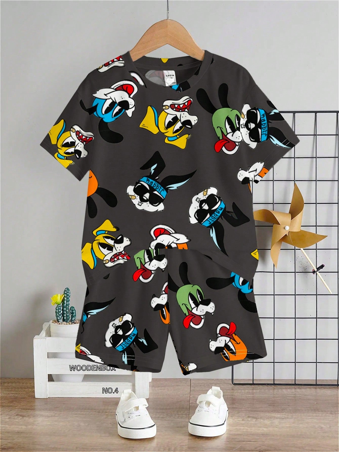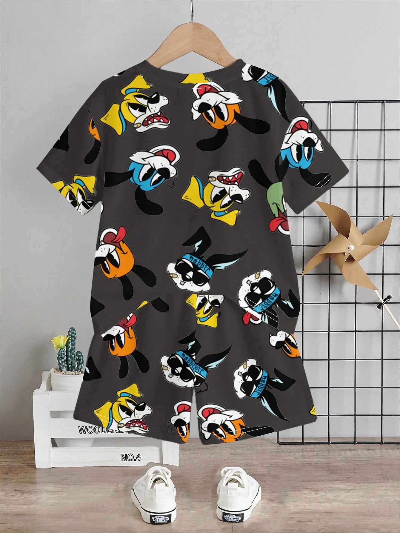 Young Boy Casual Simple Round Neck Short Sleeve And Shorts 2 Pieces Set, Suitable For Summer