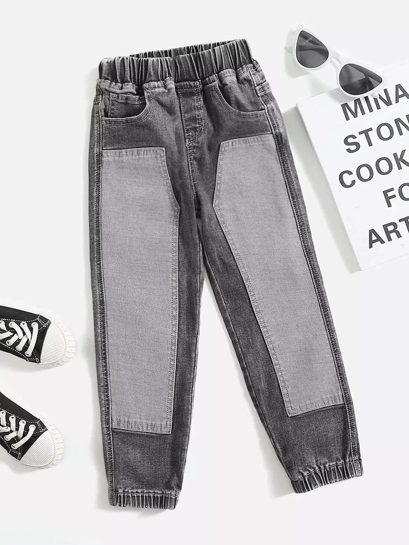 Toddler Boys Two Tone Elastic Waist Jogger Jeans