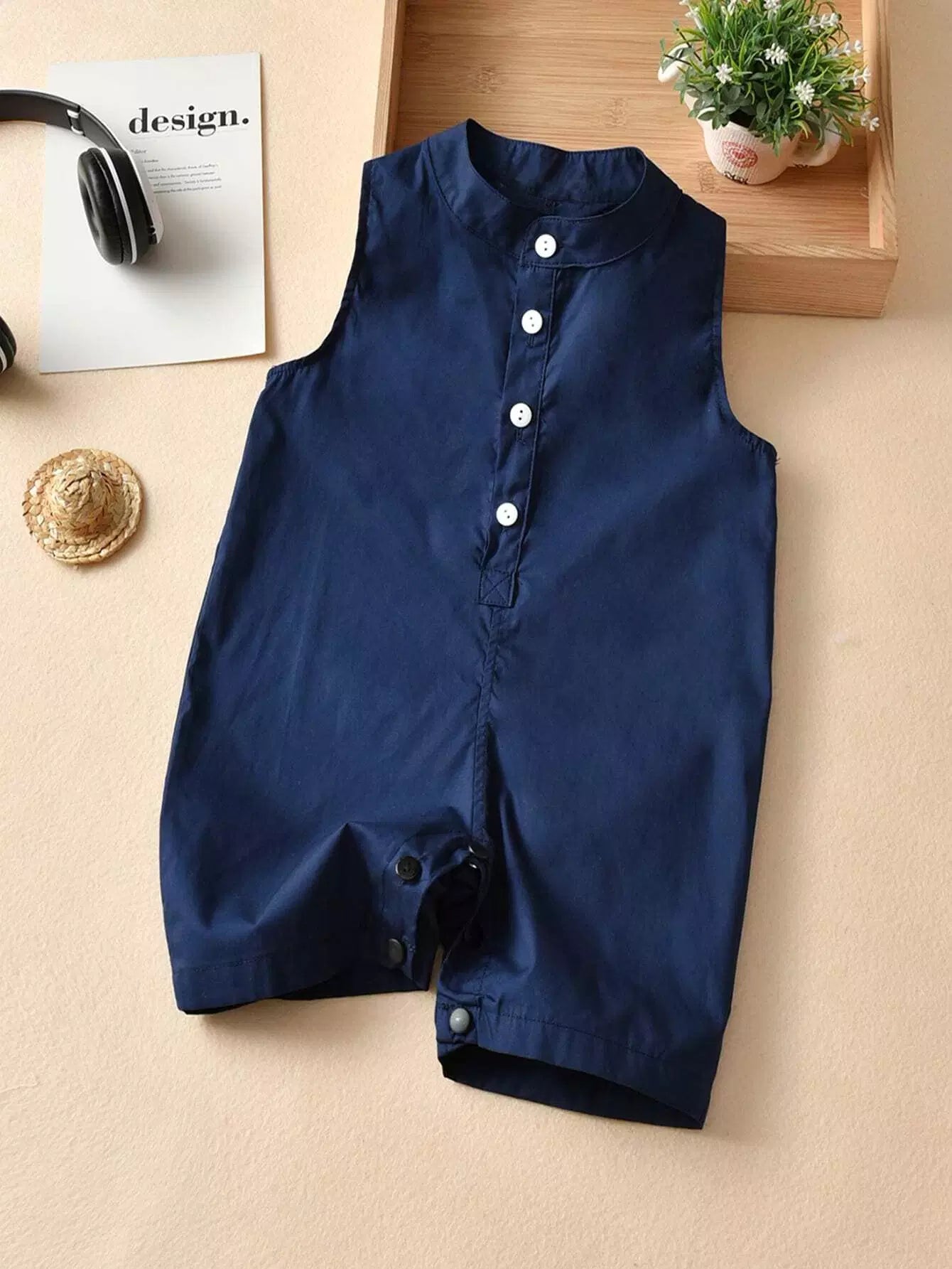 Toddler Boys Stand Collar Sleeveless Romper