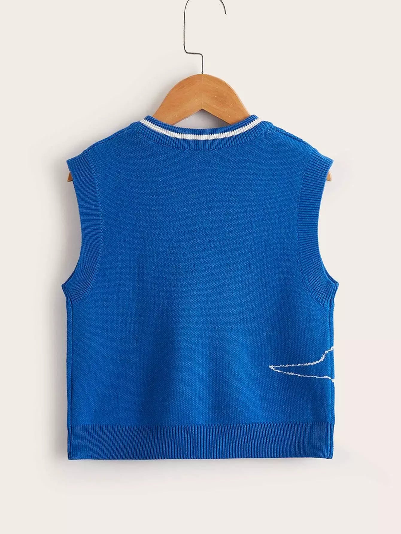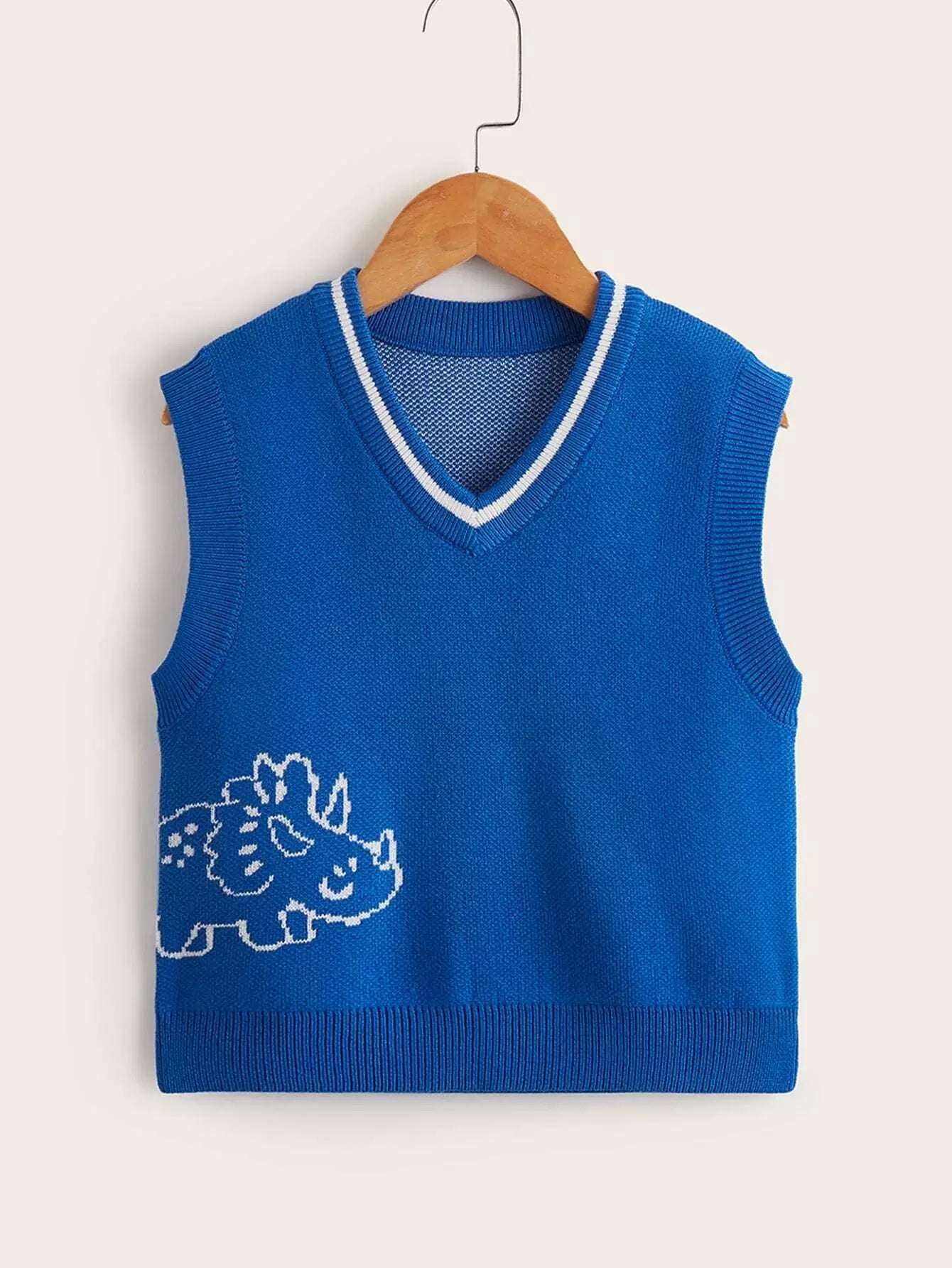 Toddler Boys Cartoon Pattern Striped Trim Sweater Vest