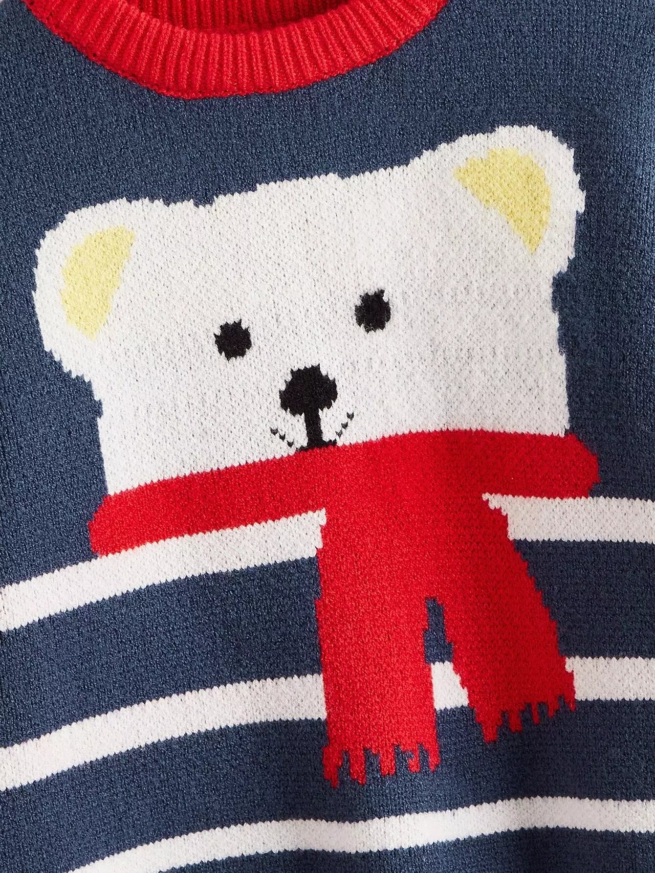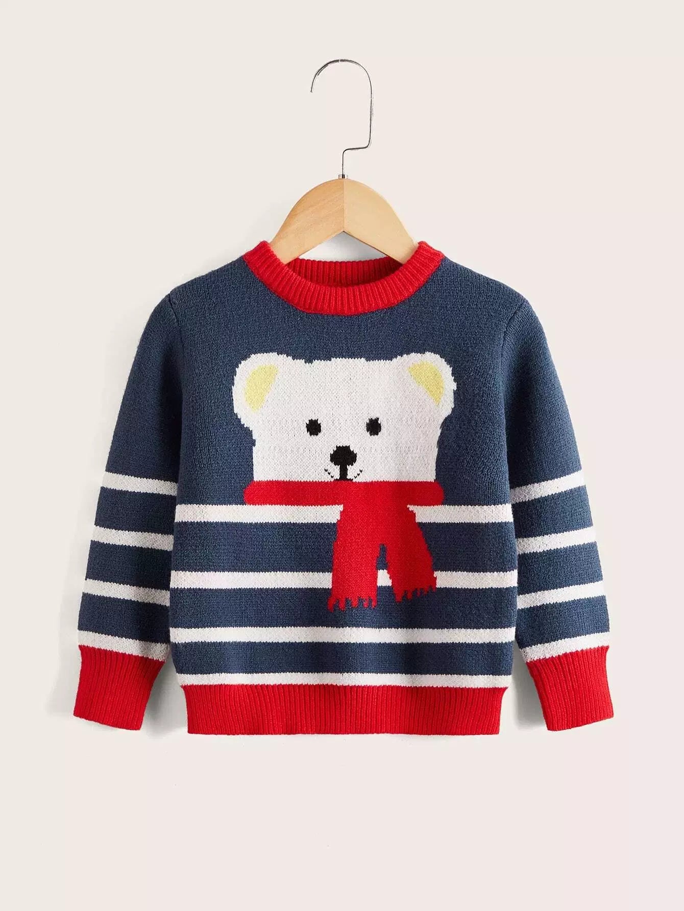 Toddler Boys Striped & Bear Pattern Sweater
