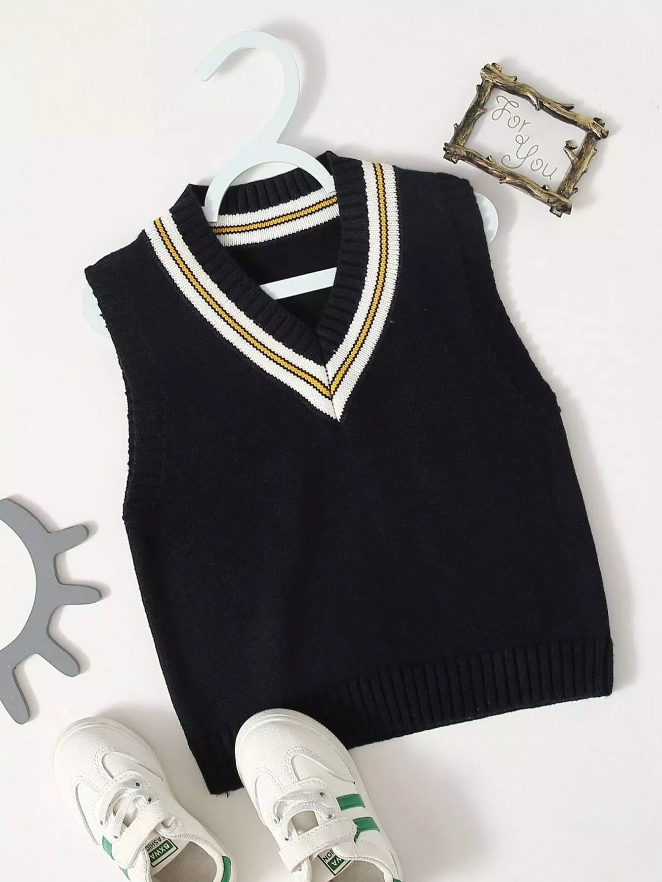 Toddler Boys Striped Trim V-neck Sweater Vest
