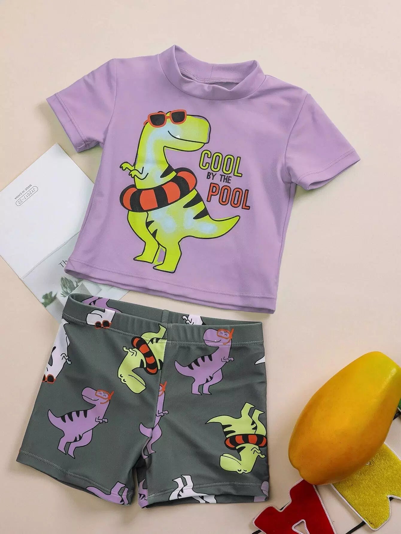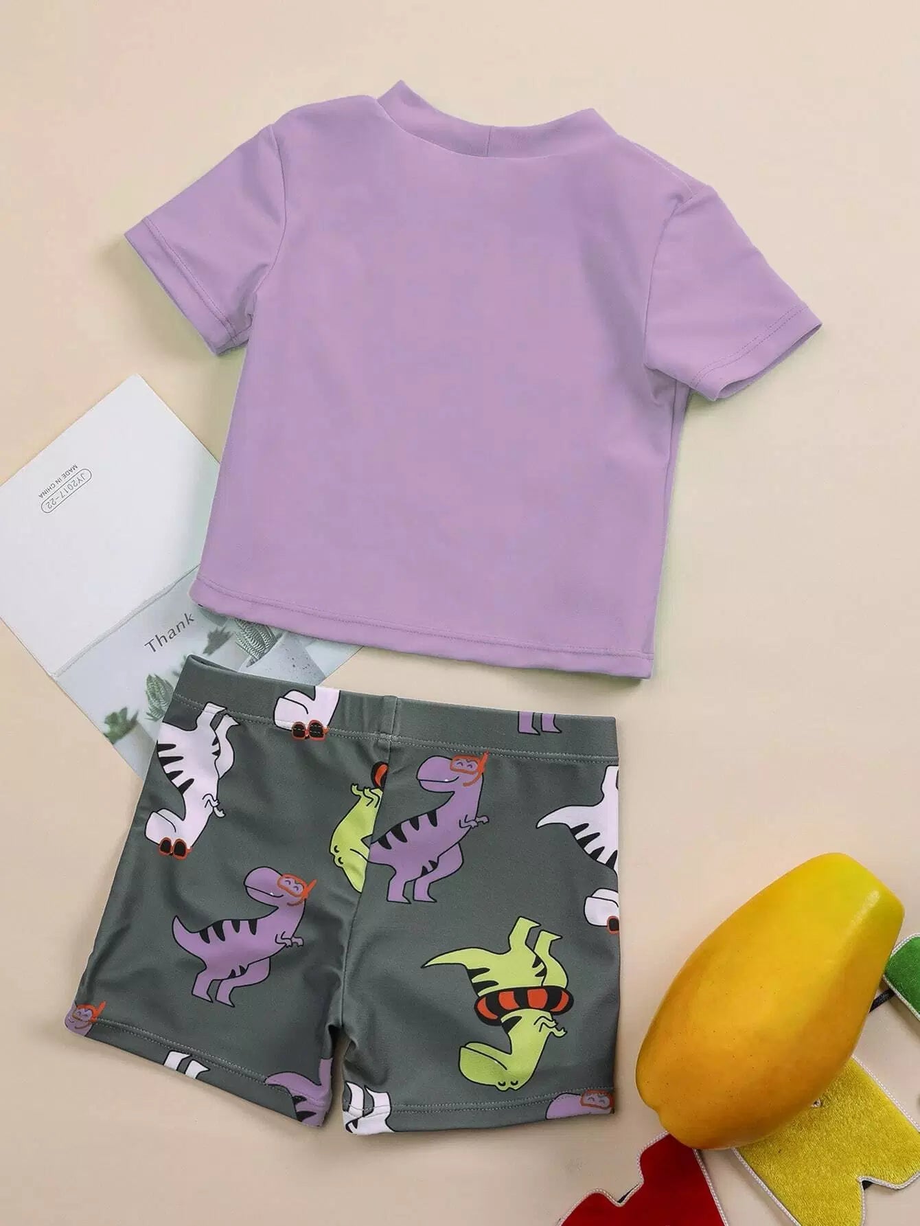 Toddler Boys Cartoon Dinosaur Two Piece Swimsuit