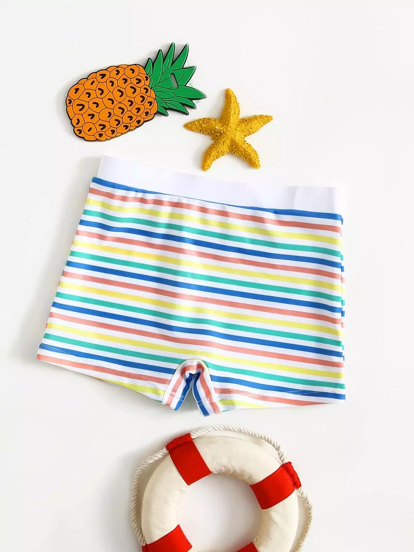 Kids - Toddler Boys Striped Graphic Swim Trunks