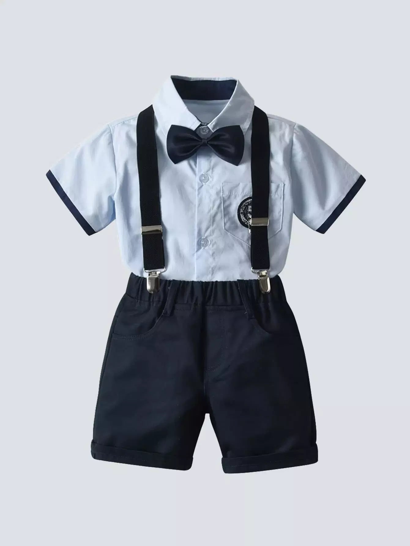 Toddler Boys Bow Front Shirt & Suspender Shorts