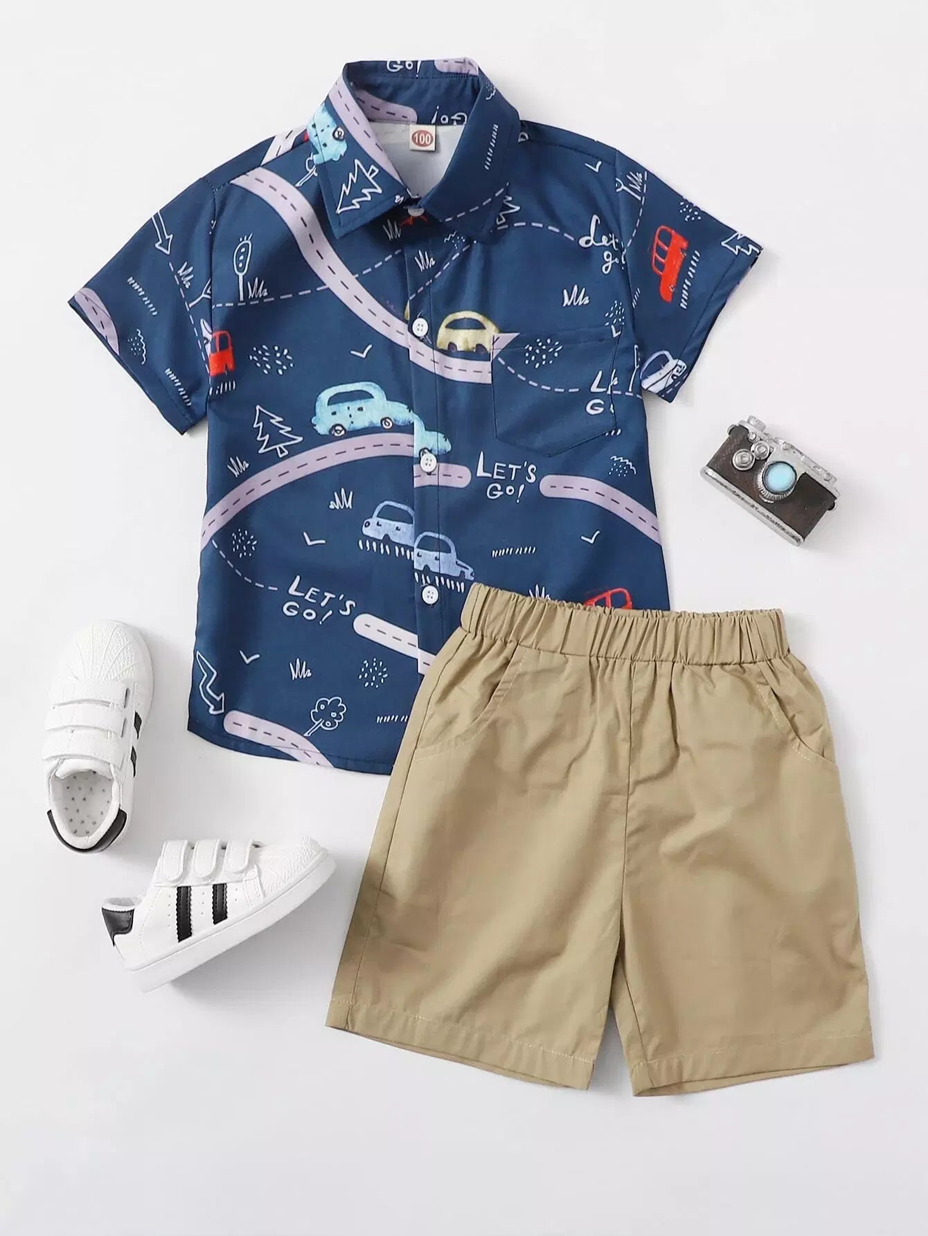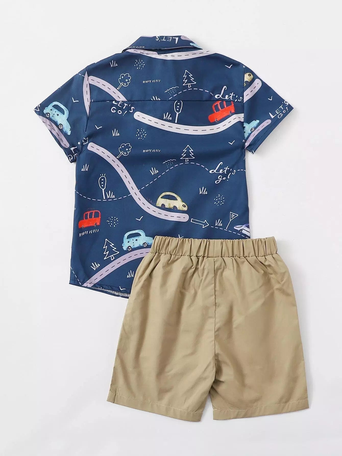 Toddler Boys Car & Slogan Graphic Shirt & Shorts