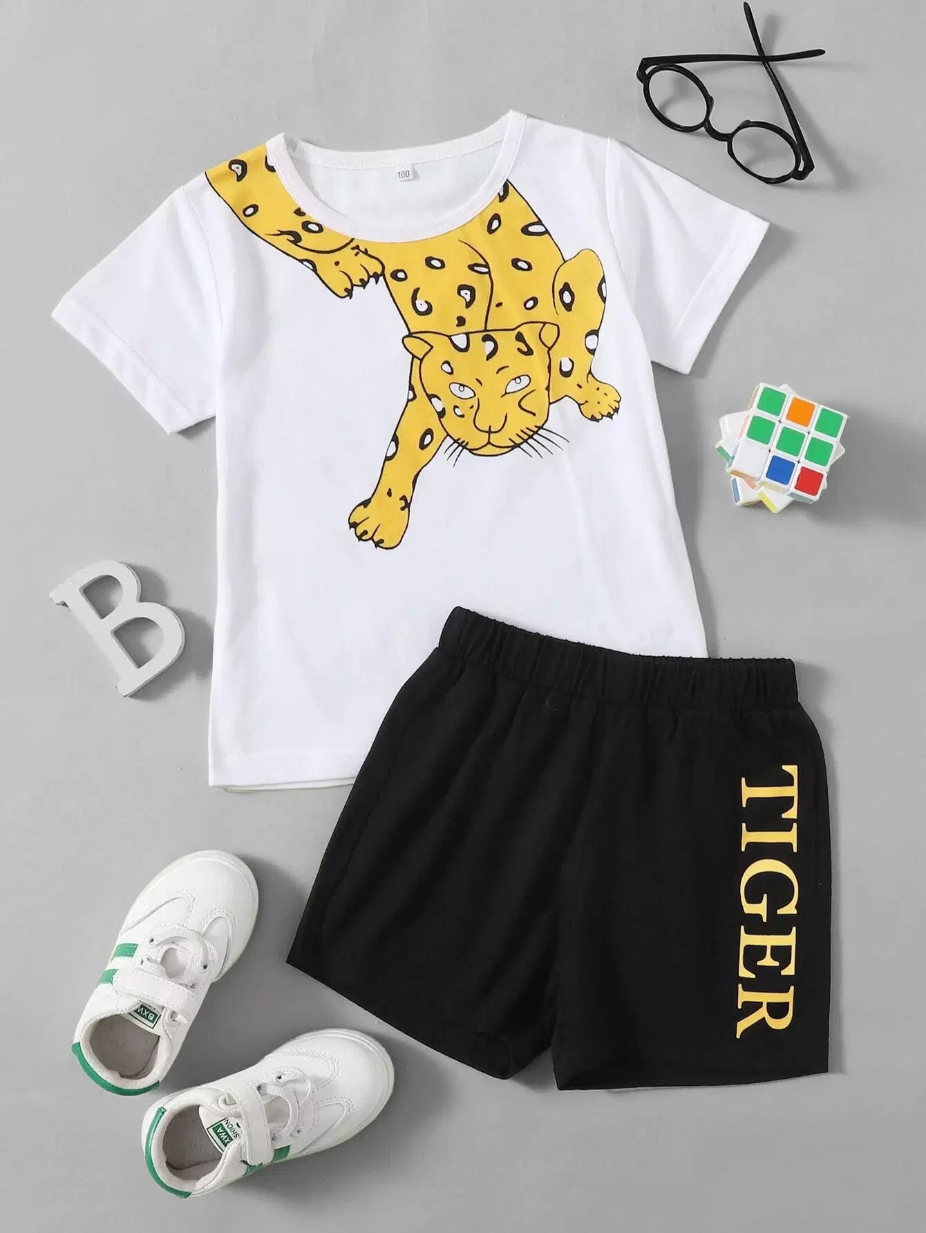 Kids - Toddler Boys Cartoon Animal Print Tee & Letter Shorts