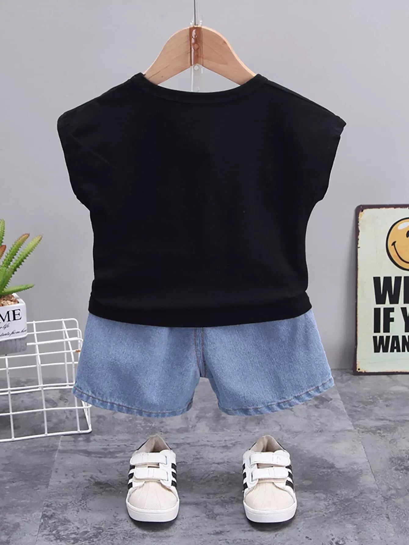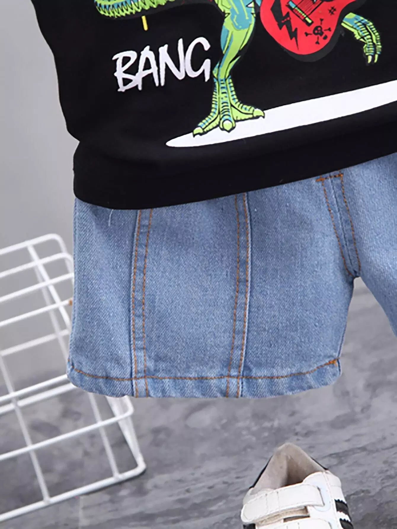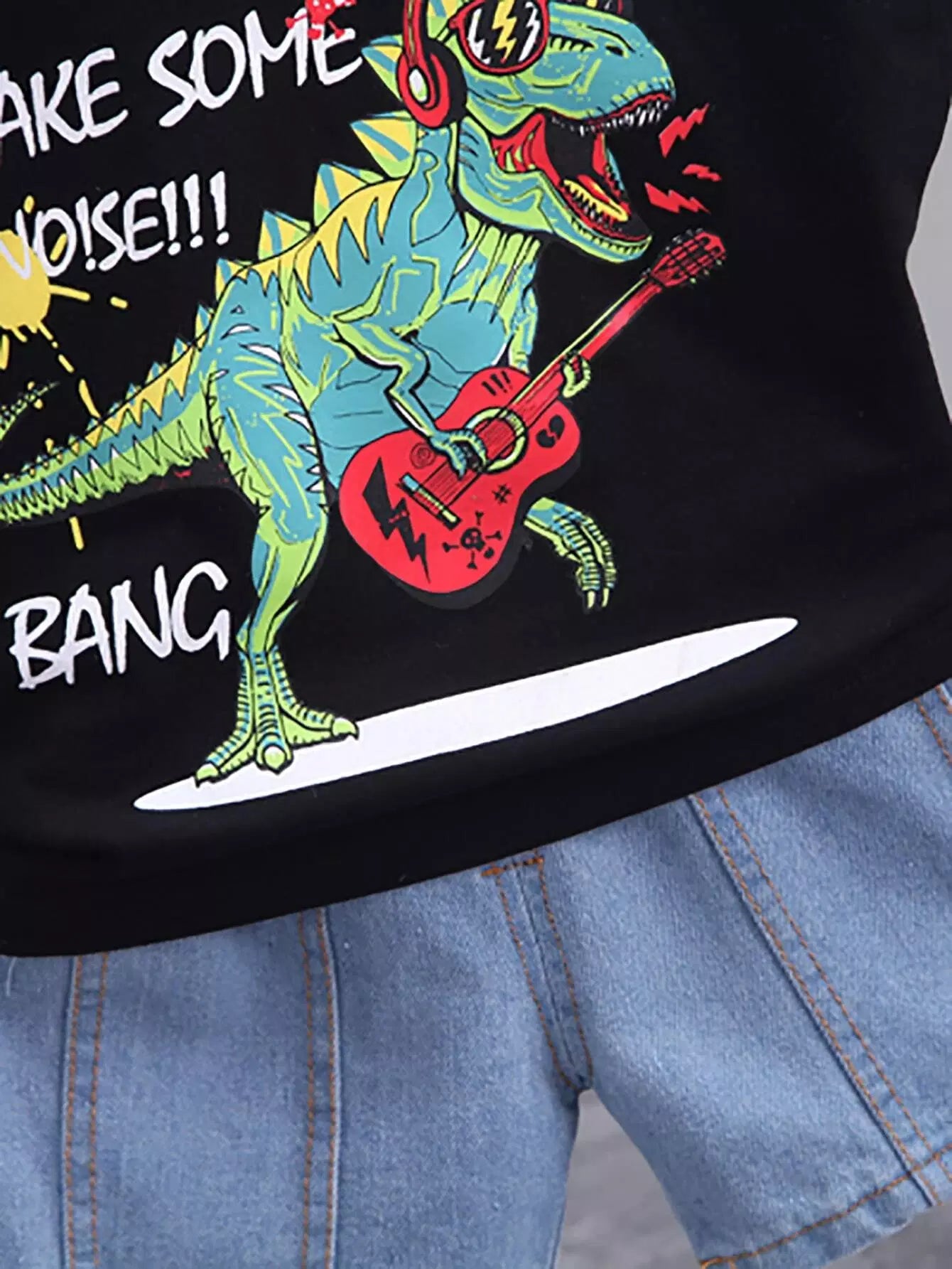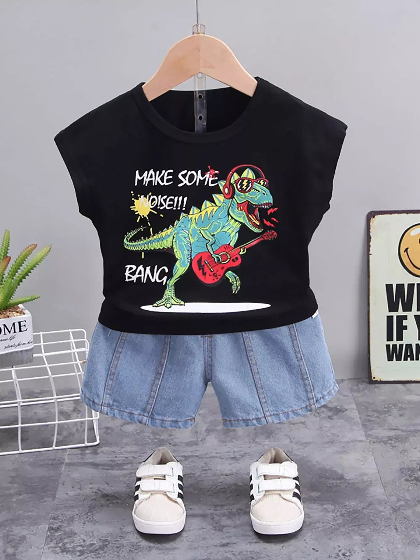 Toddler Boys Dinosaur And Slogan Graphic Tee & Denim Shorts