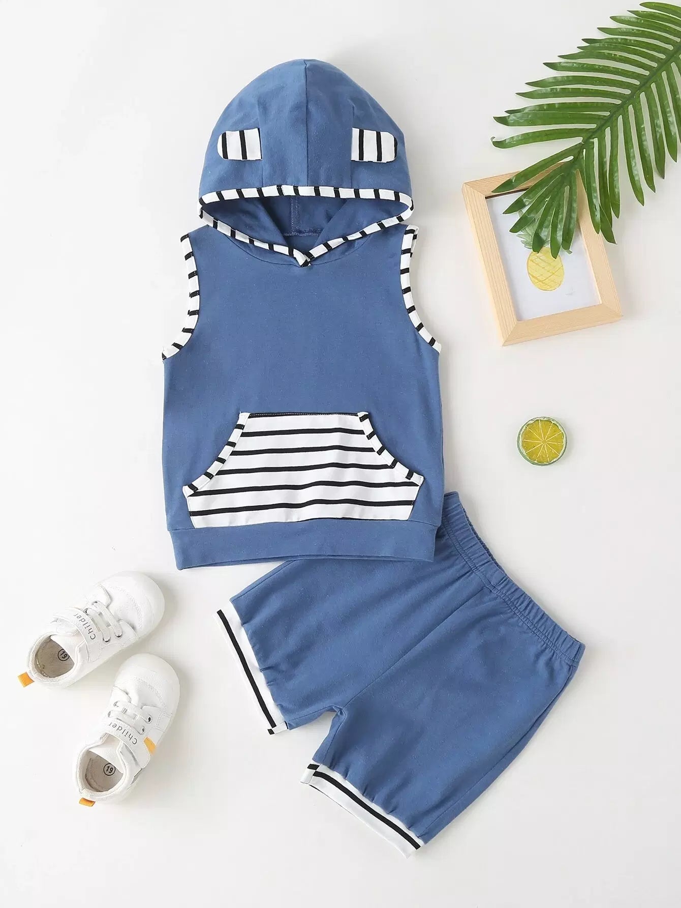 Toddler Boys Kangaroo Pocket Stripe Hoodie & Shorts