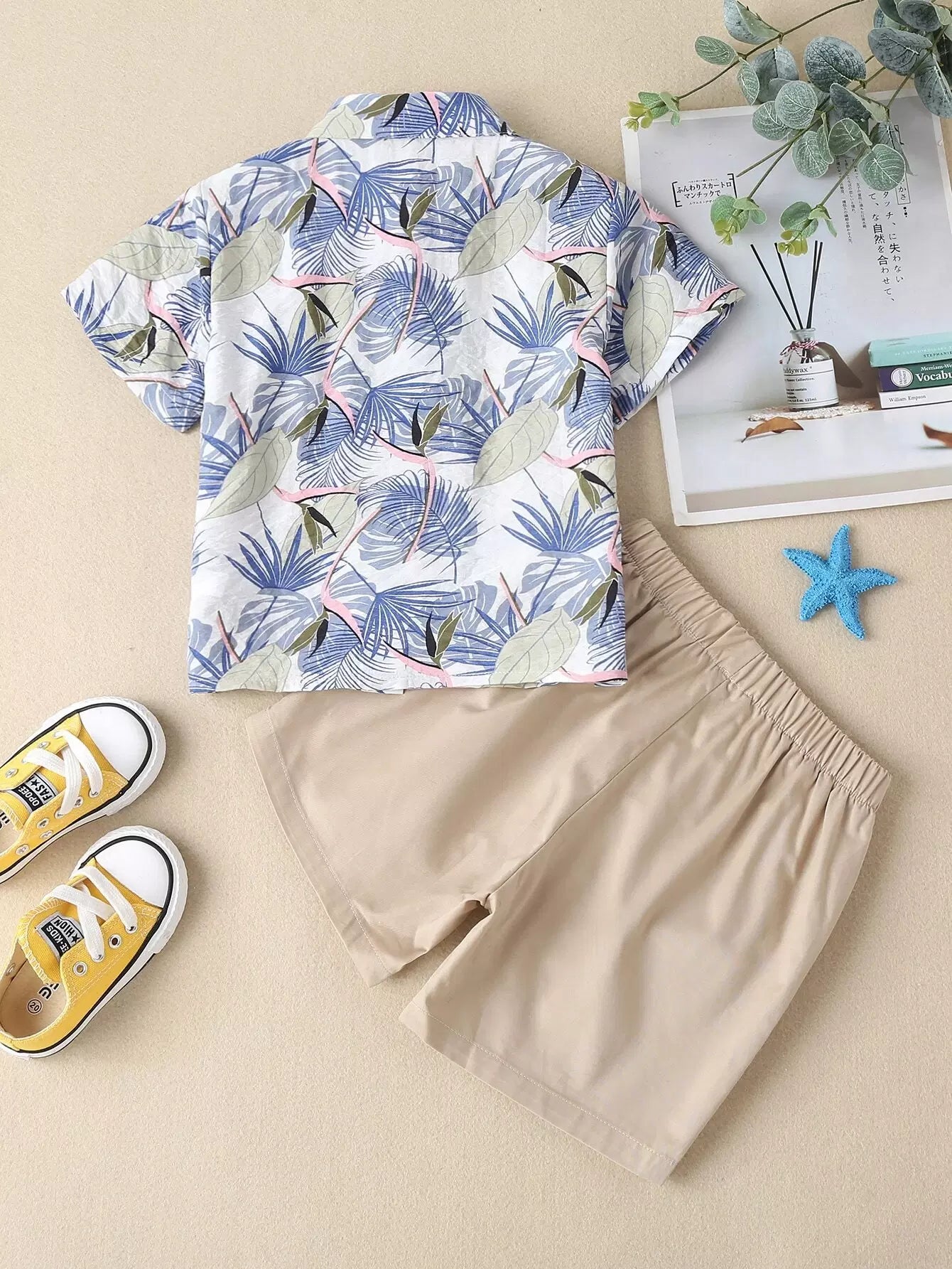 Toddler Boys Leaf Print Button Up Shirt & Shorts