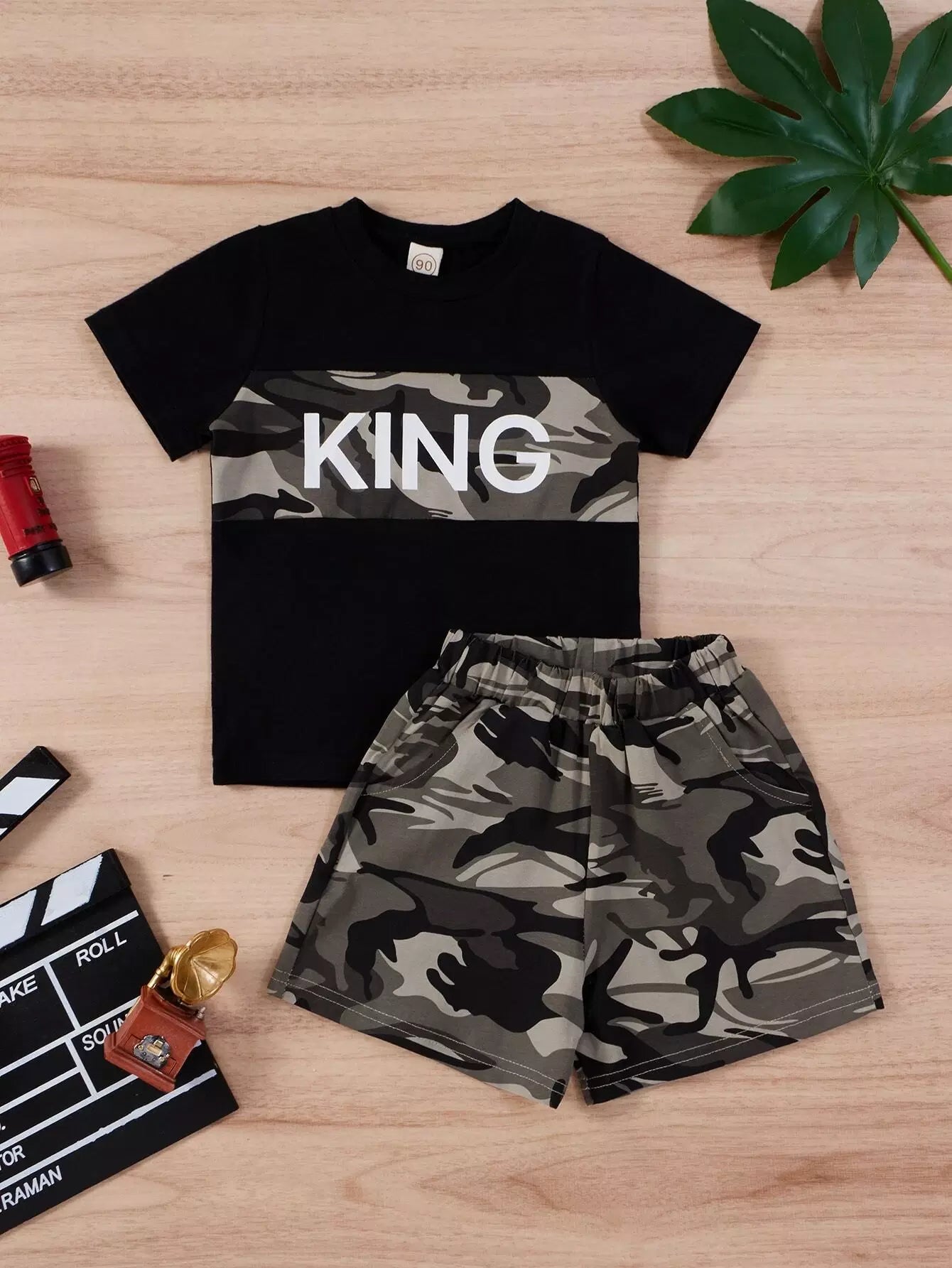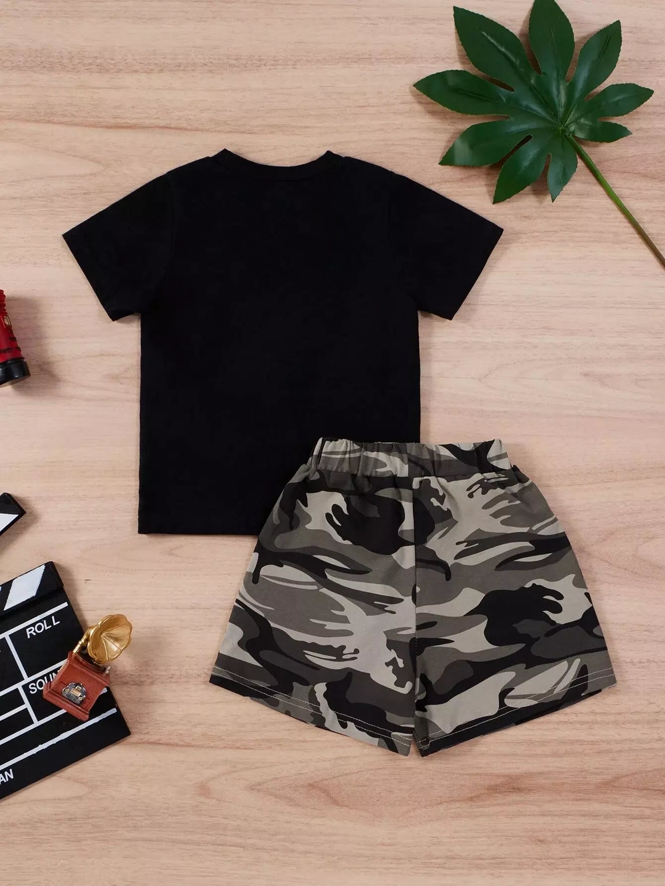 Toddler Boys Letter And Camo Print Tee & Track Shorts