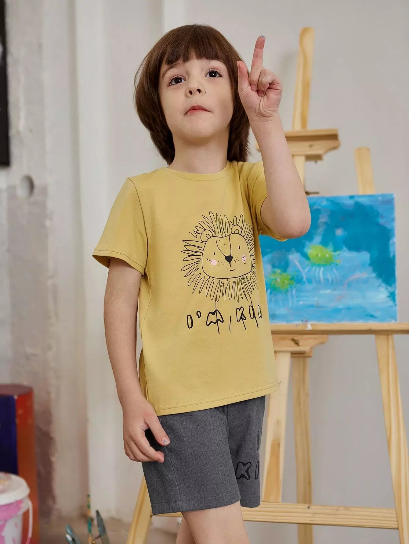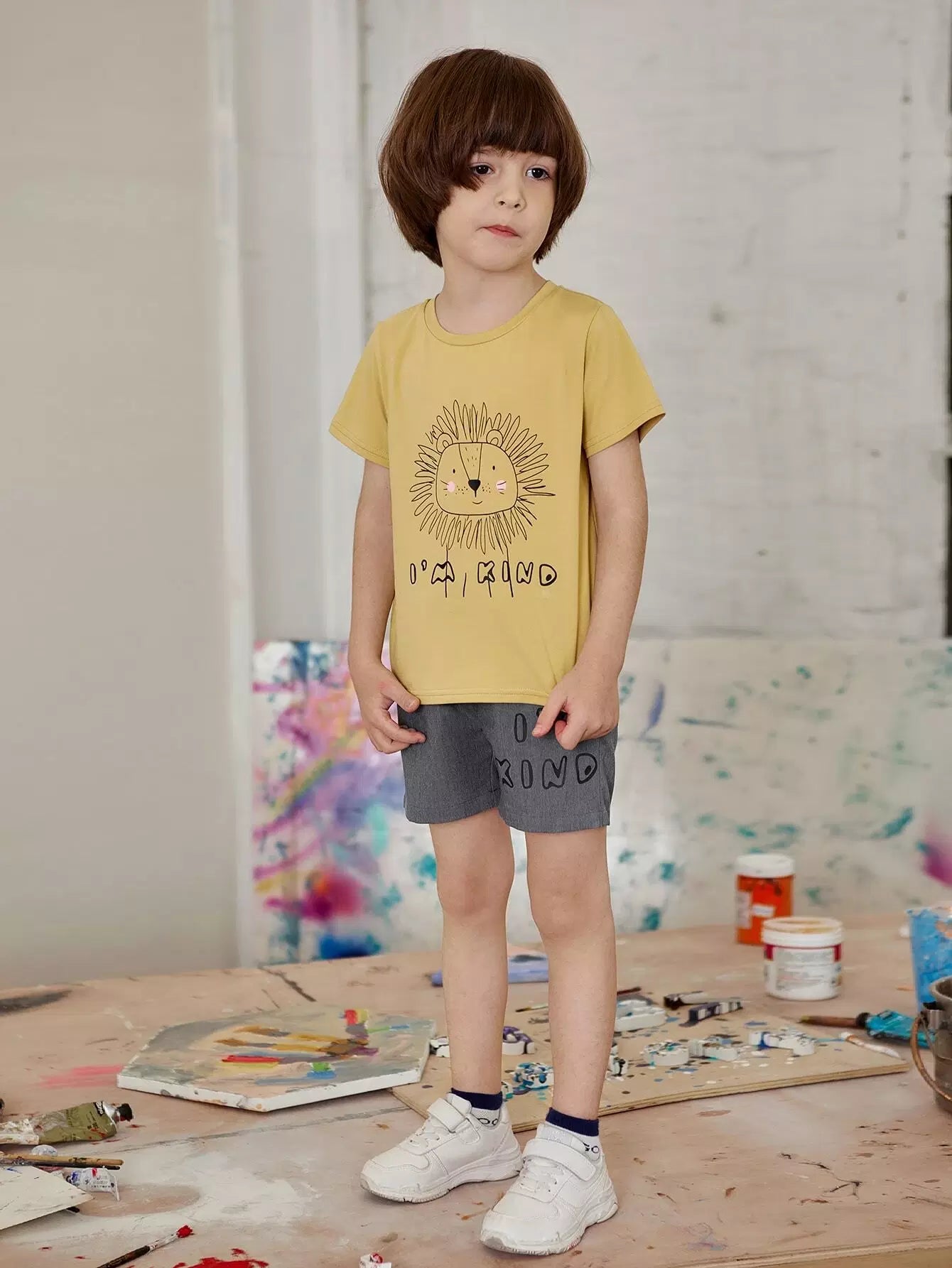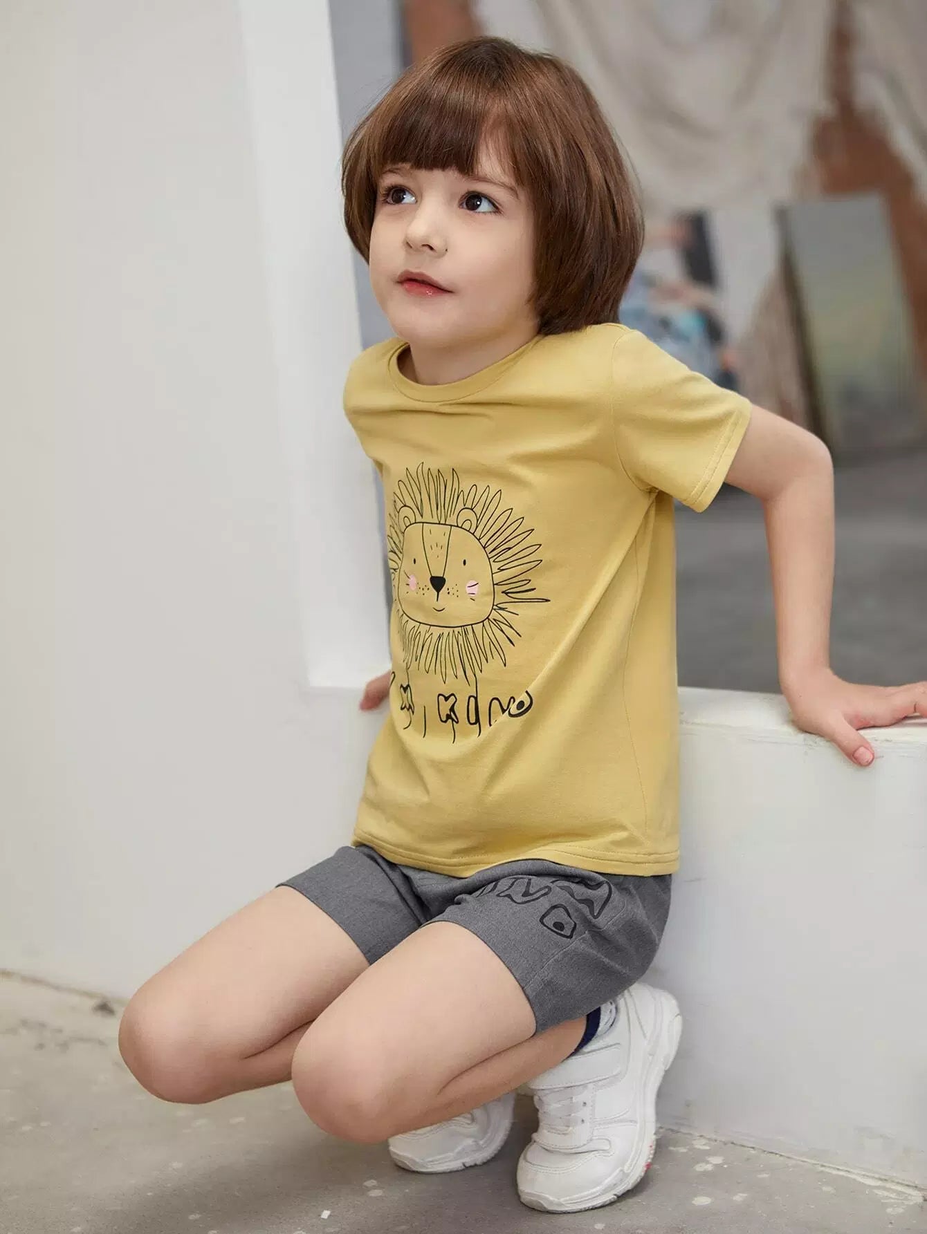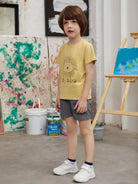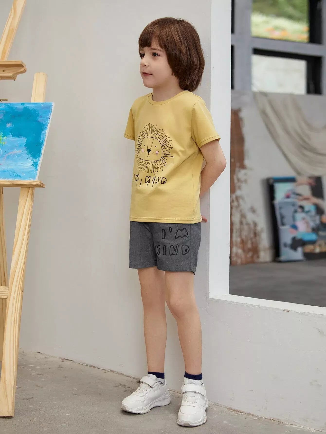 Toddler Boys Letter and Cartoon Graphic Top & Shorts Set