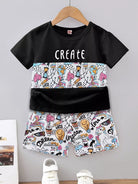 Toddler Boys Letter & Graffiti Print Tee & Shorts