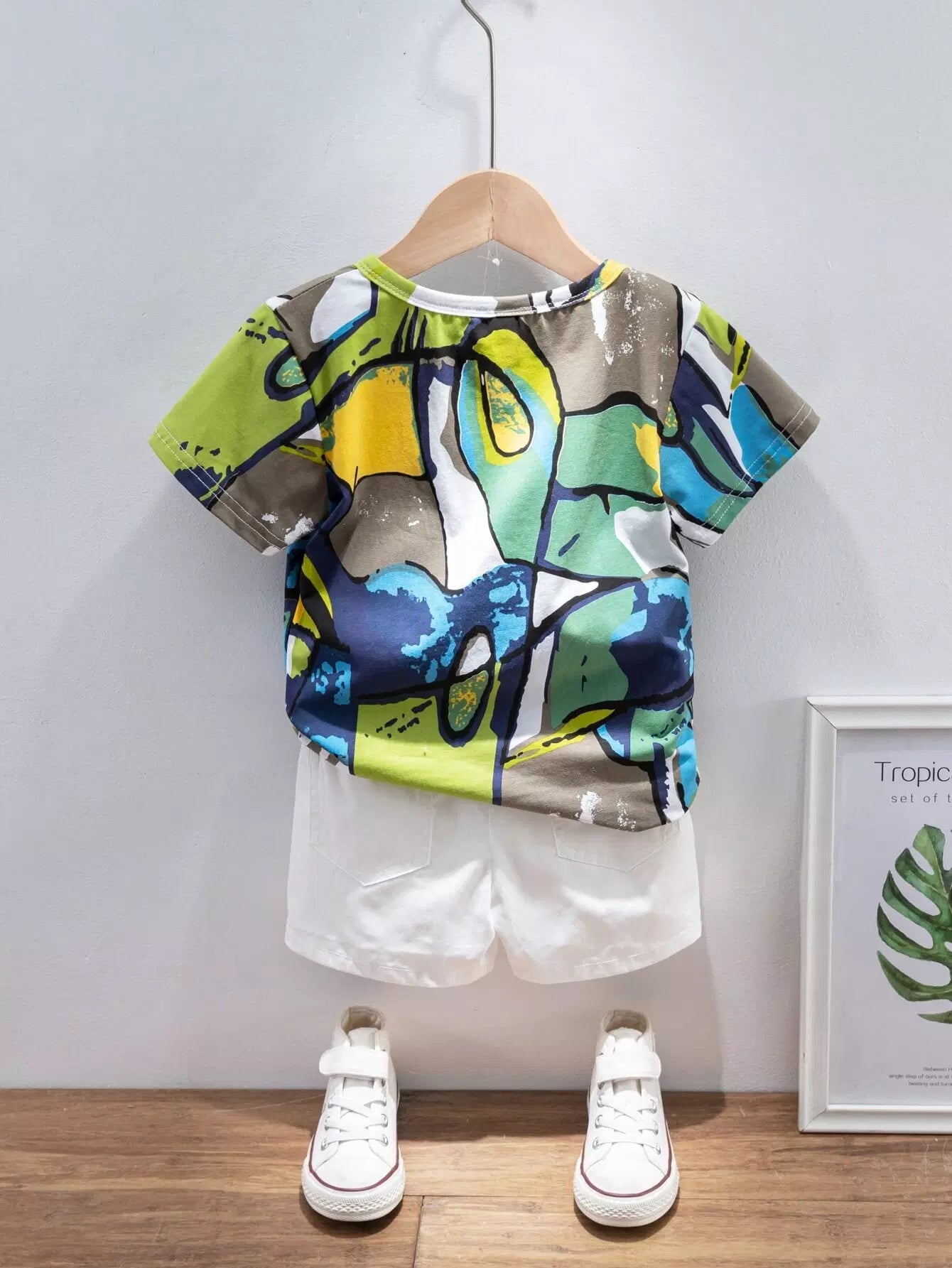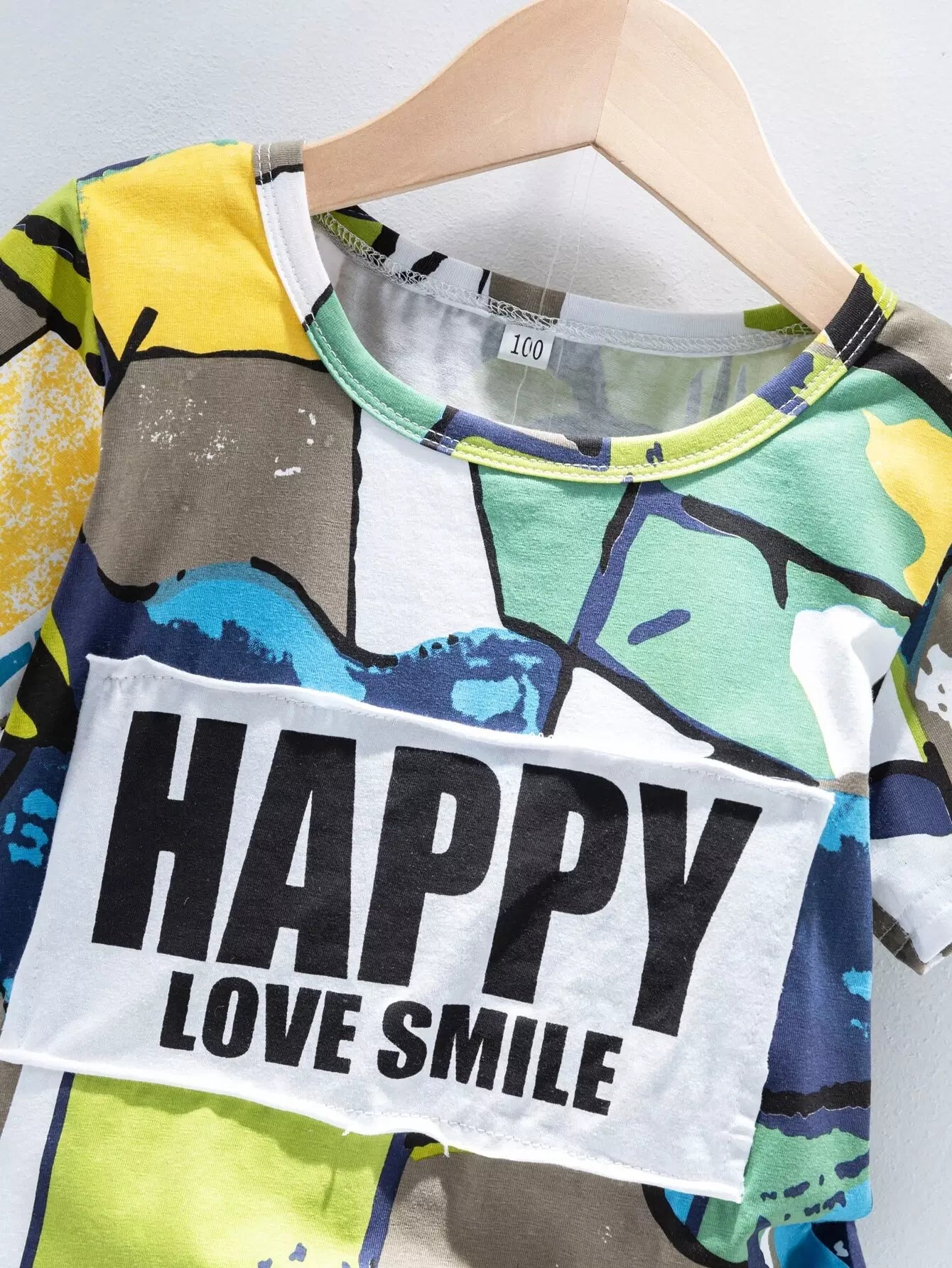 Toddler Boys Letter Graphic Patched Tee & Shorts