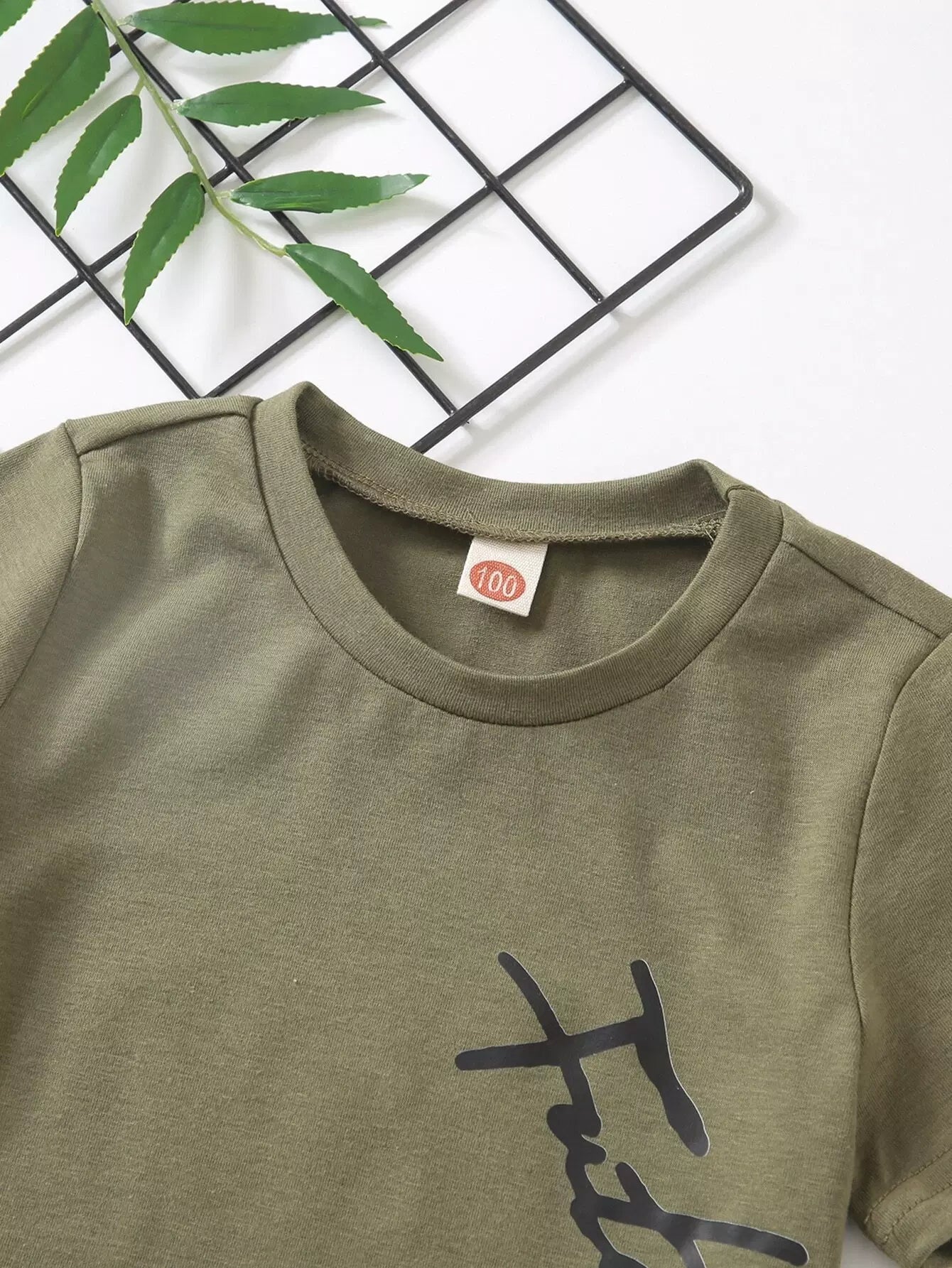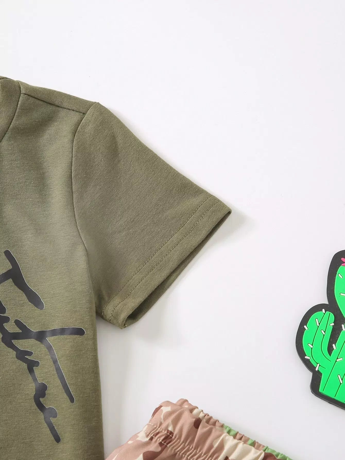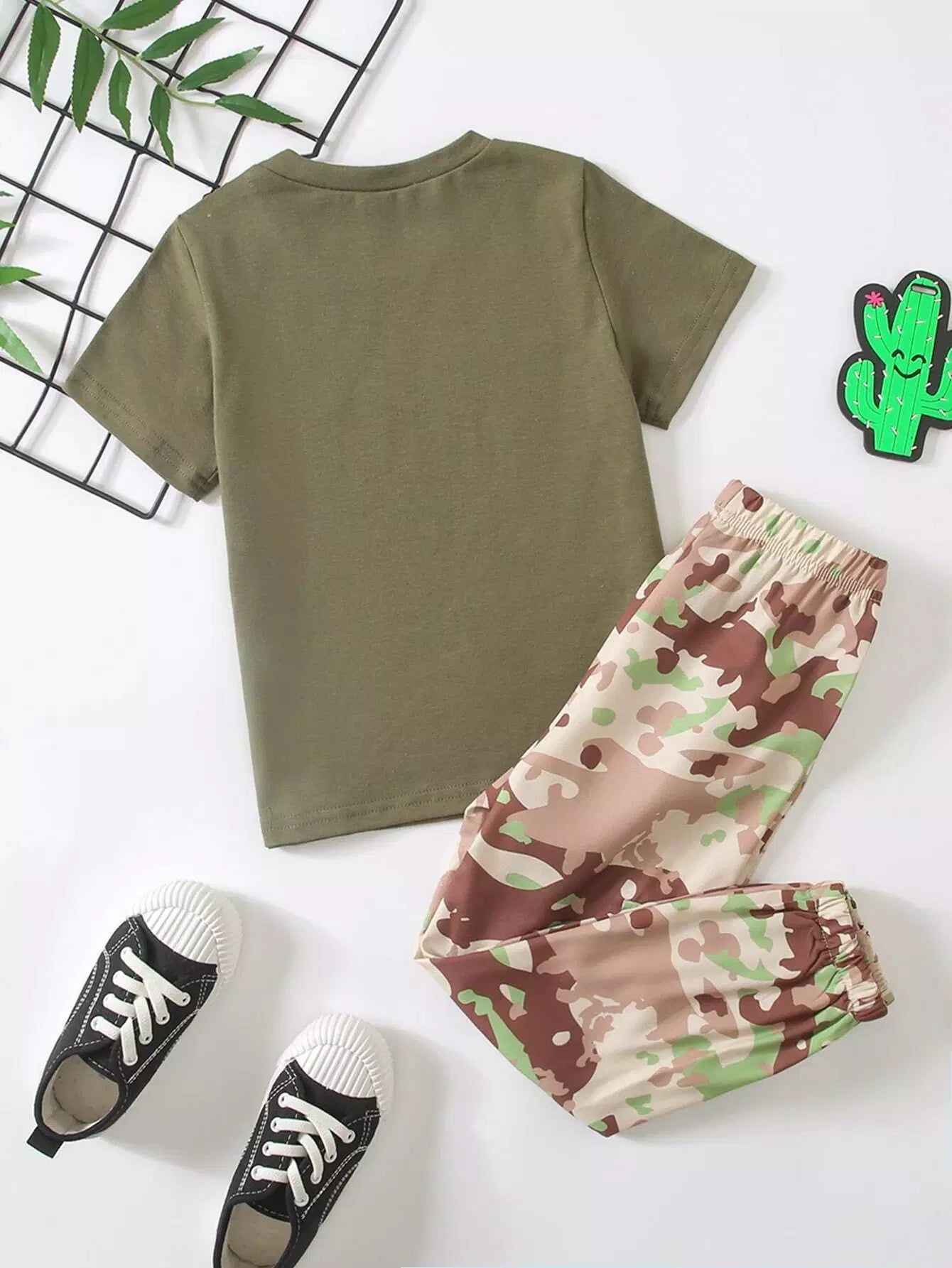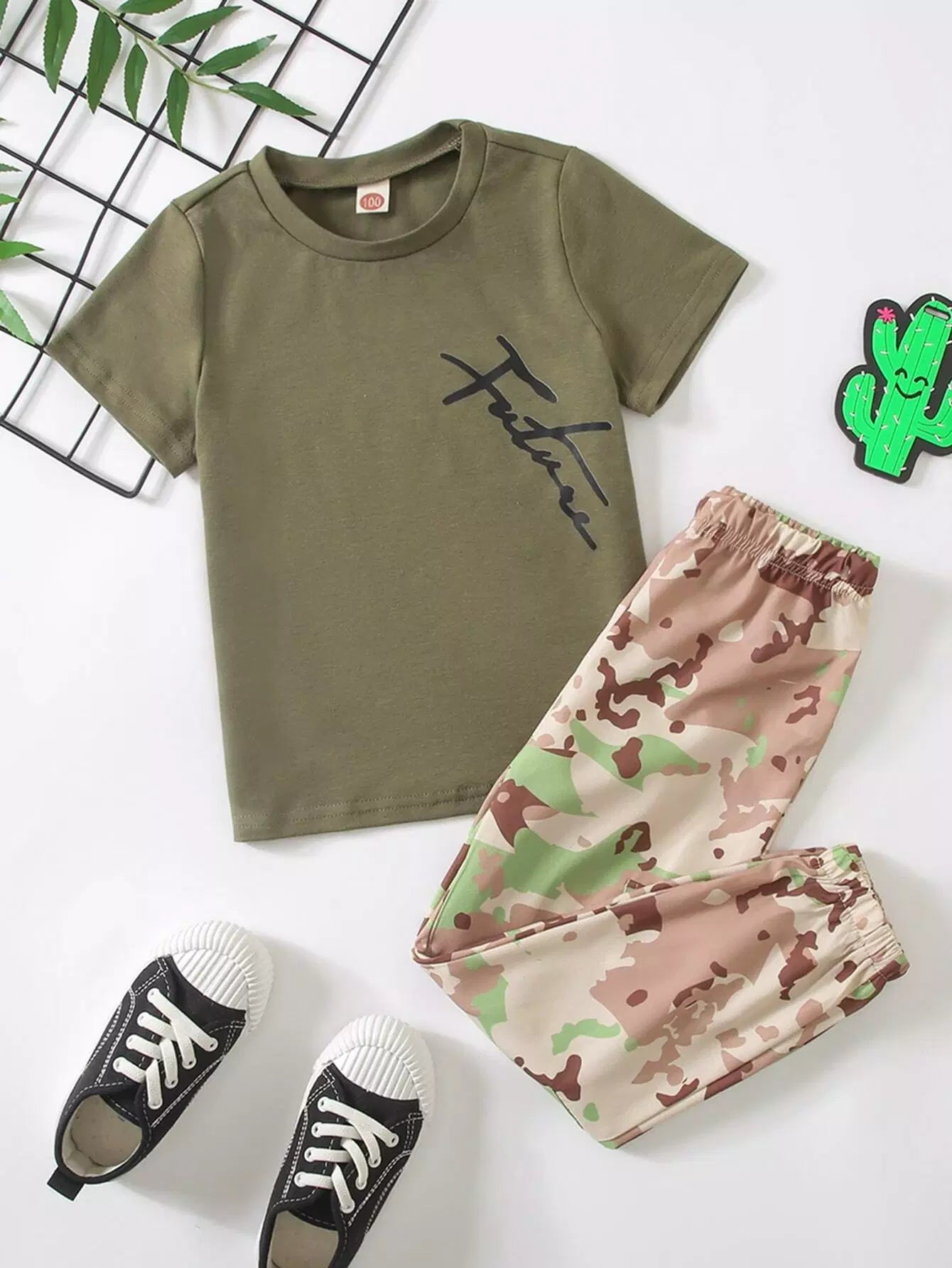 Toddler Boys Letter Graphic Tee & Camo Print Pants