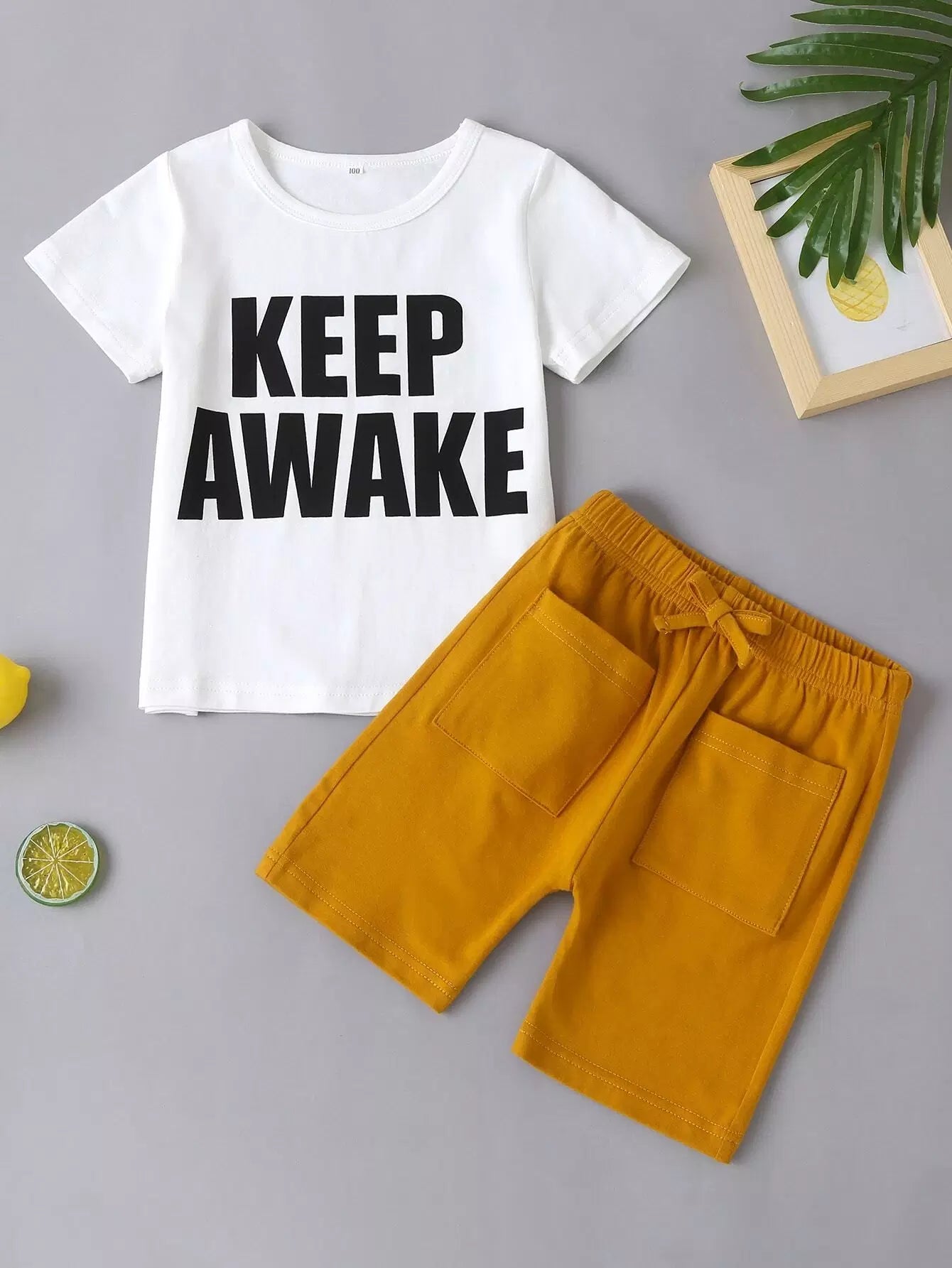 Kids - Toddler Boys Letter Graphic Tee With Shorts