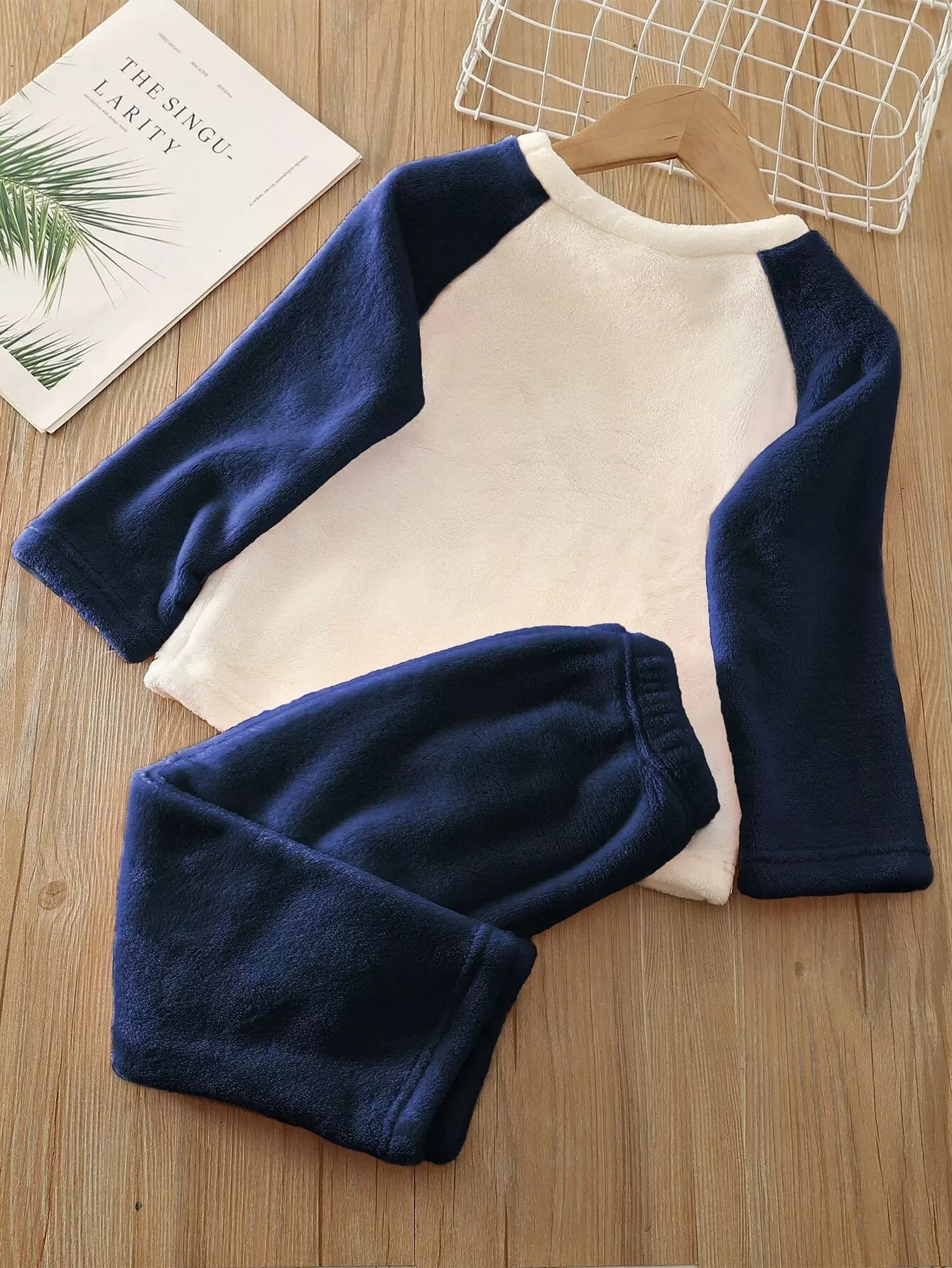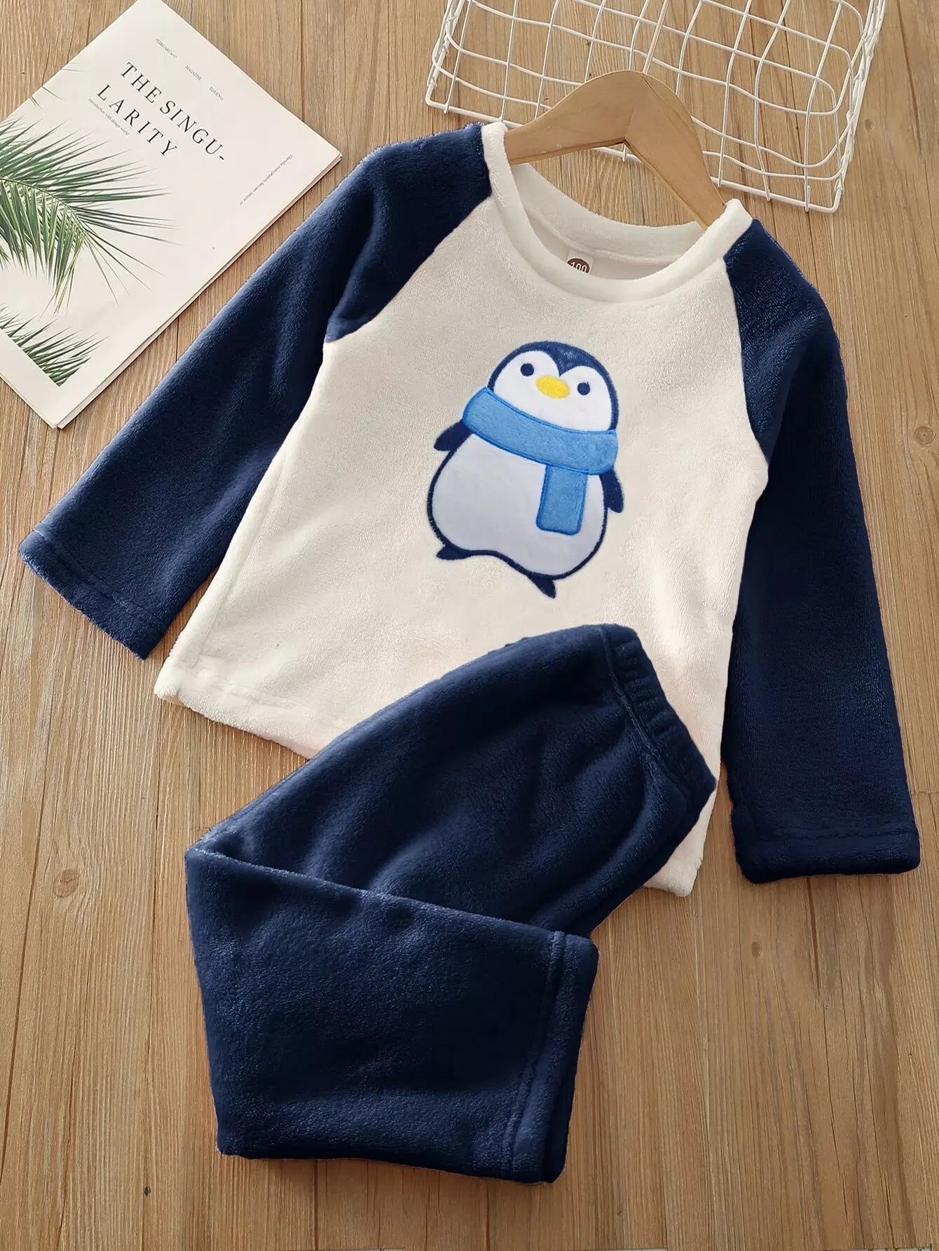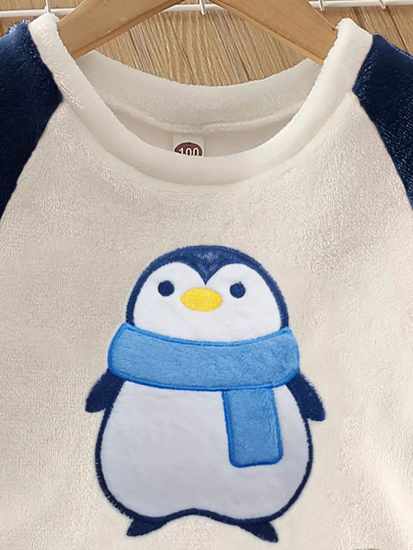 Toddler Boys Penguin Embroidery Raglan Sleeve Flannel Sweatshirt & Pants