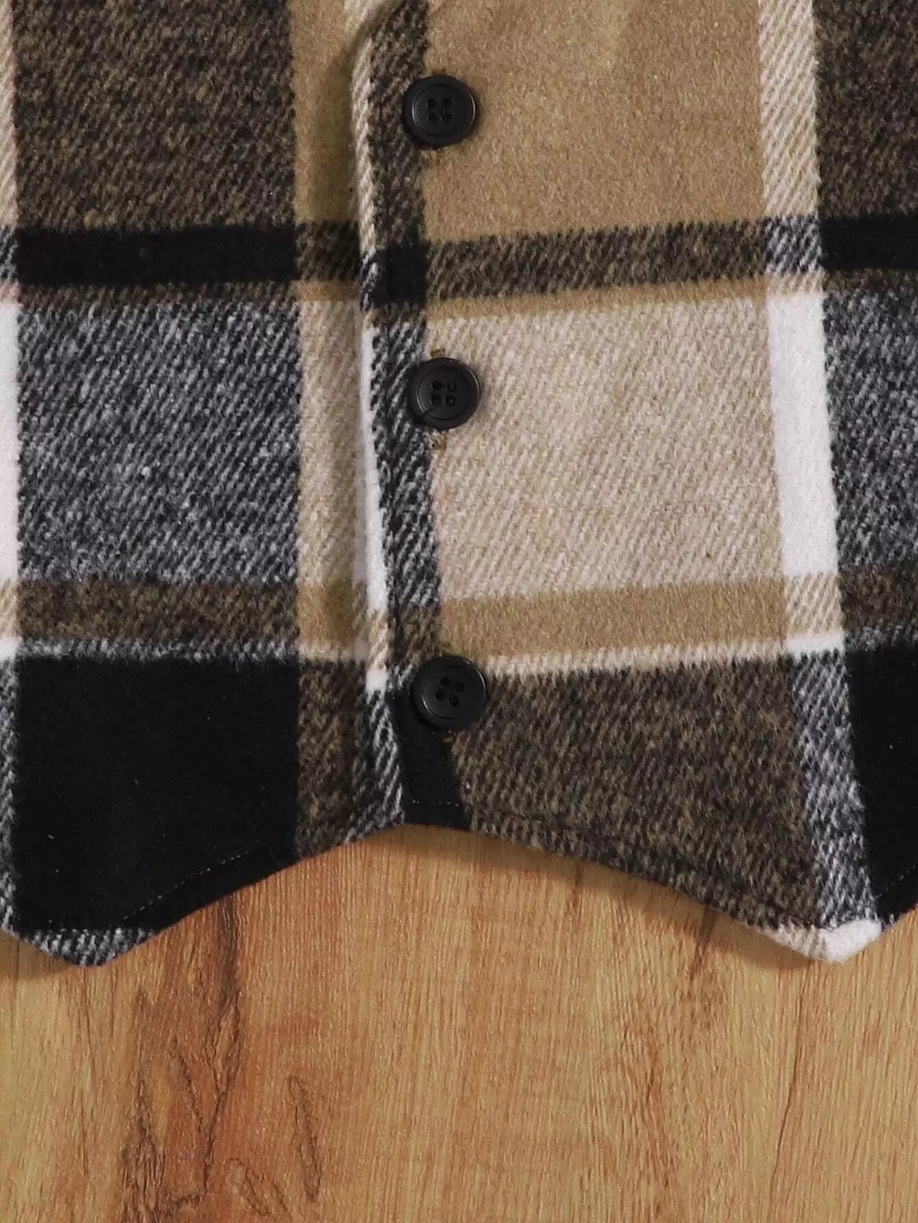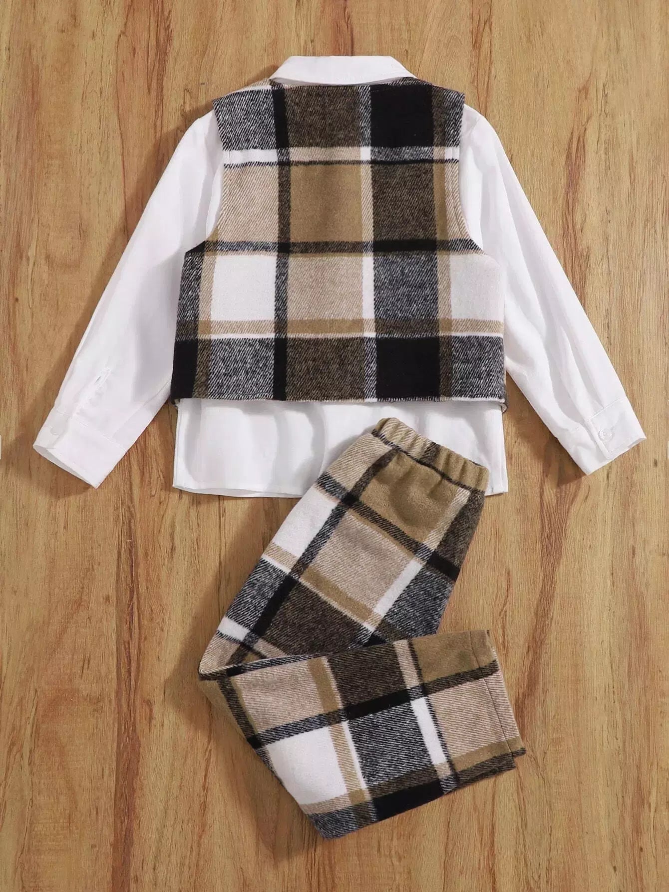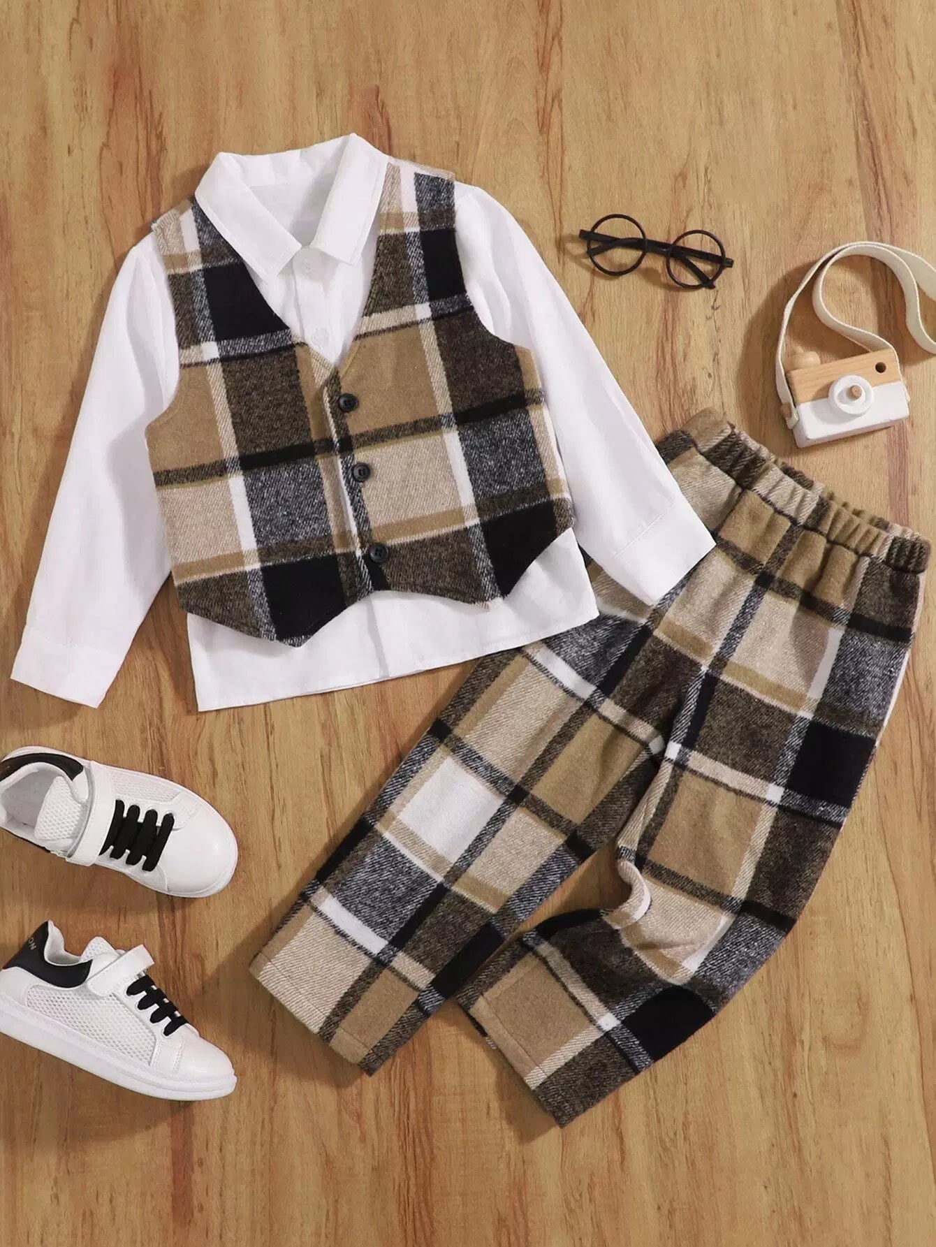 Toddler Boys Plaid Vest Jacket & Pants And Shirt
