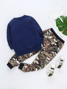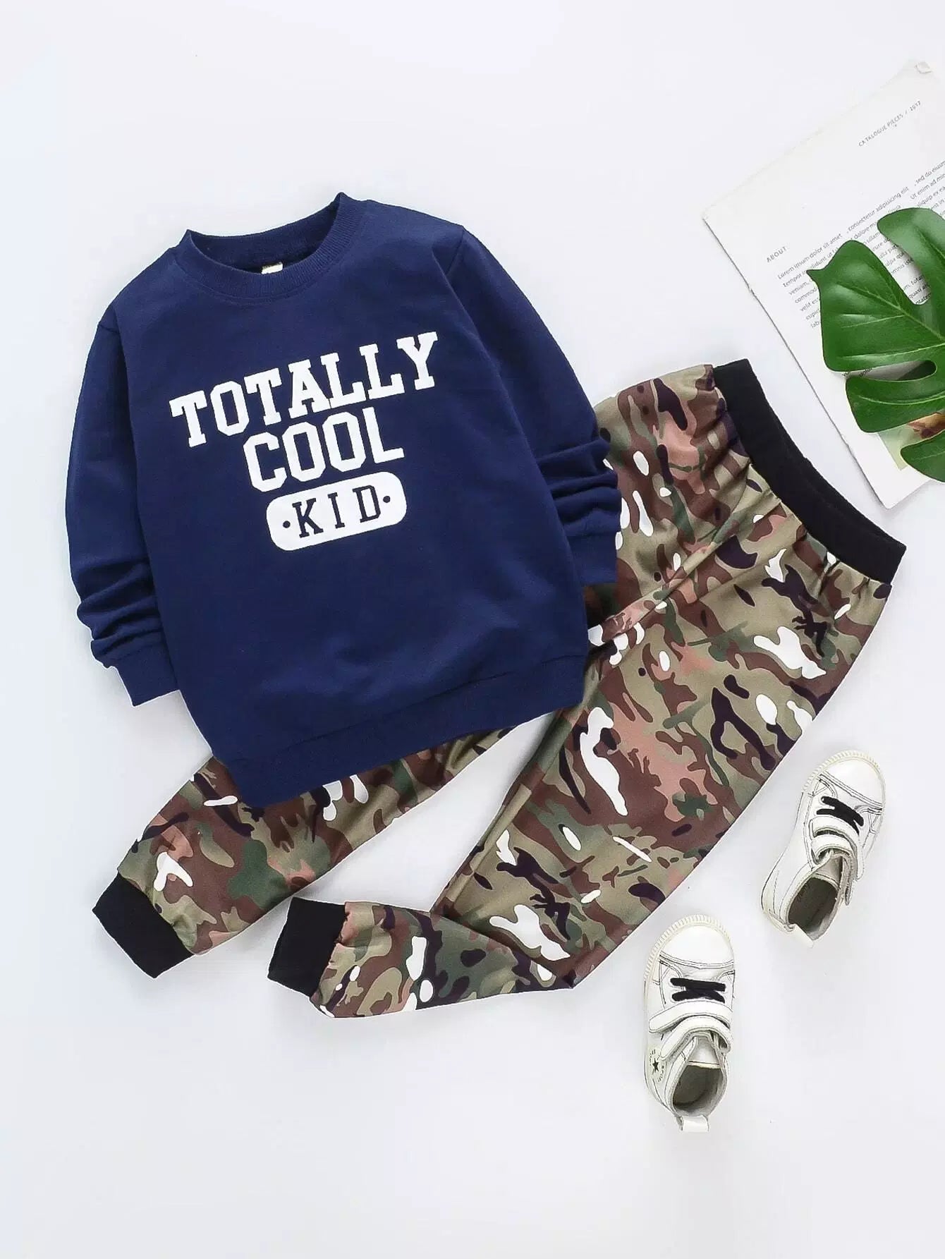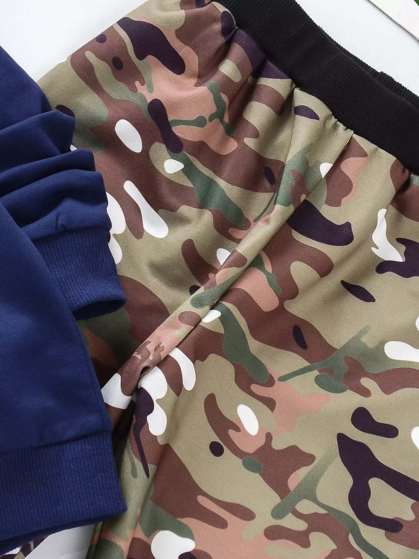 Toddler Boys Slogan Graphic Pullover & Camo Print Sweatpants