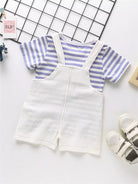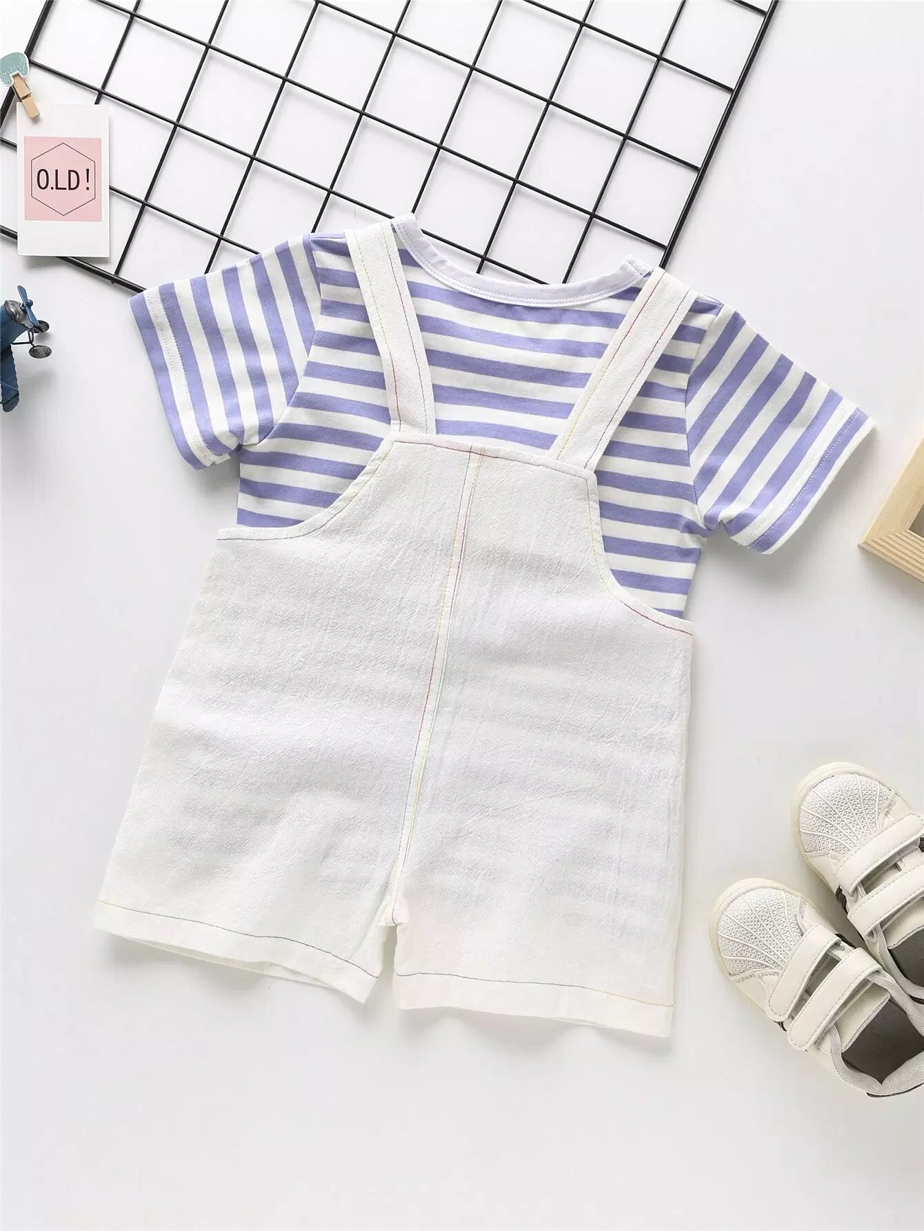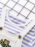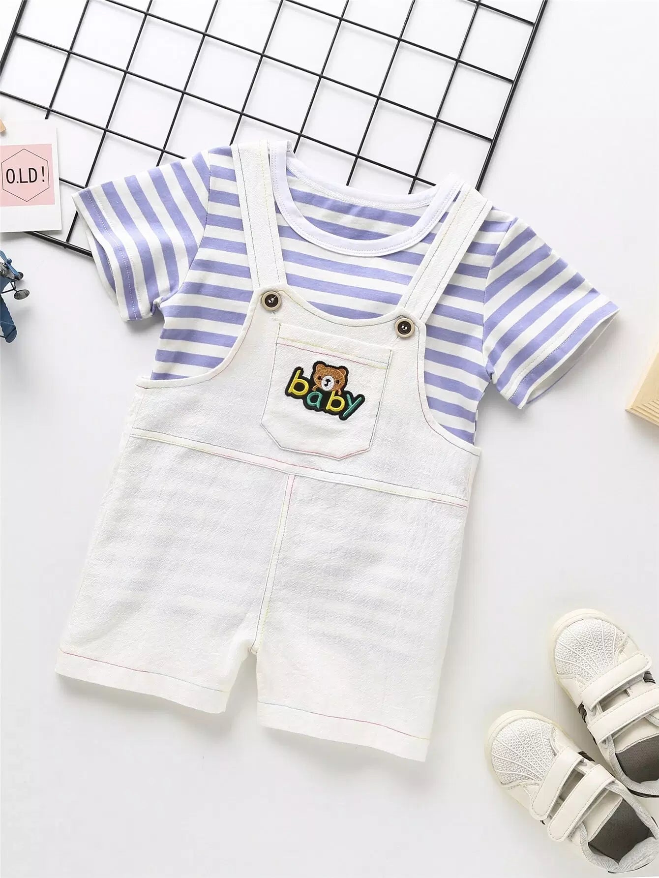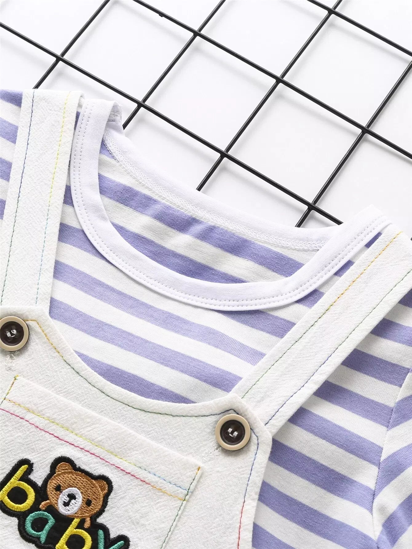 Toddler Boys Striped Print Tee With Cartoon Embroidery Pinafore Shorts
