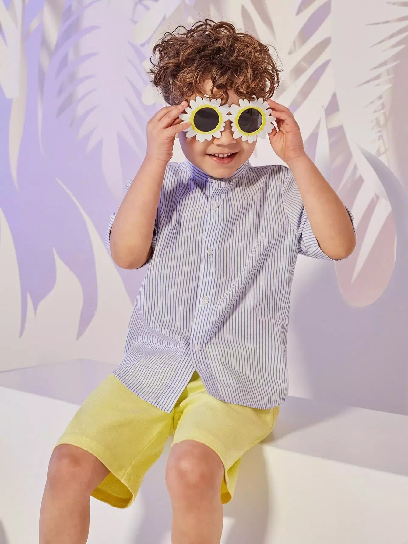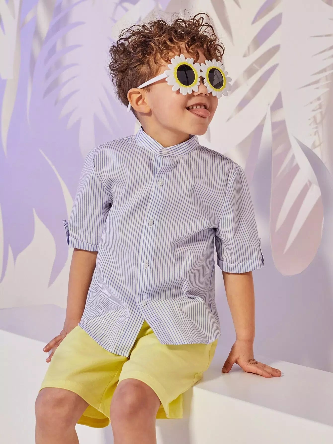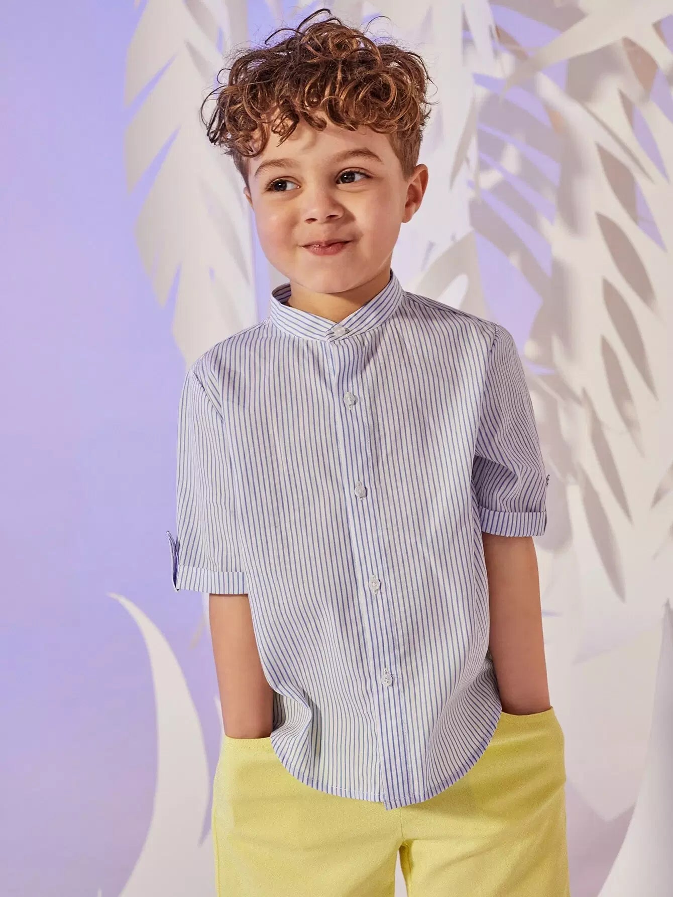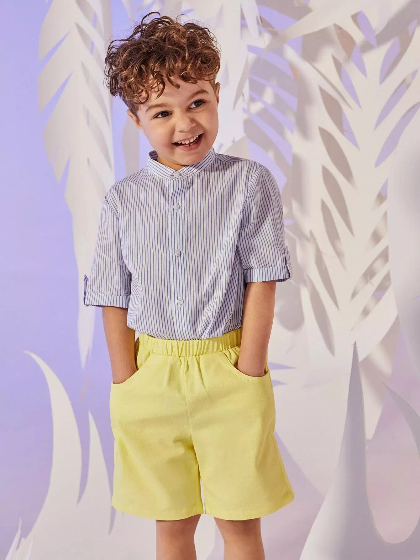 Toddler Boys Striped Roll Up Sleeve Top & Shorts Set