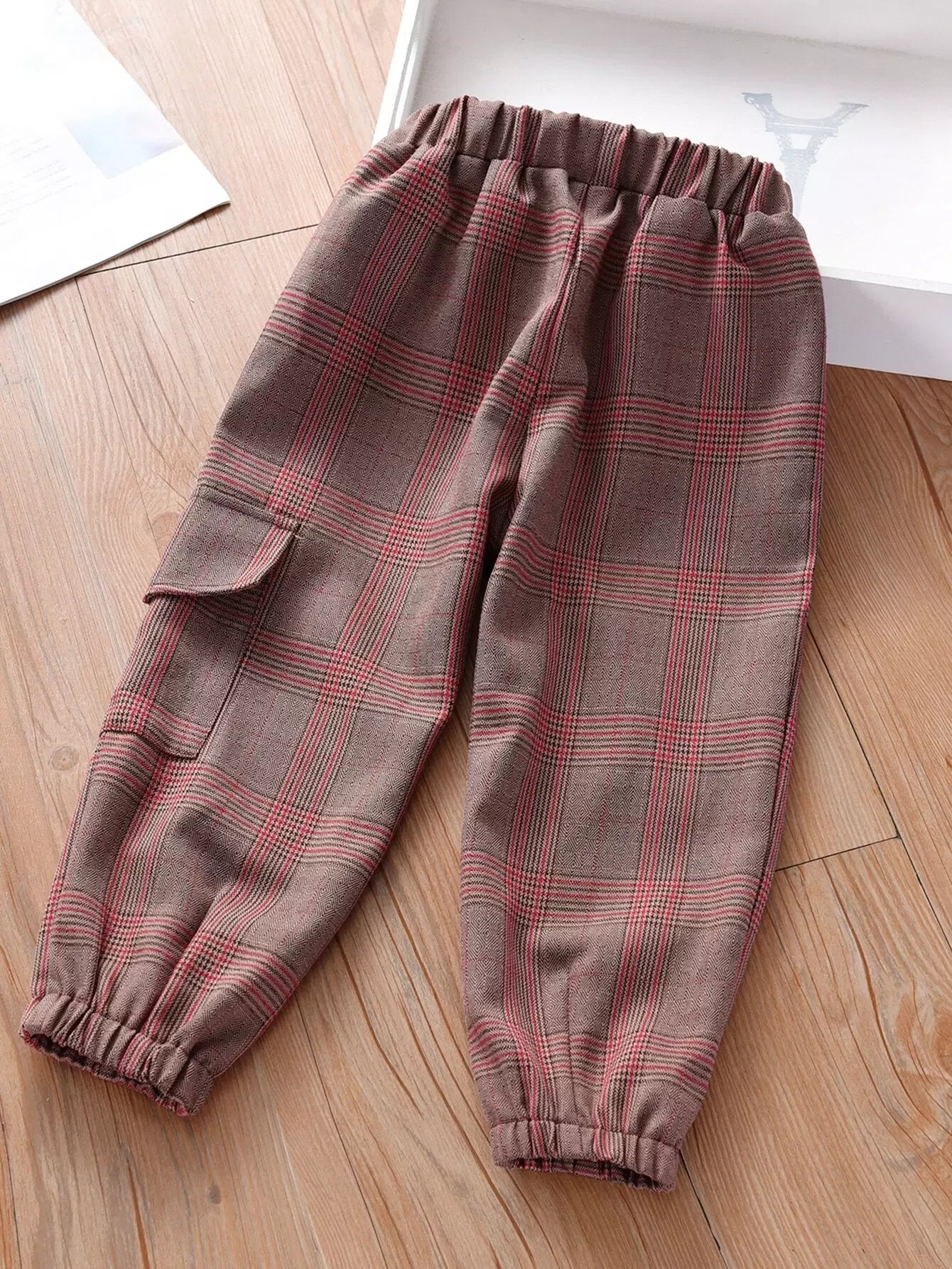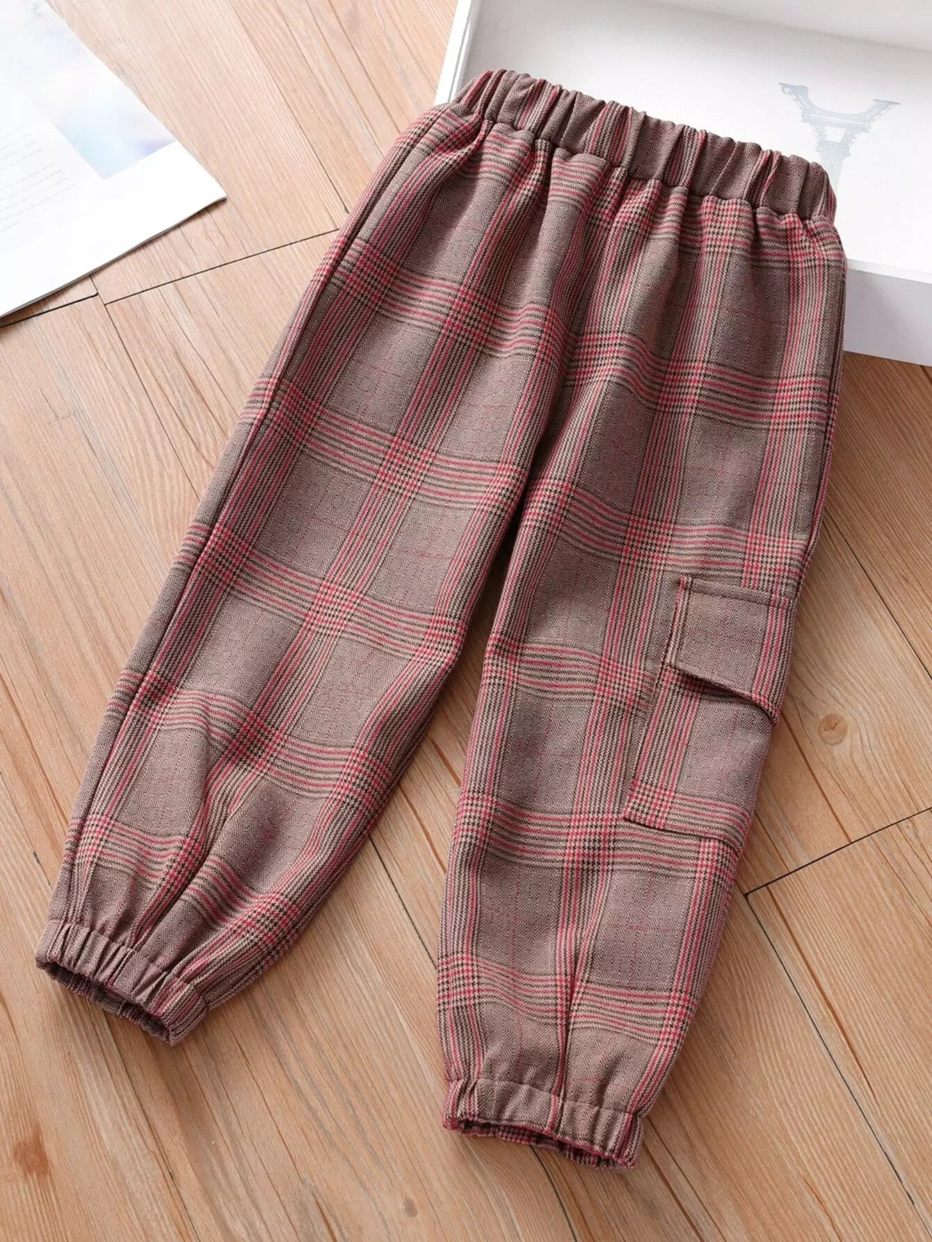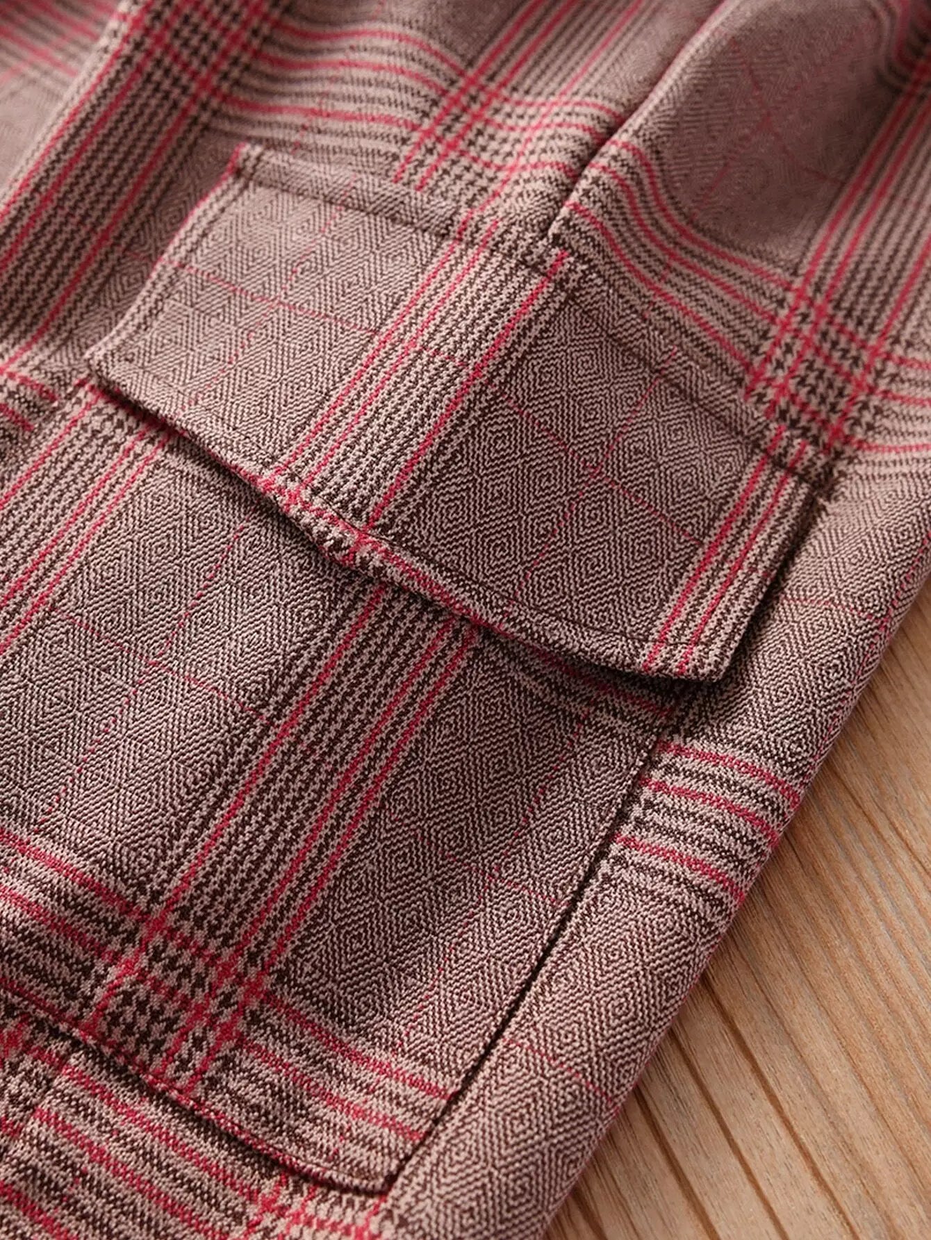Toddler Boys Flap Pocket Patched Plaid Carrot Pants
