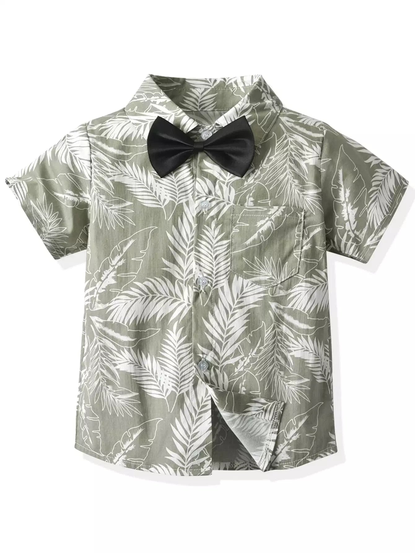 Kids - Toddler Boys Tropical Print Button Front Bow Detail Shirt