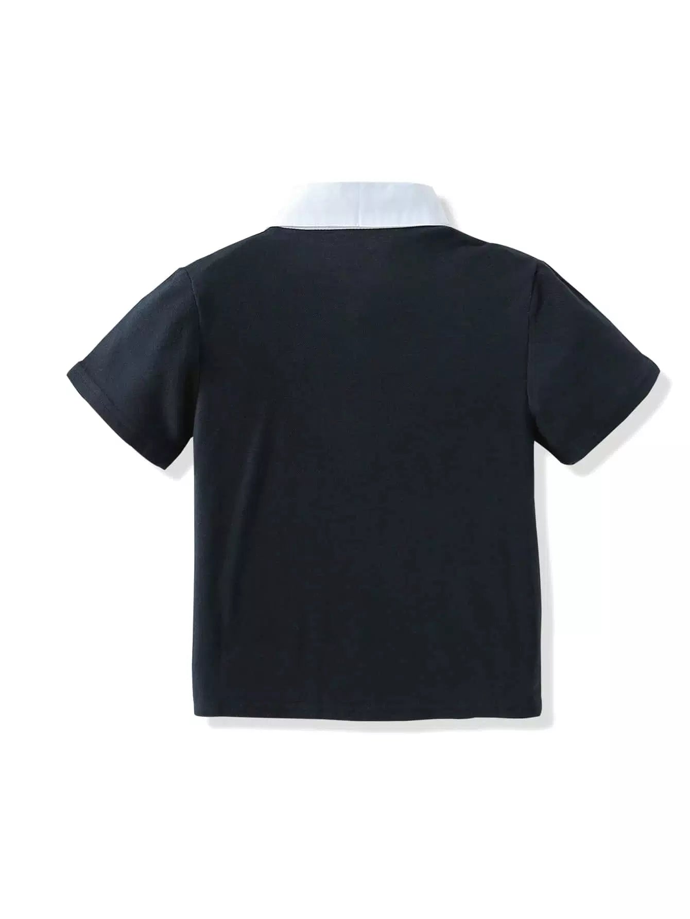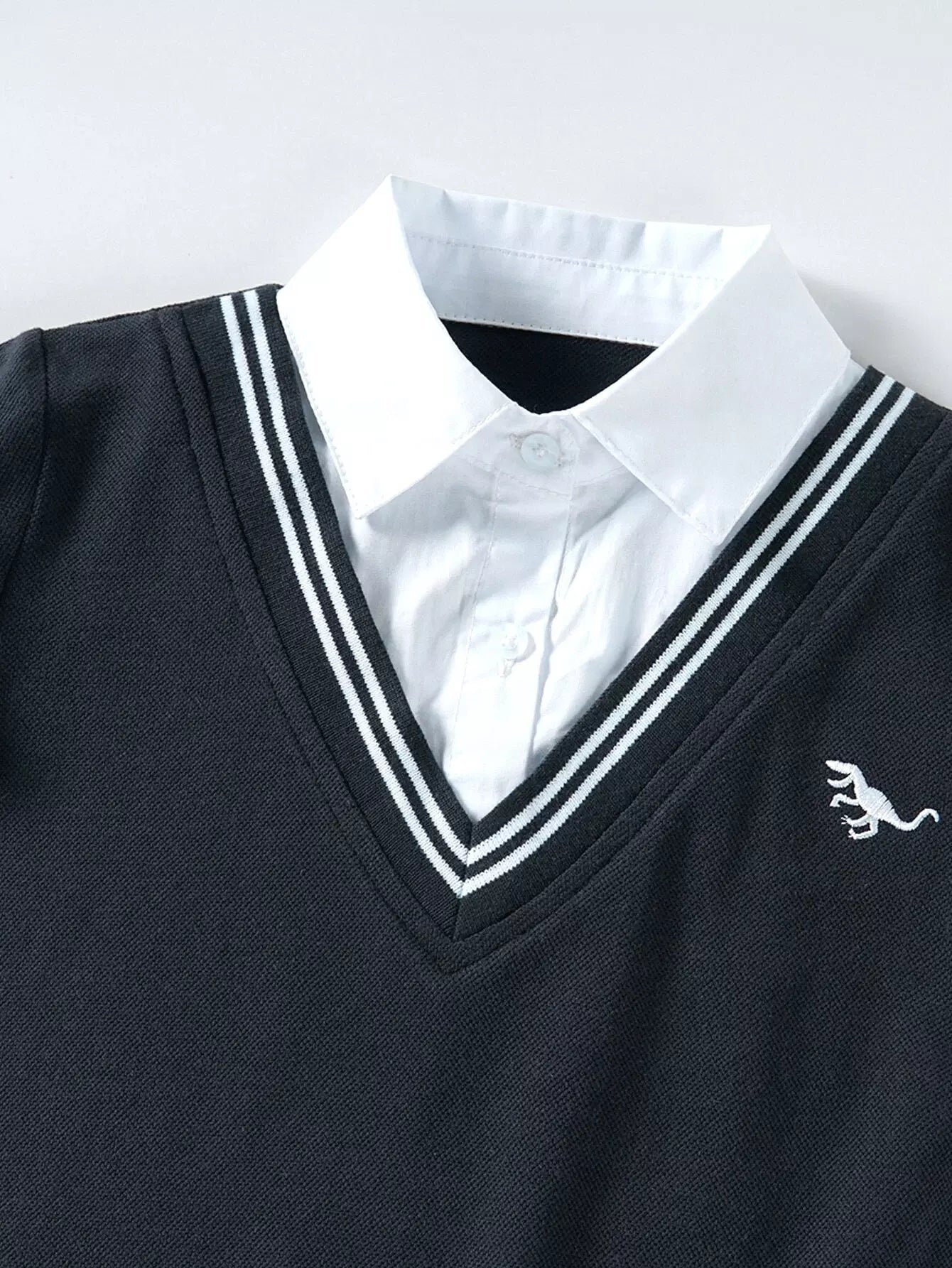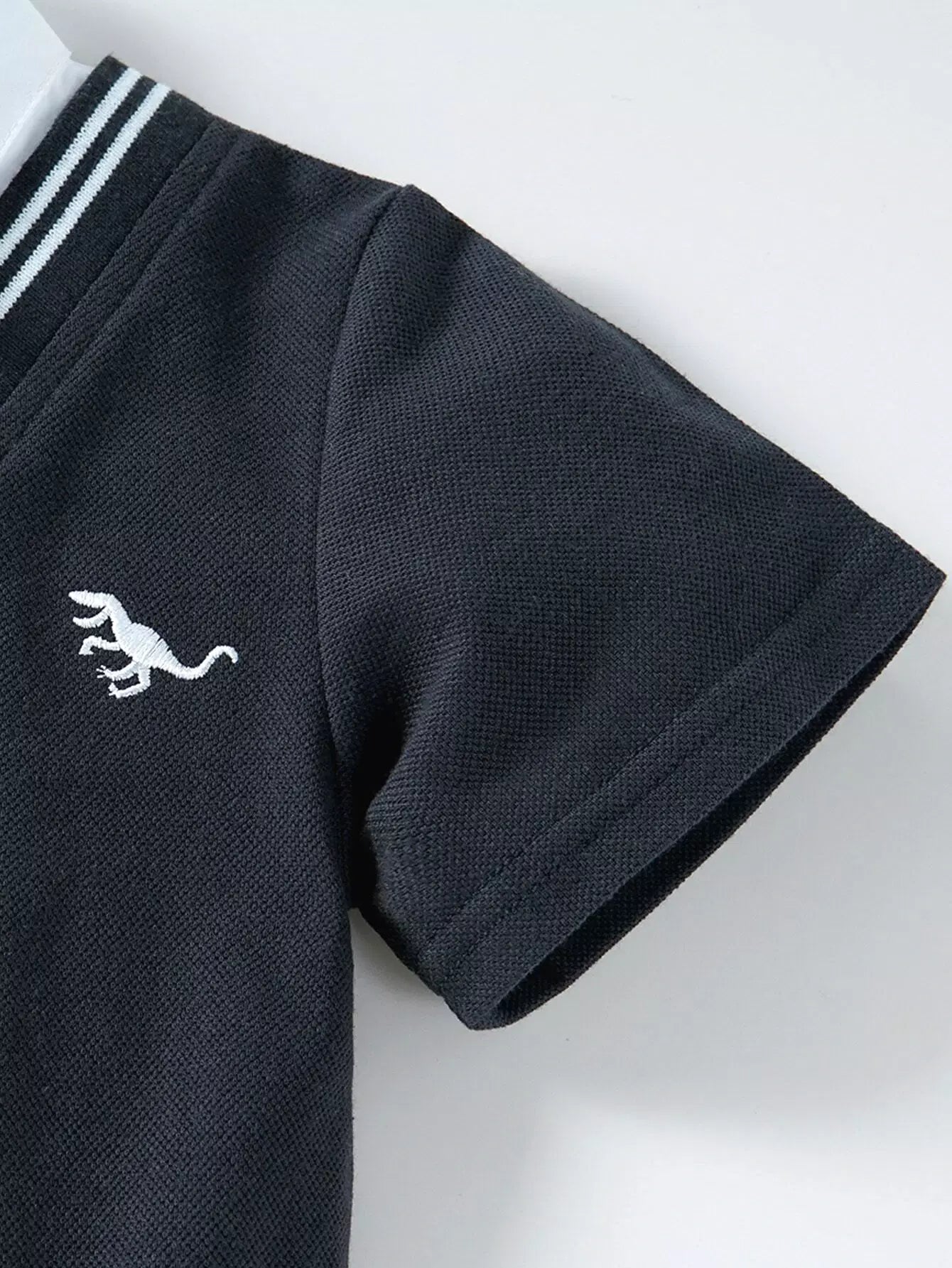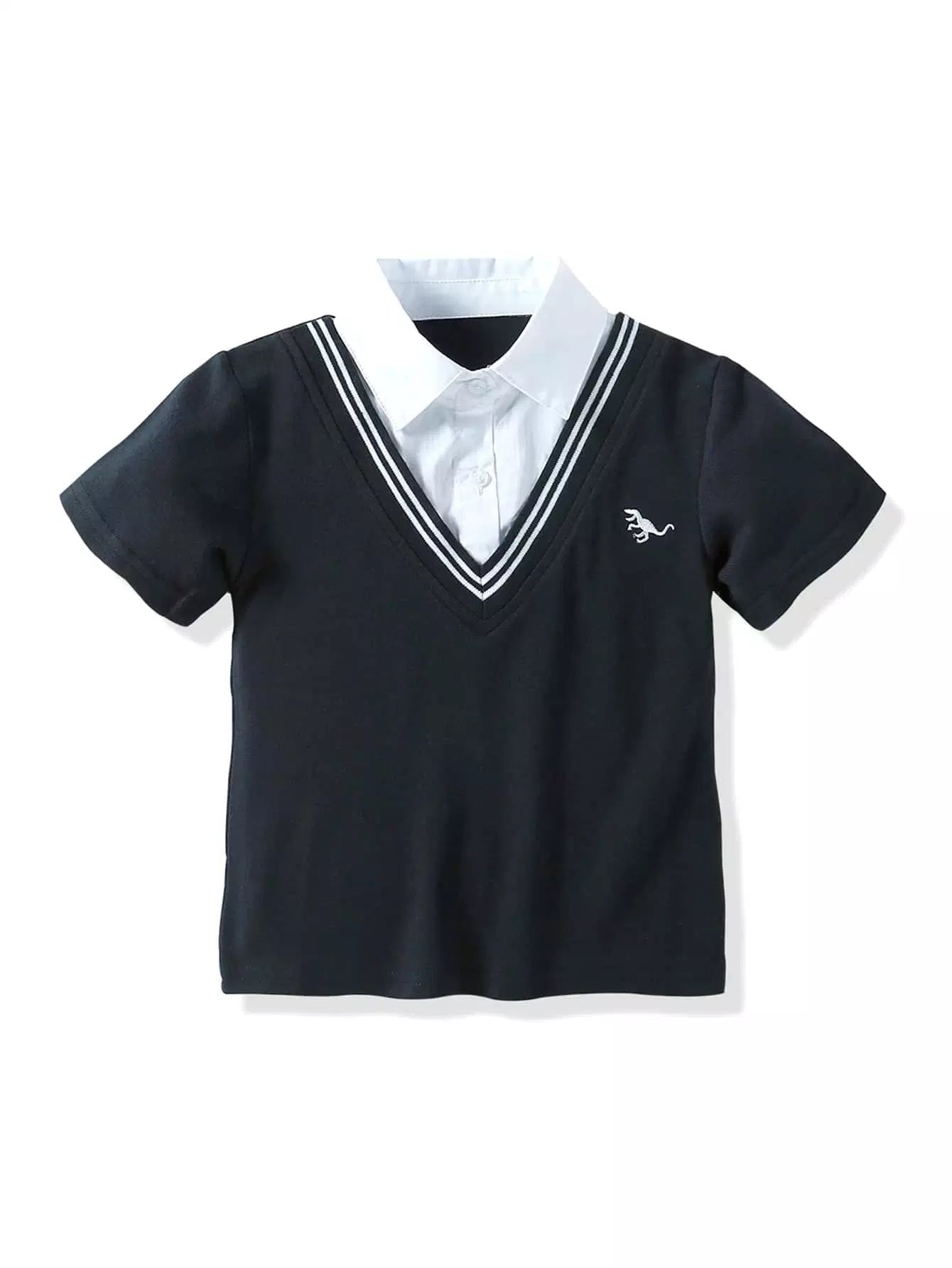 Toddler Boys Dinosaur Embroidery Striped Trim 2 In 1 Polo Shirt