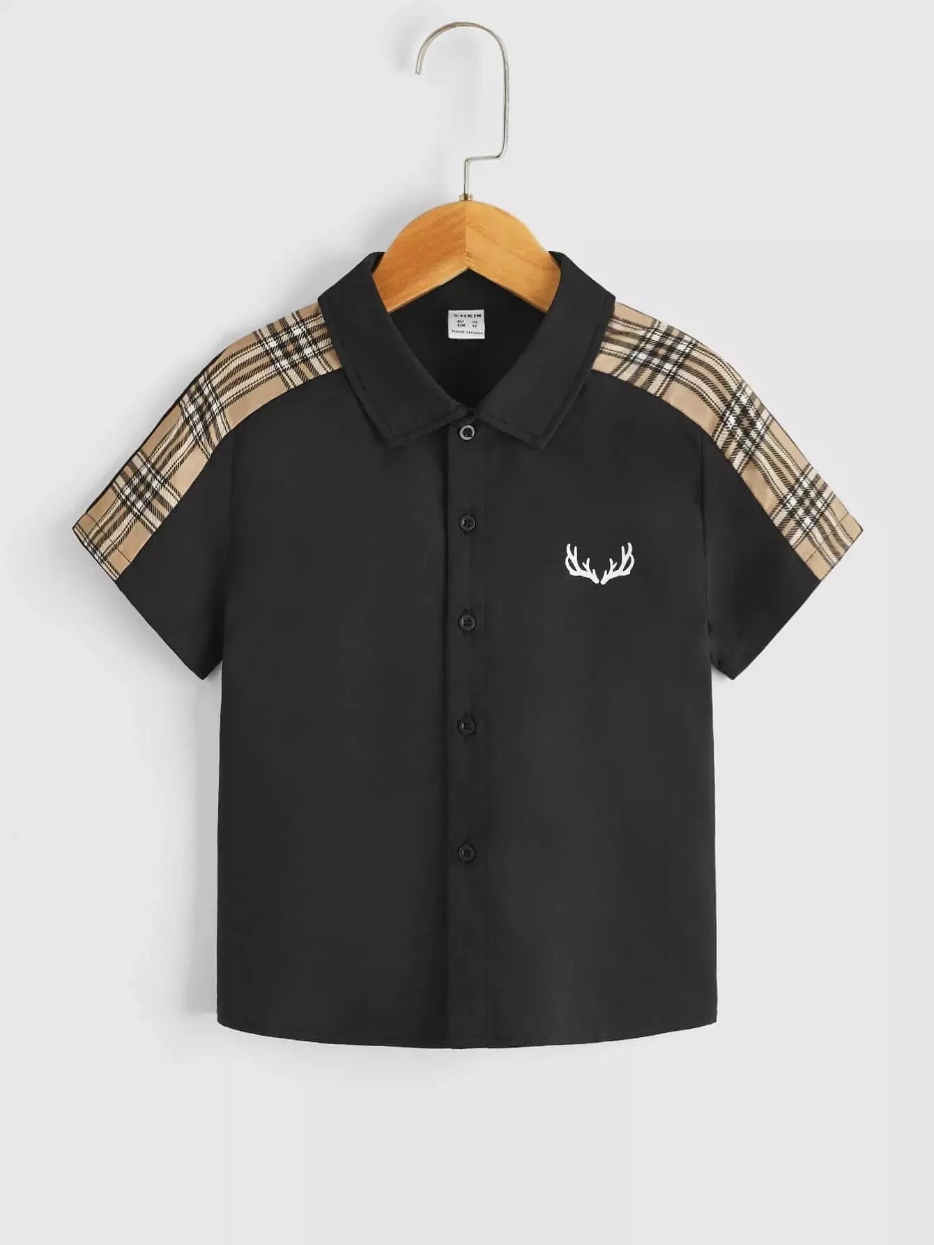Toddler Boys Plaid & Antlers Print Button Front Shirt